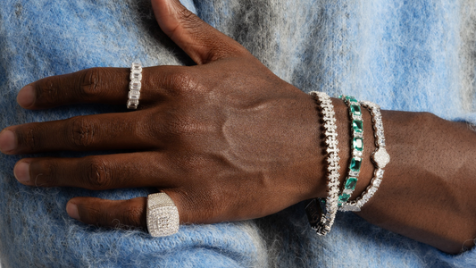 Our jewelry is crafted using premium-quality brass, stainless steel, and 925 sterling silver bases with long-lasting rhodium or 18K gold plating. Each piece is handset with high-shine CZ or VVS moissanite stones, selected for their icy brilliance and durability — ensuring luxury that lasts.