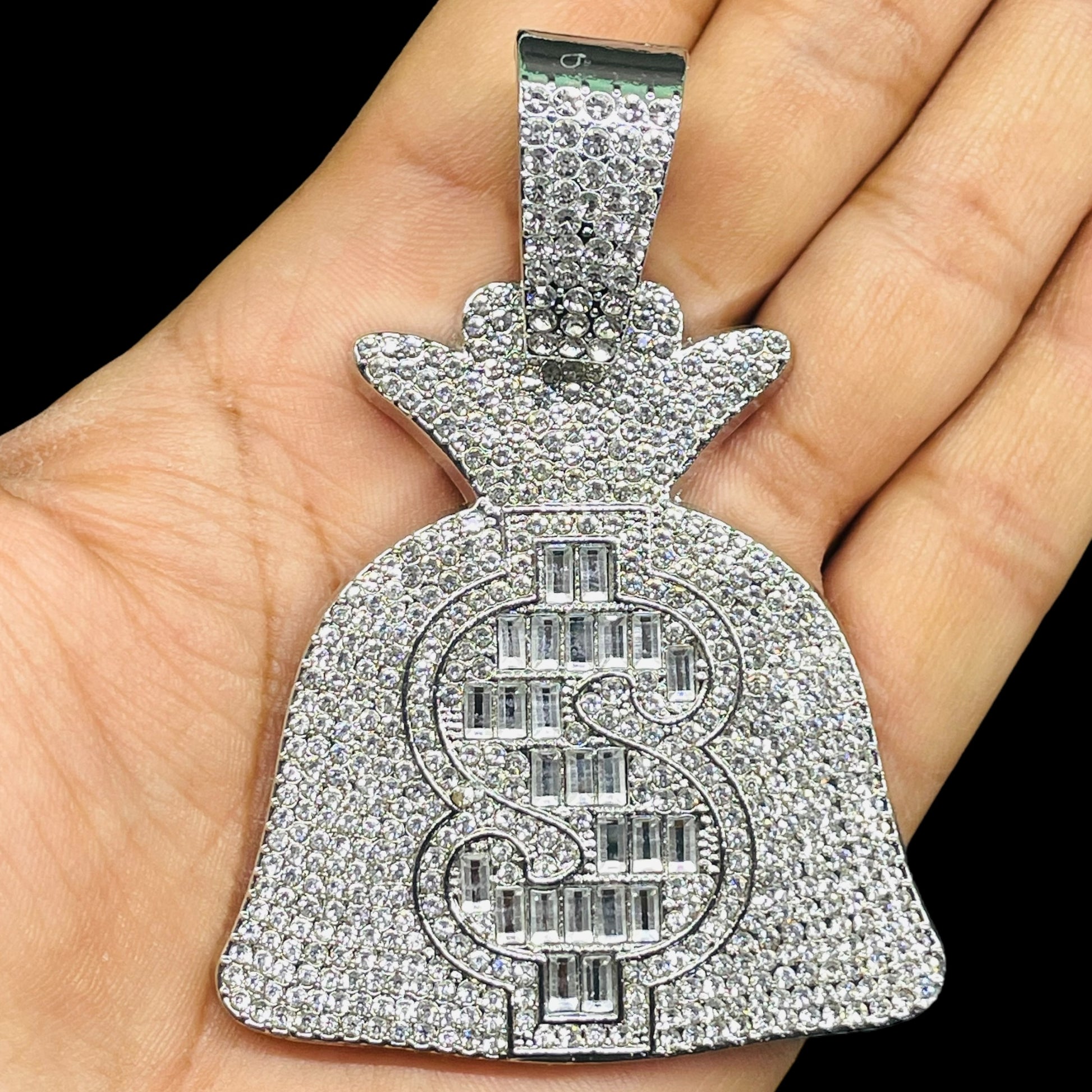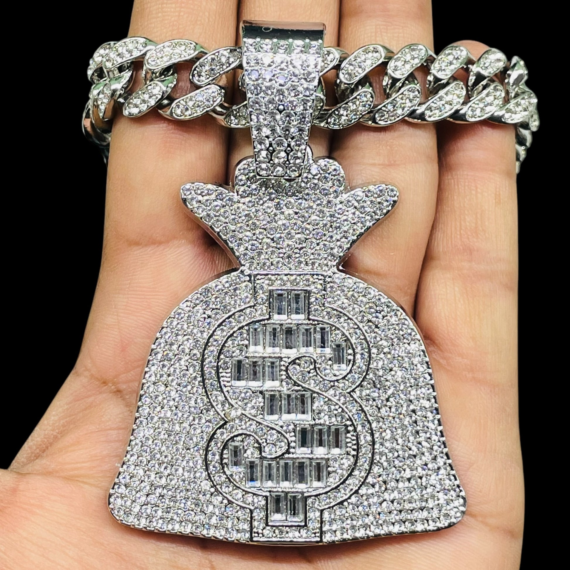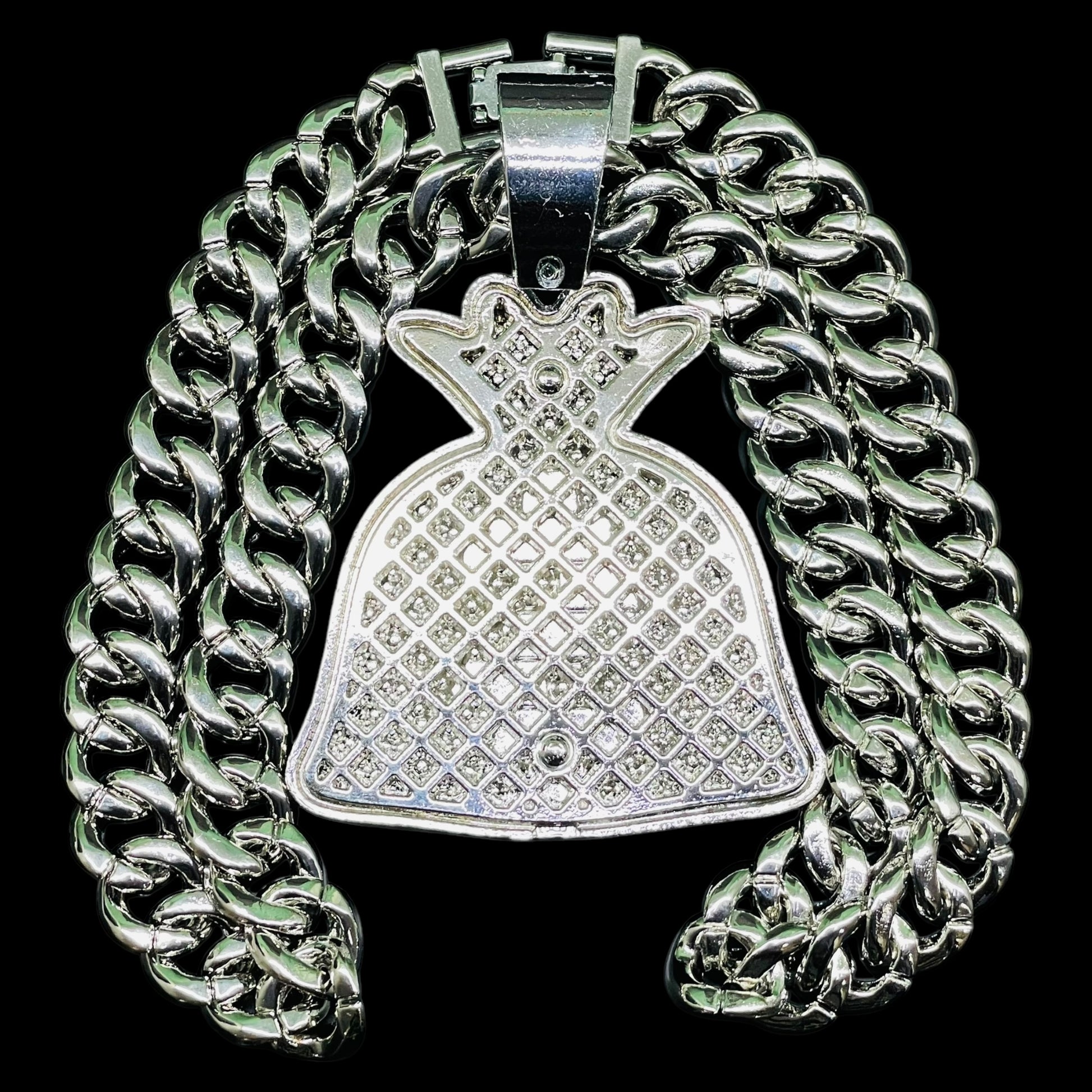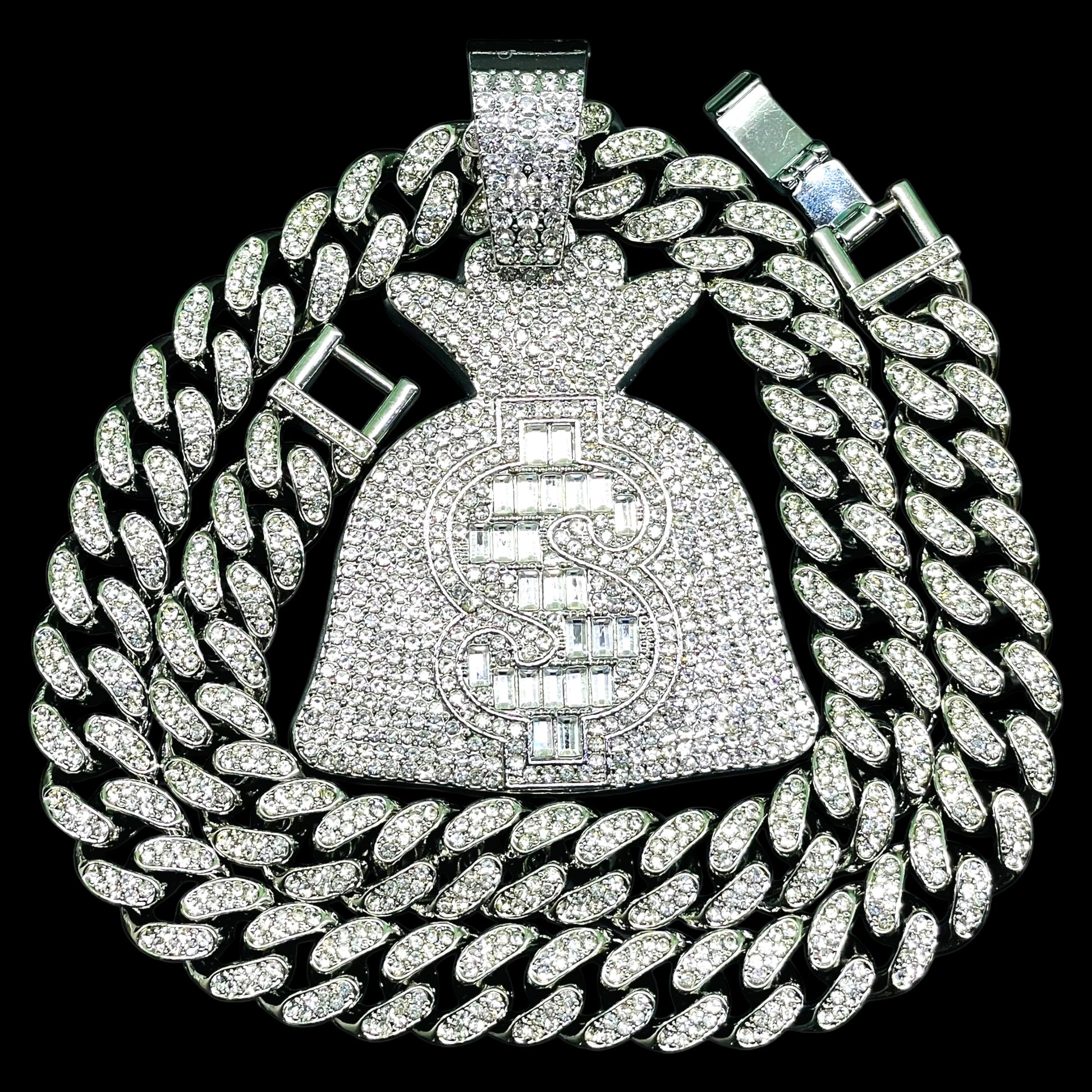 Iced Out Money Bag Pendant Chain – Hip Hop Bling Cuban Link Necklace