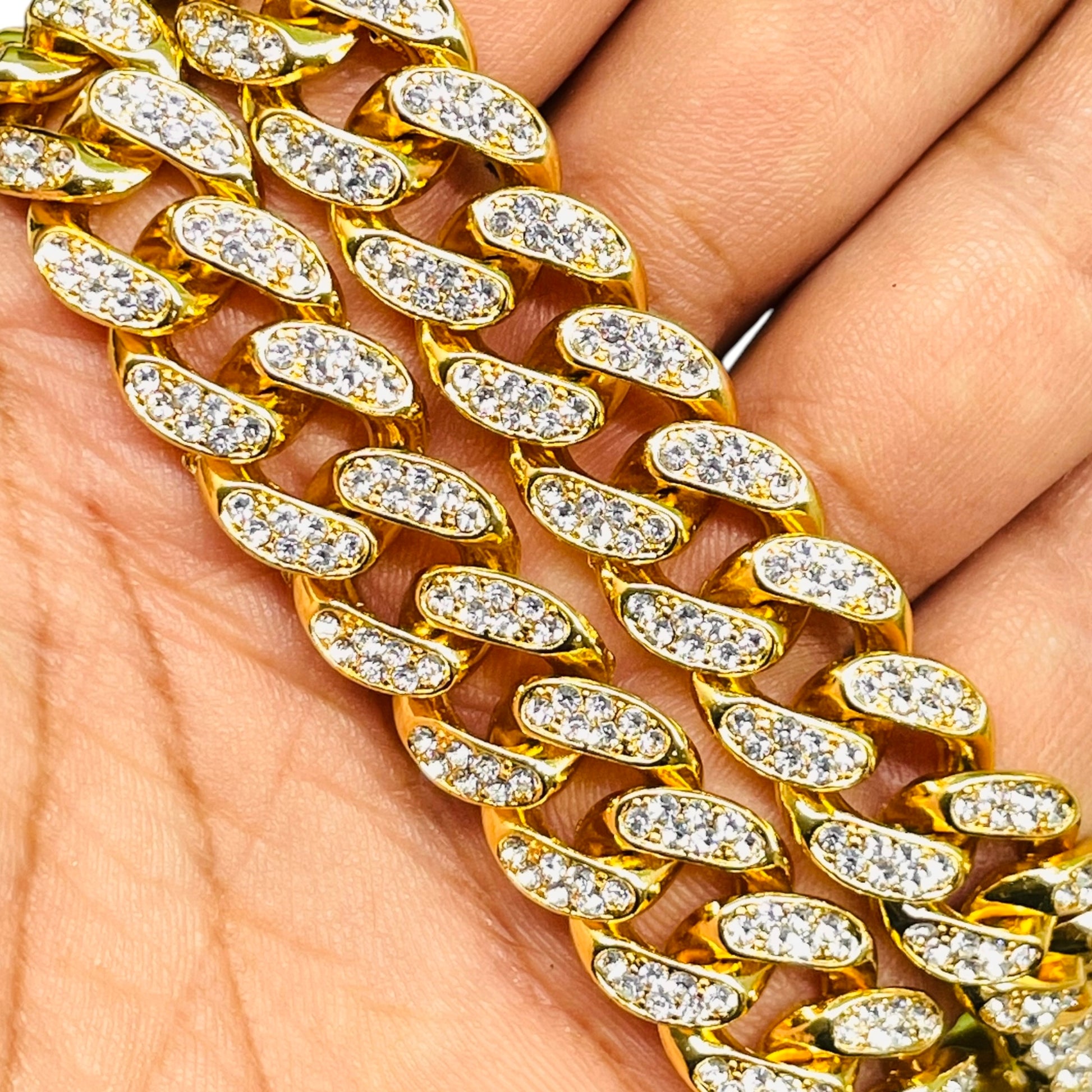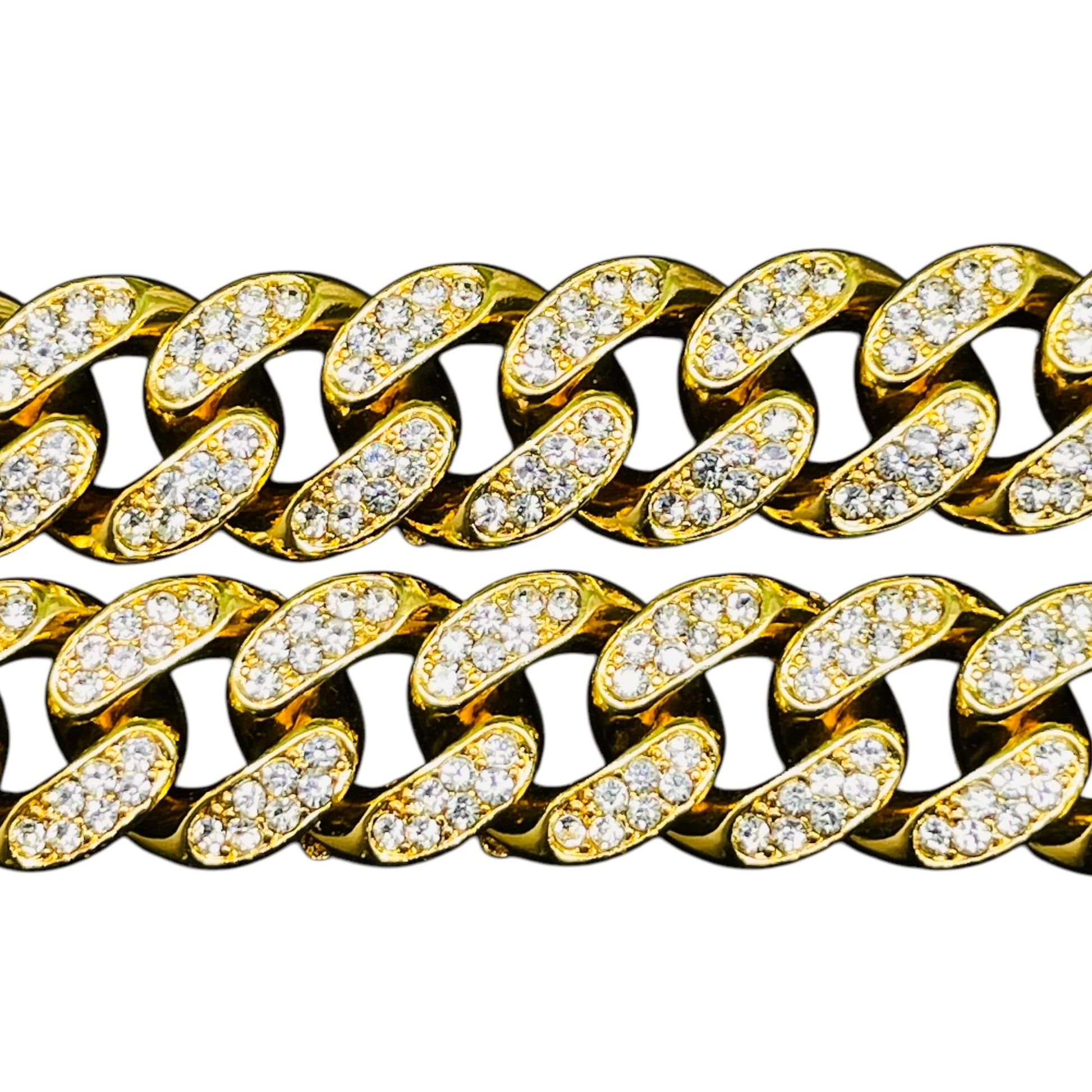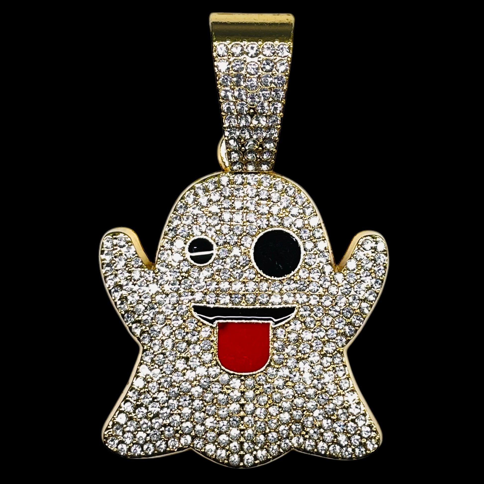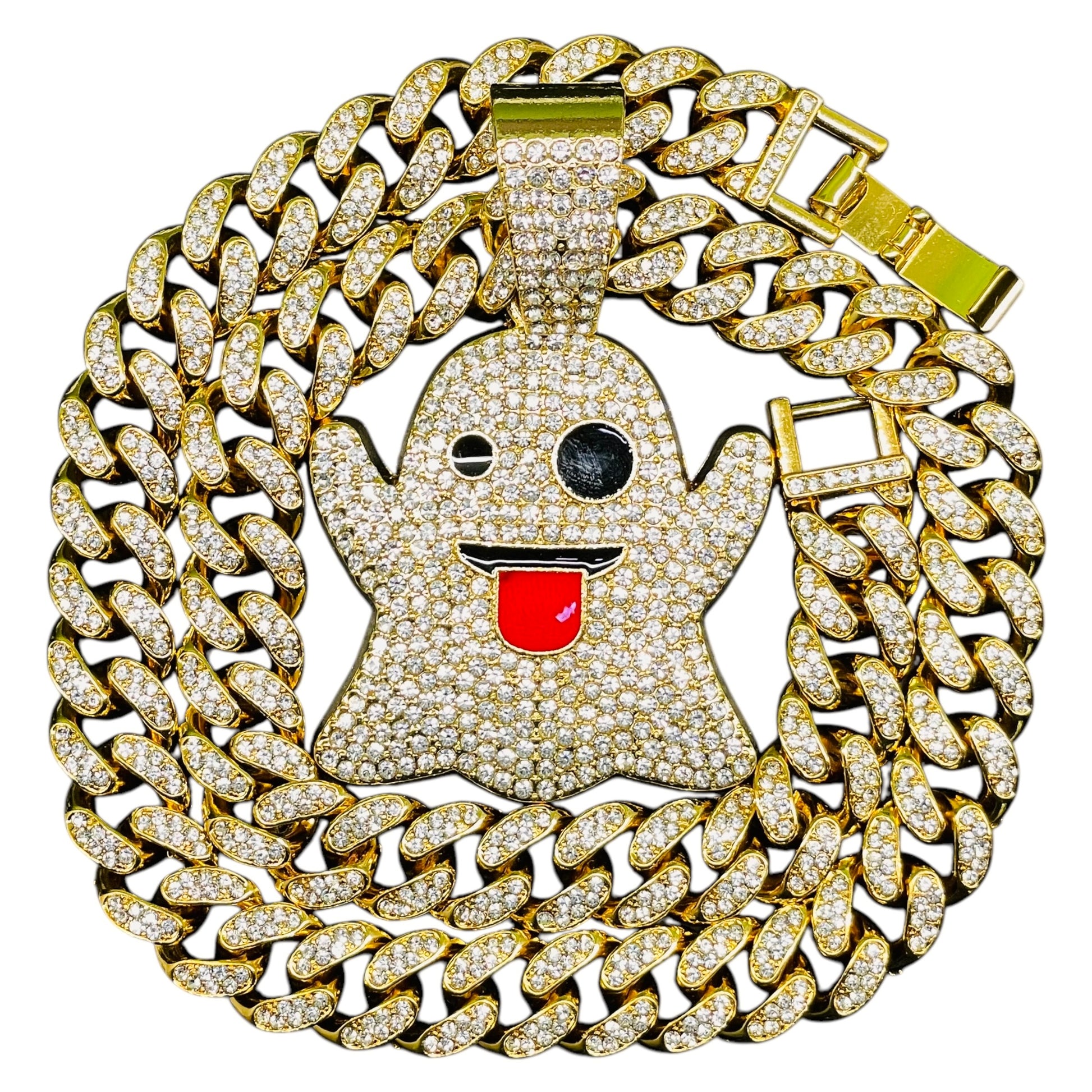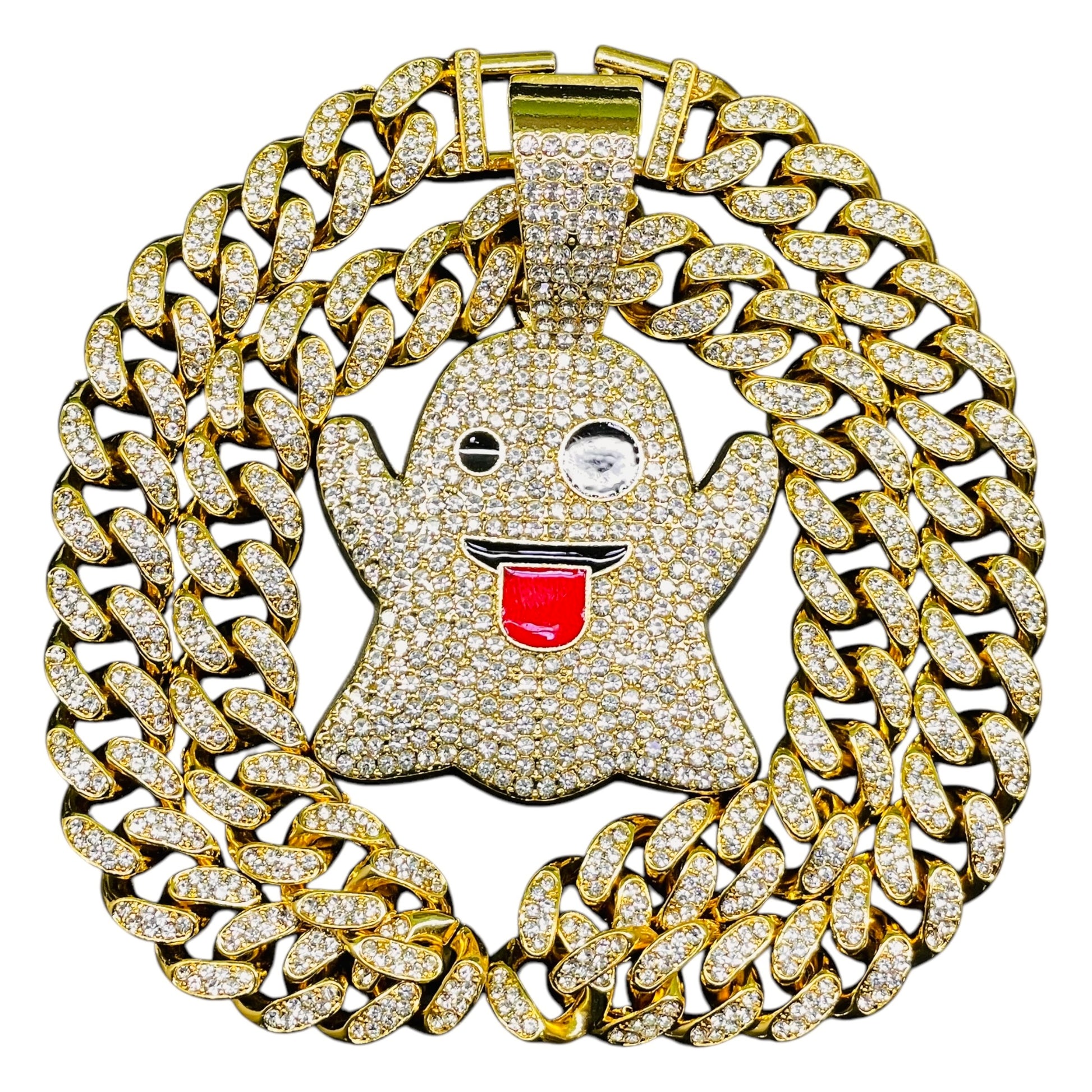 Iced Out Ghost Emoji Pendant with Gold Cuban Chain – Hip Hop Bling Necklace
