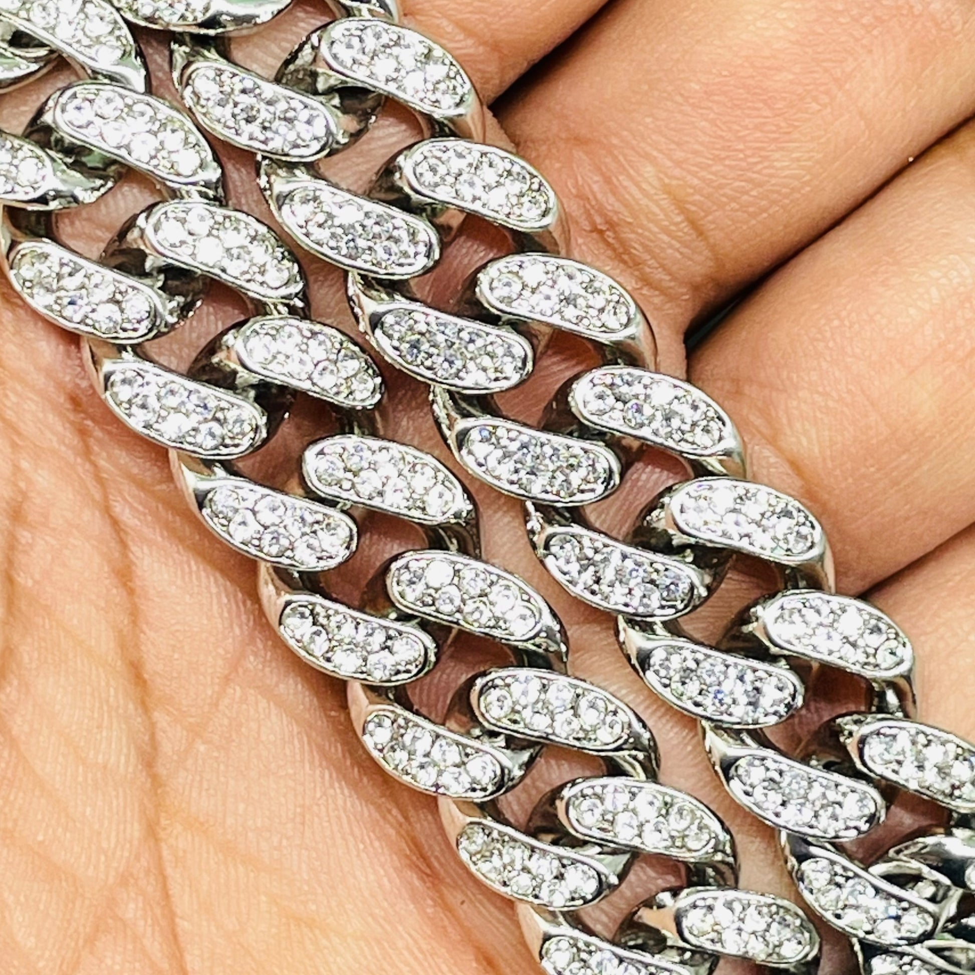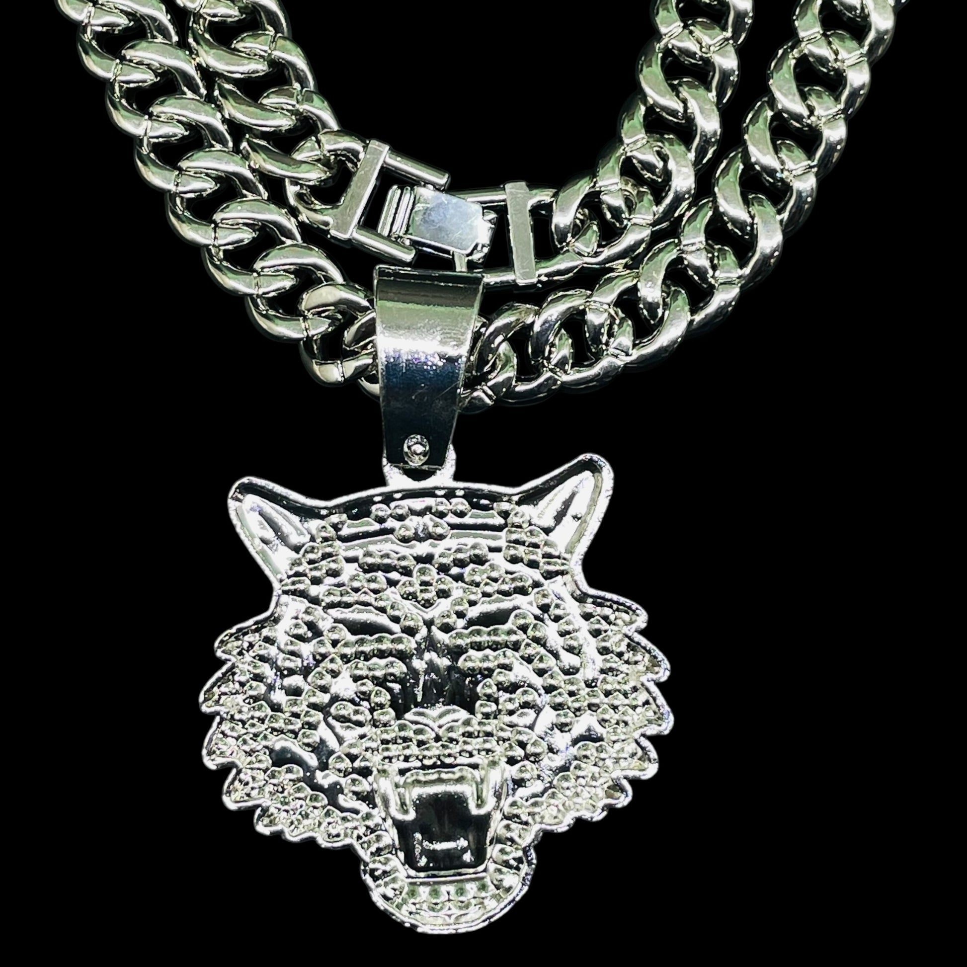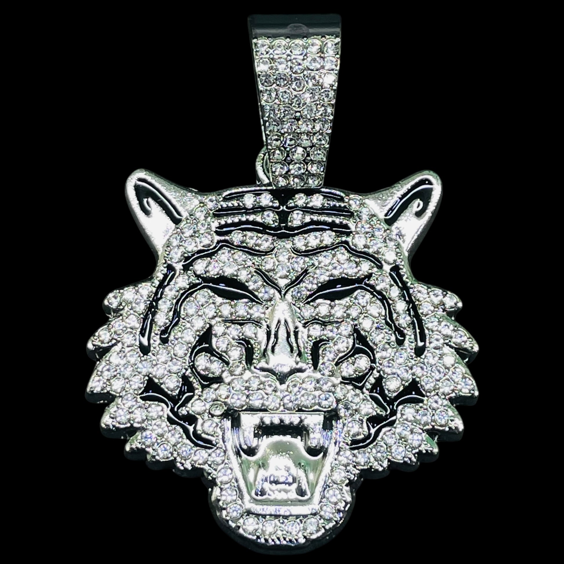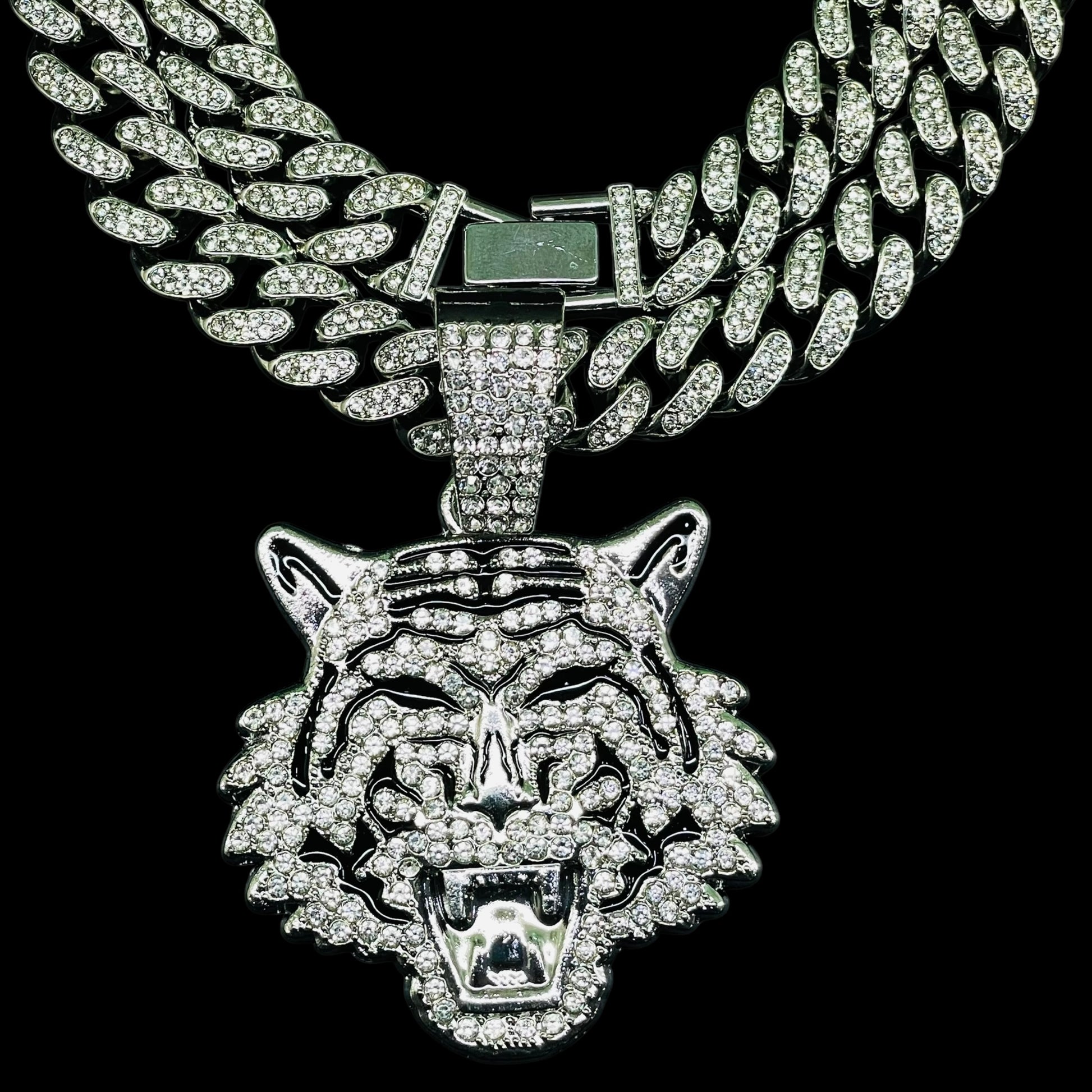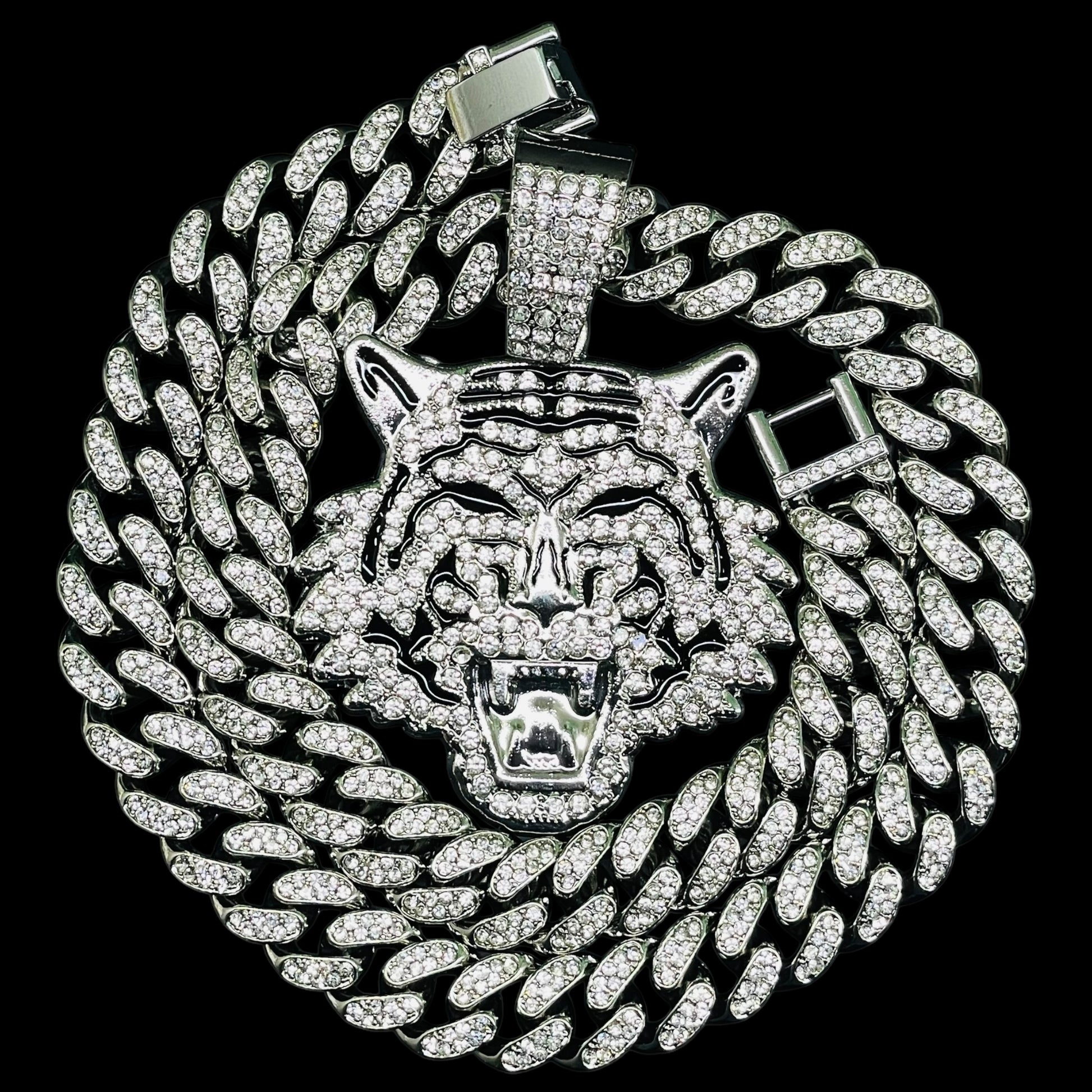 Iced Out Roaring Tiger Pendant Necklace – Silver Cuban Link Chain