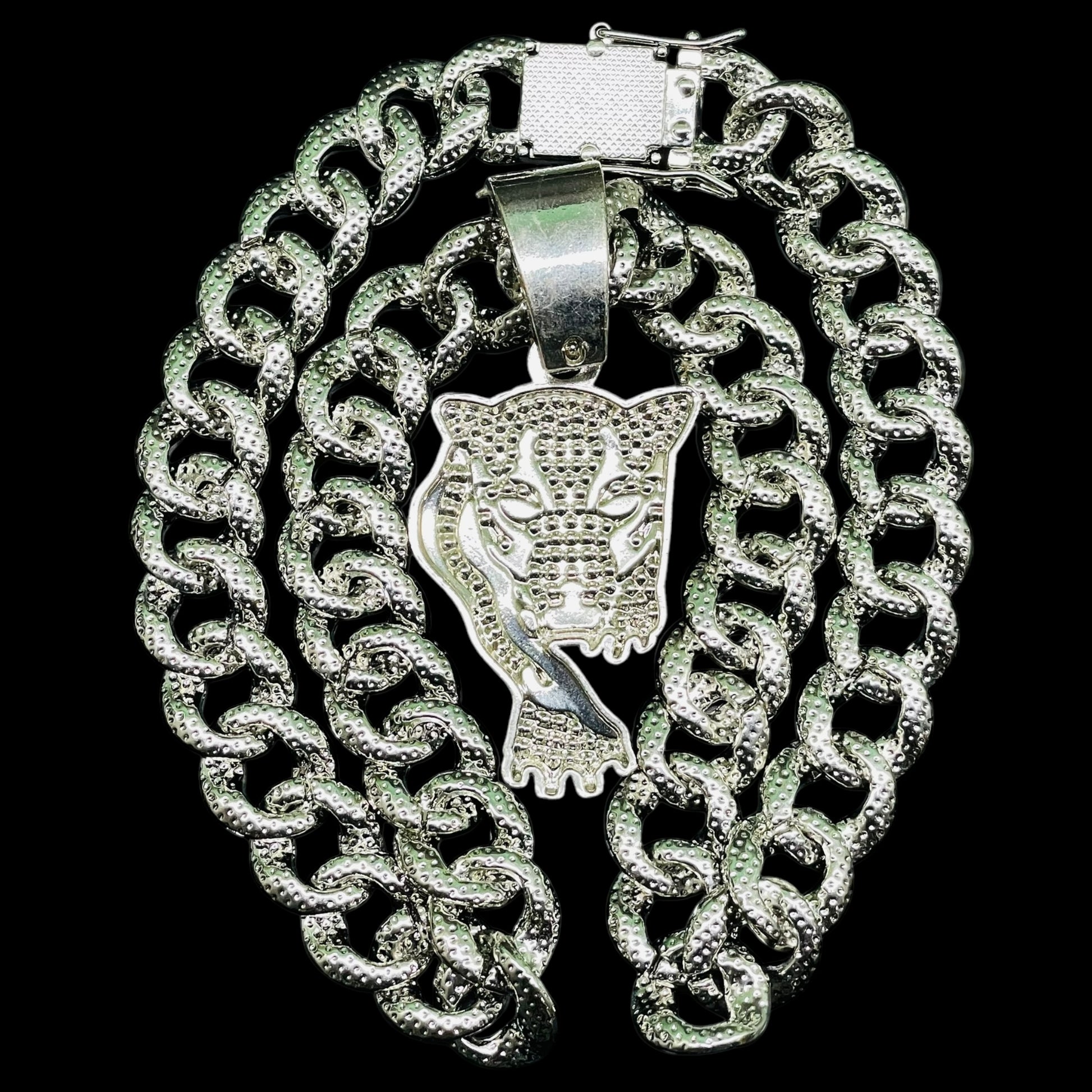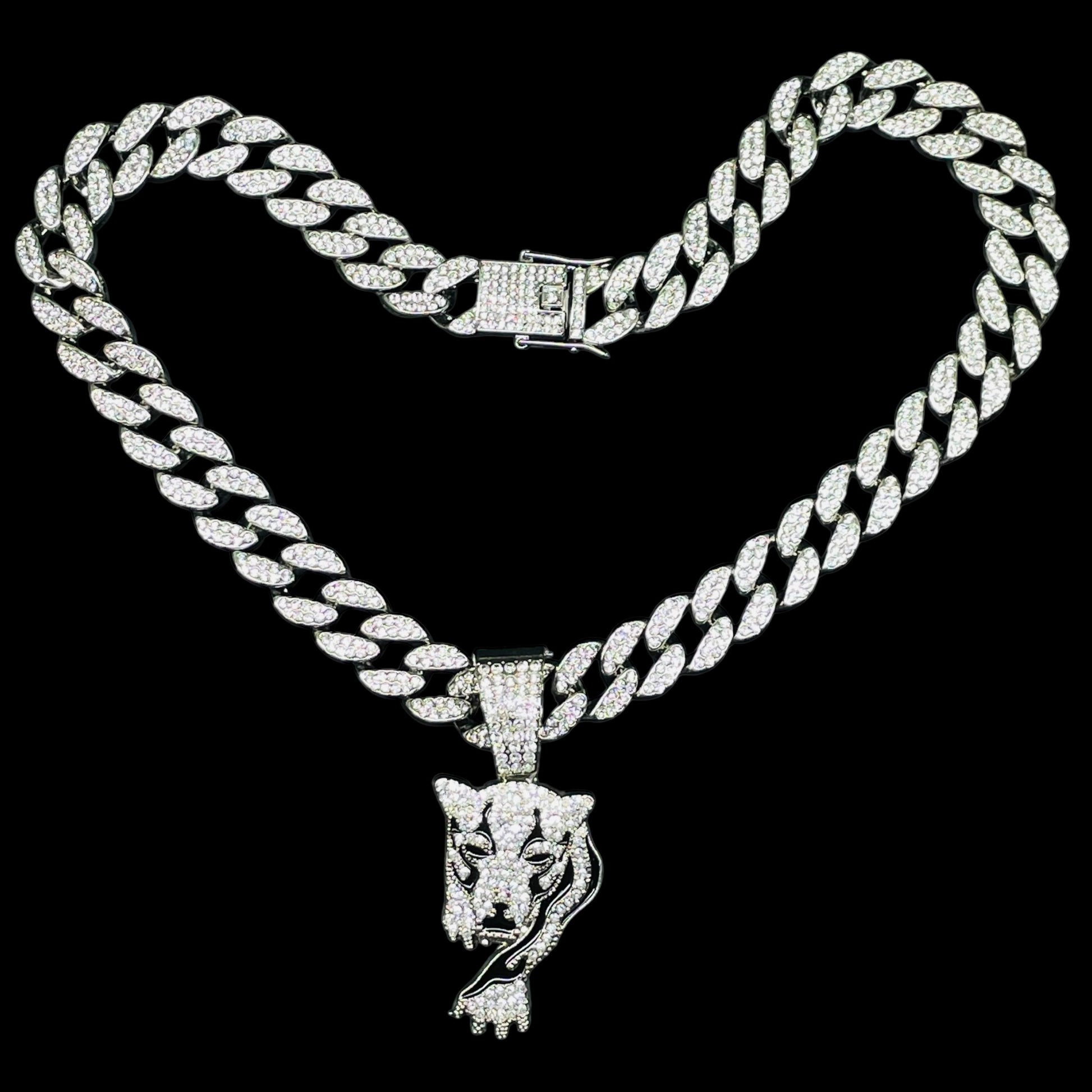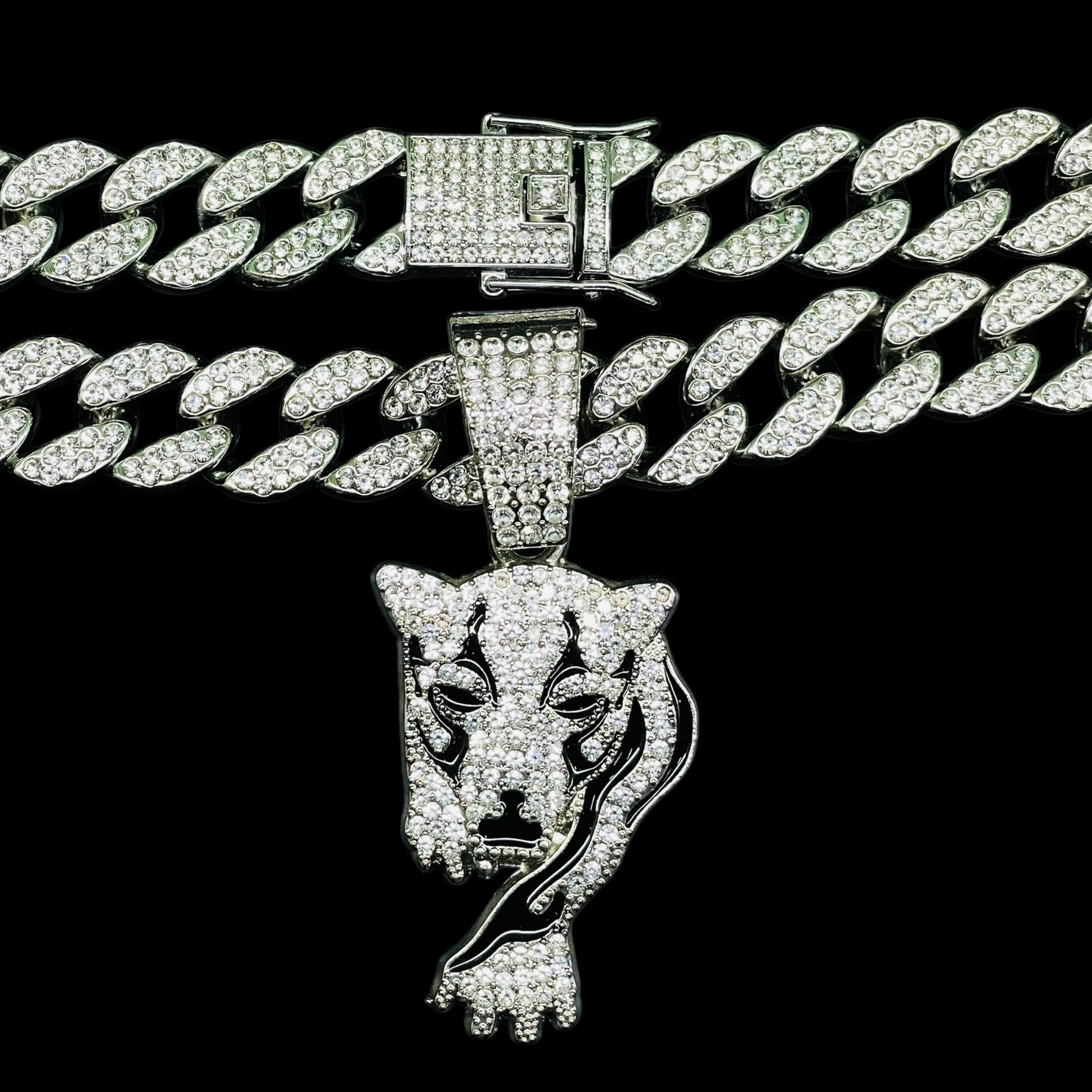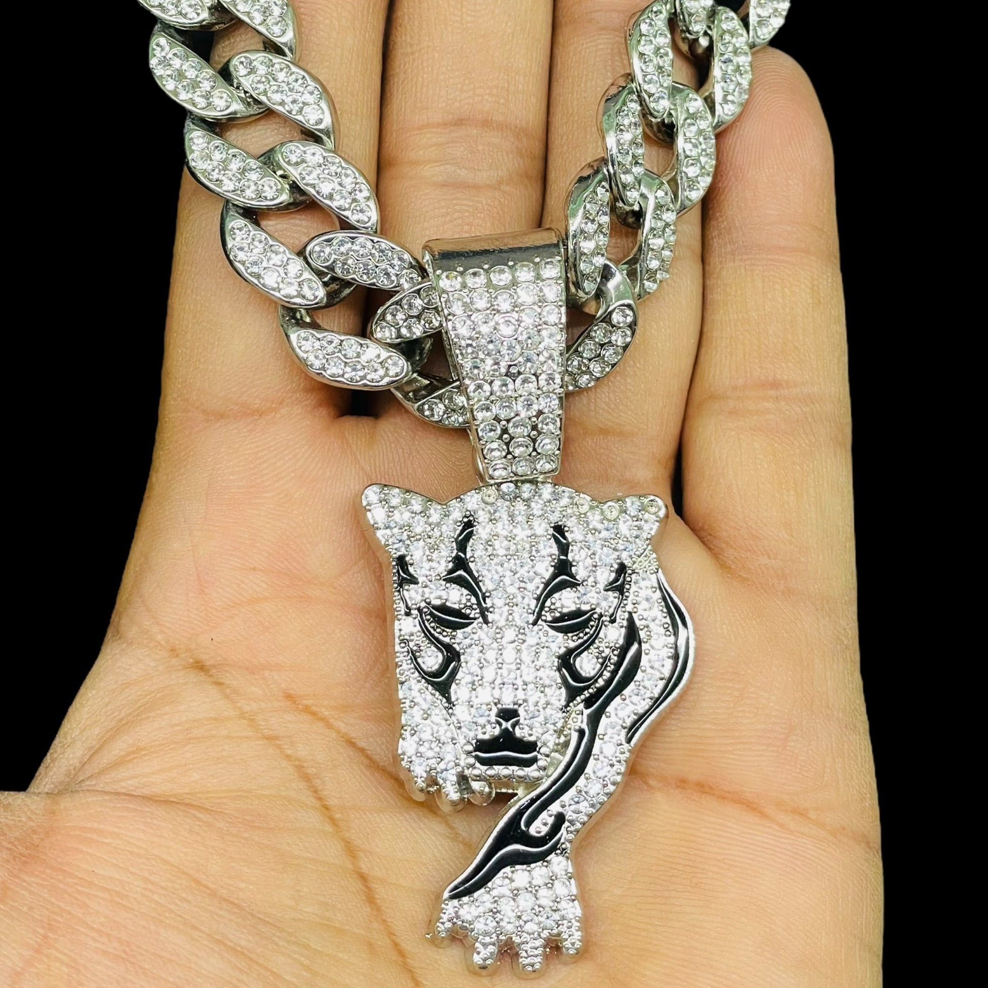 Stride into the spotlight with our Iced Out Walking Tiger Pendant Luxe Set. Fully encrusted with dazzling stones, this dynamic pendant captures the grace and power of a tiger on the prowl. Paired with a matching chain, it’s a fierce accessory that brings street-style edge and luxury shine to any outfit—perfect for those who lead with bold confidence and unstoppable energy.