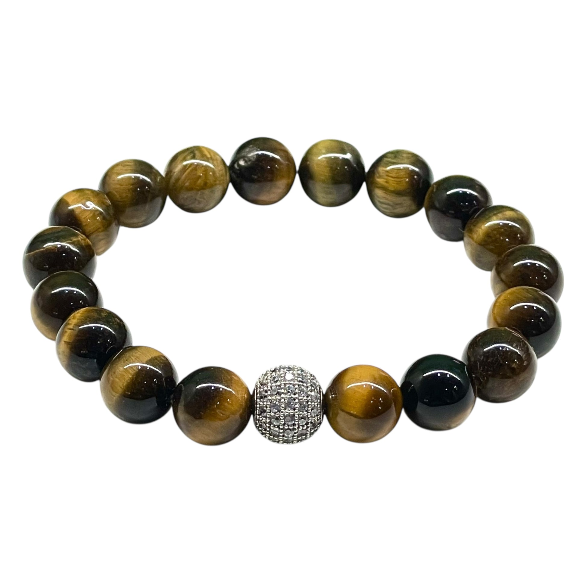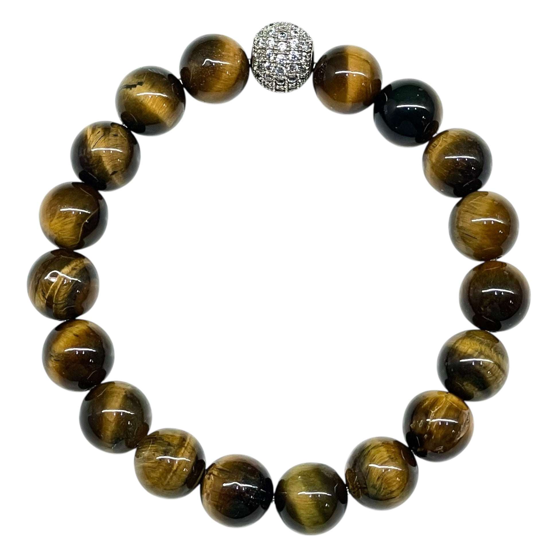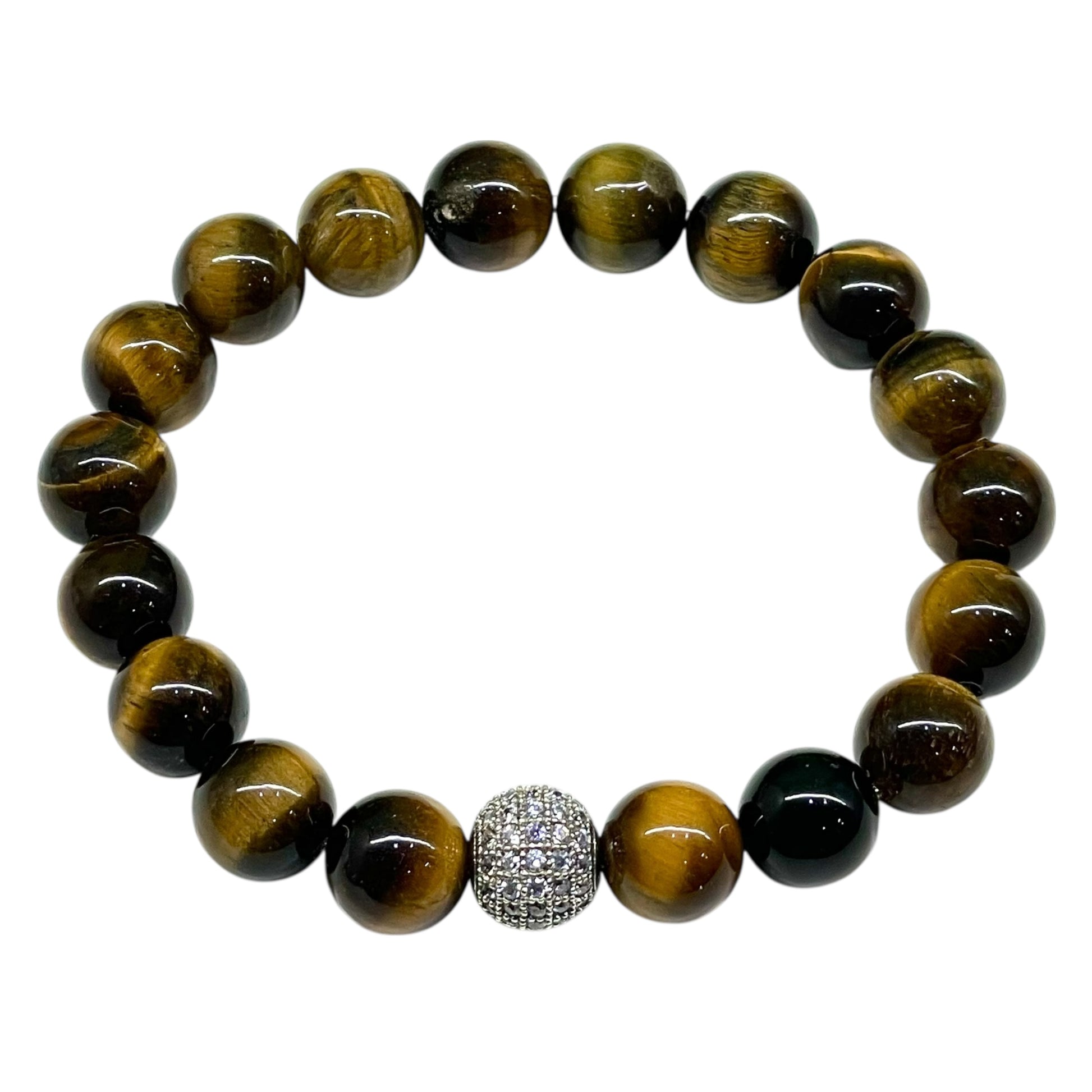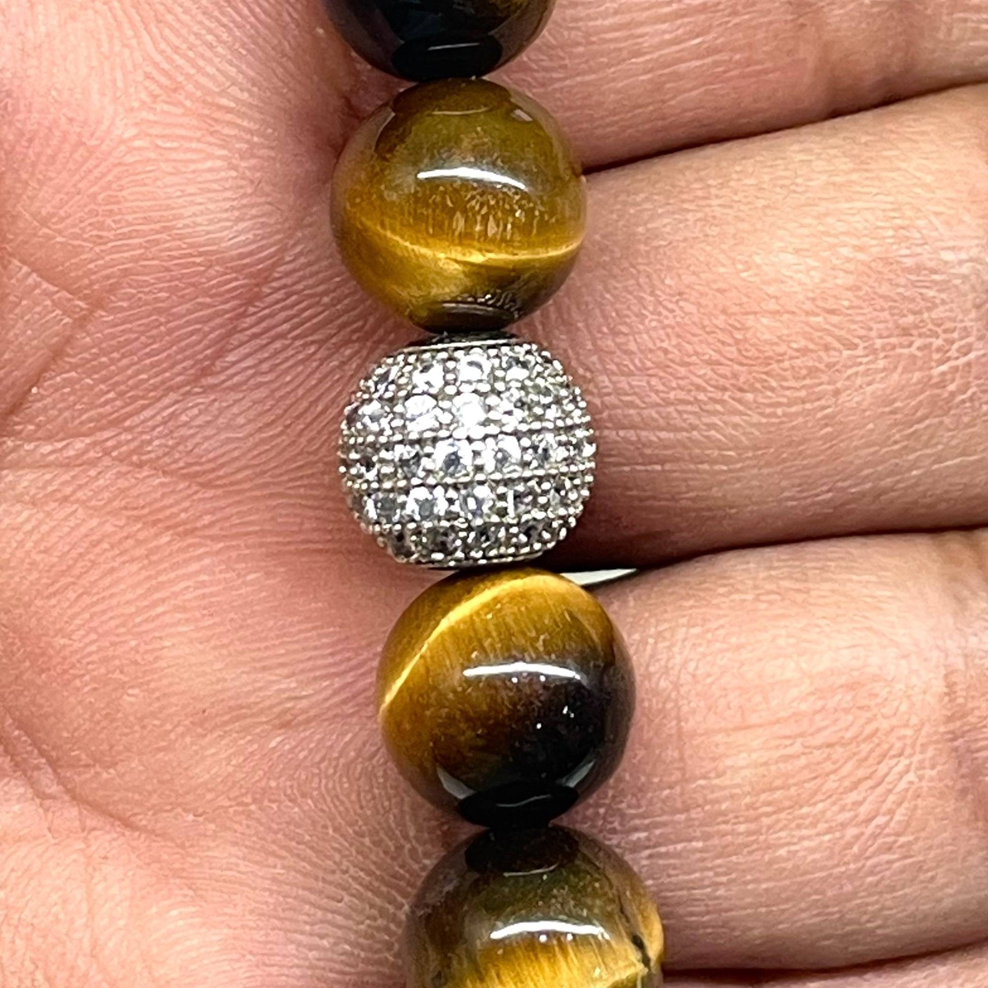 Material: Natural Tiger Eye Beads (10mm) + CZ Disco Ball Accent