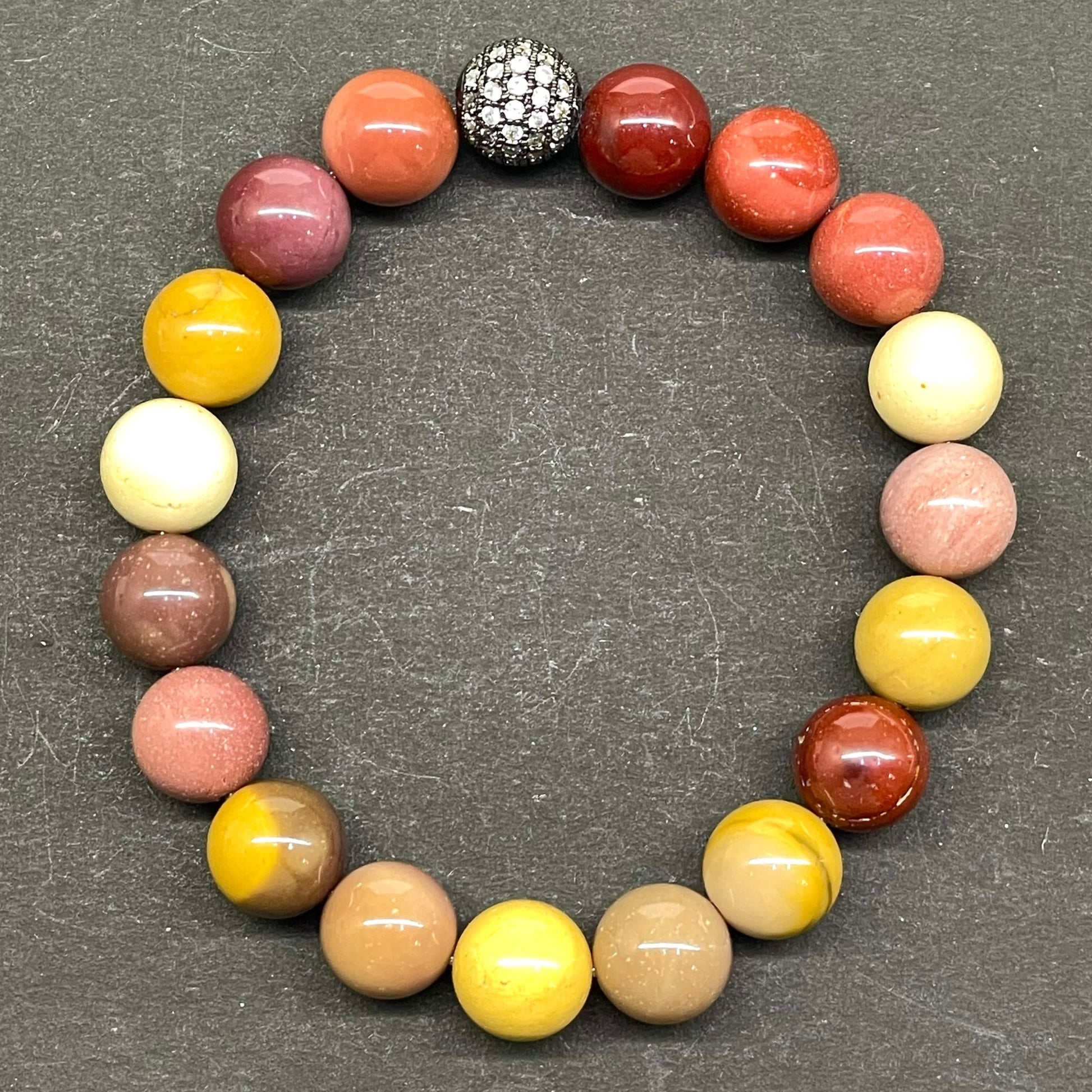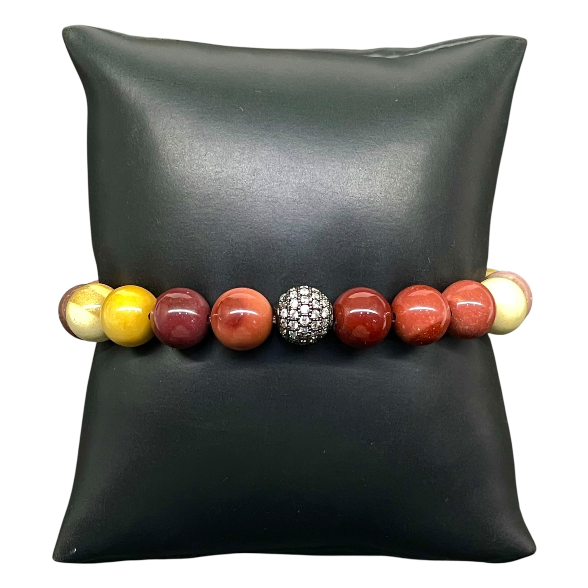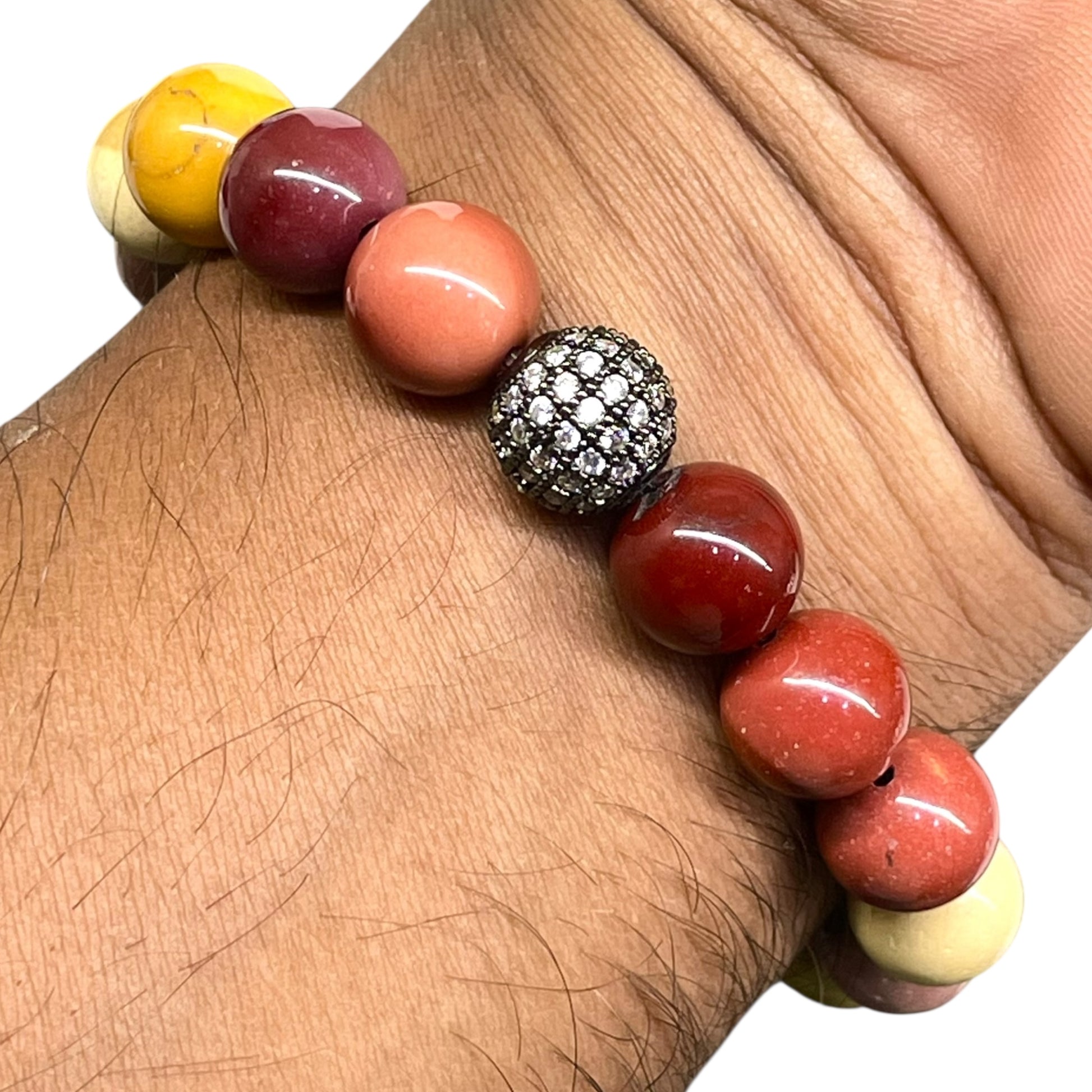 Handmade Mookaite Jasper Stretch Bracelet – 10mm Natural Beads with CZ Disco Ball Accent