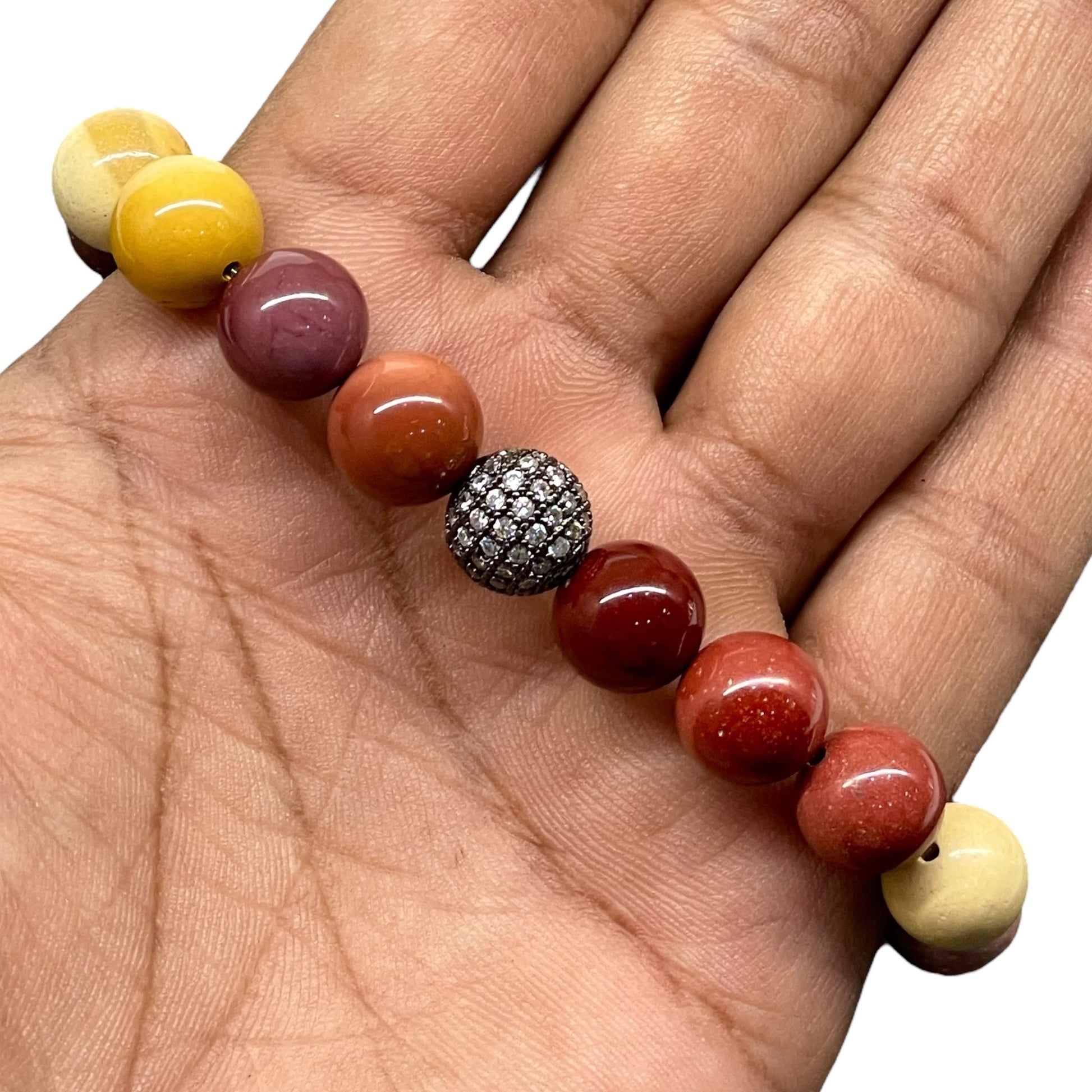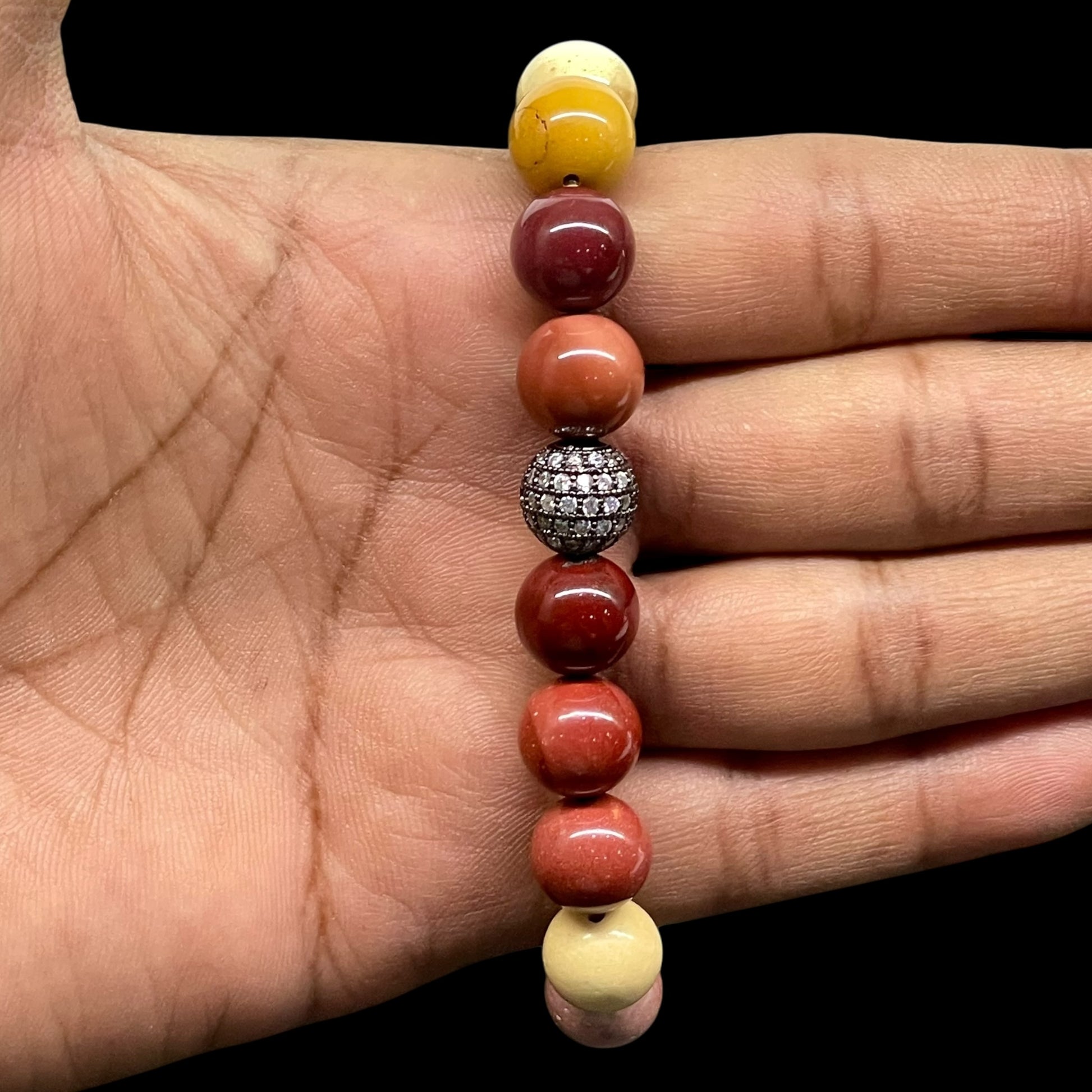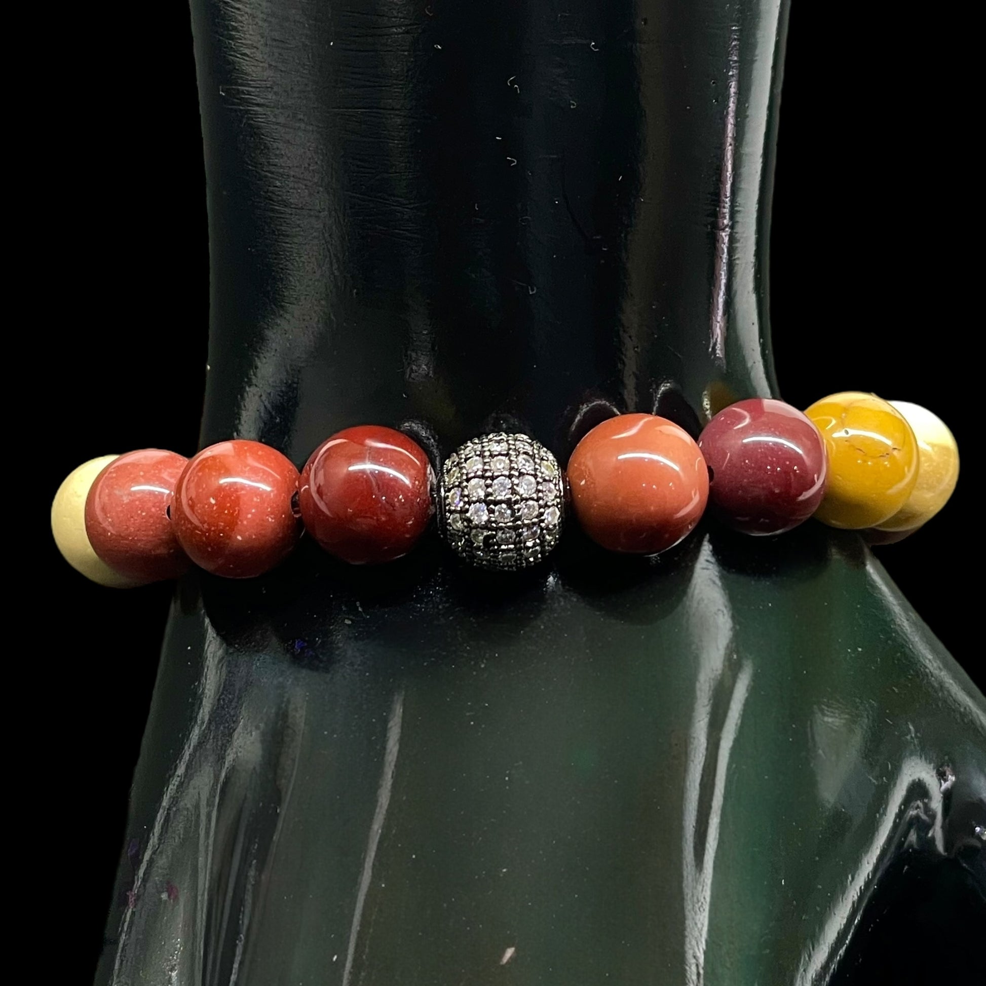 Handmade Mookaite Jasper Stretch Bracelet – 10mm Natural Beads with CZ Disco Ball Accent
