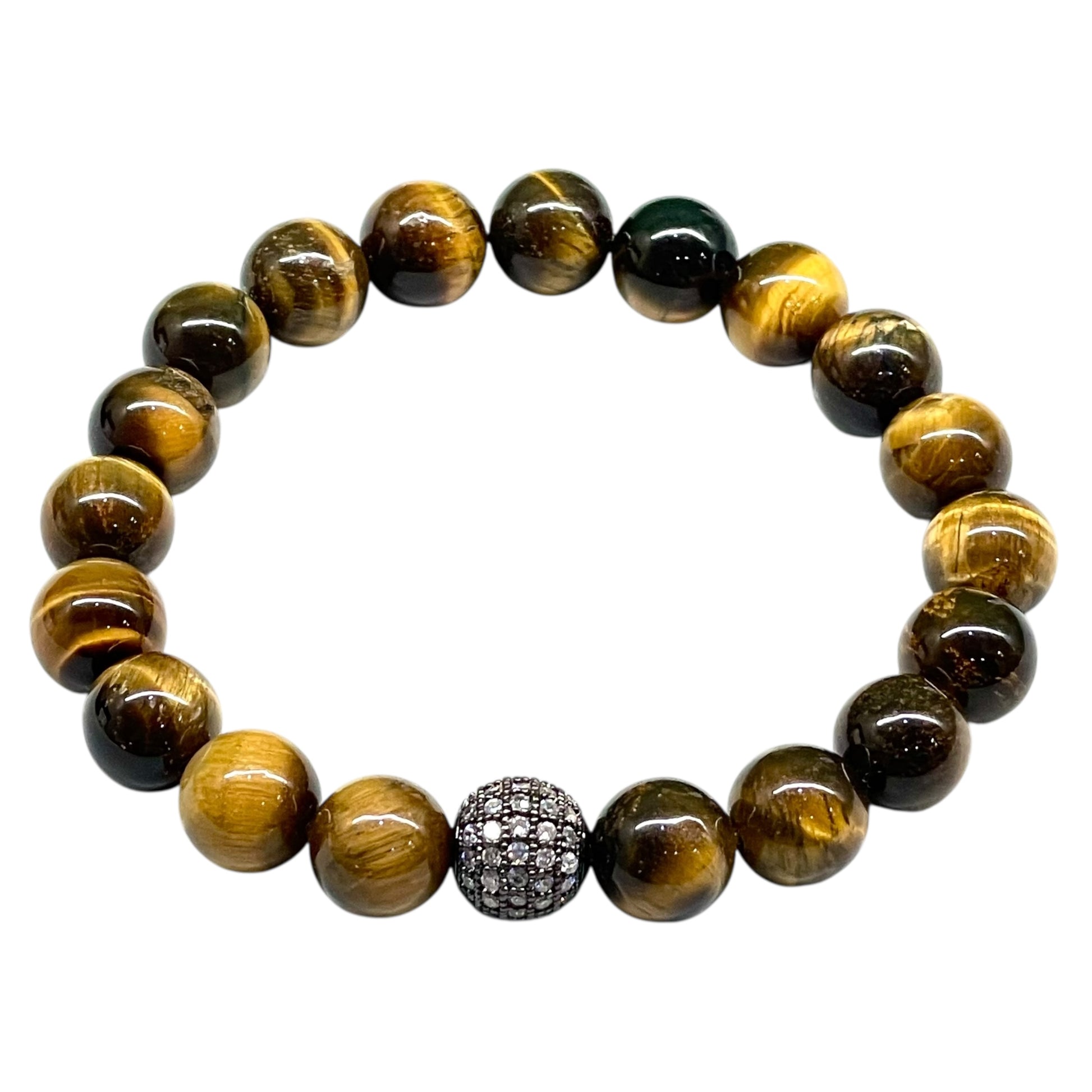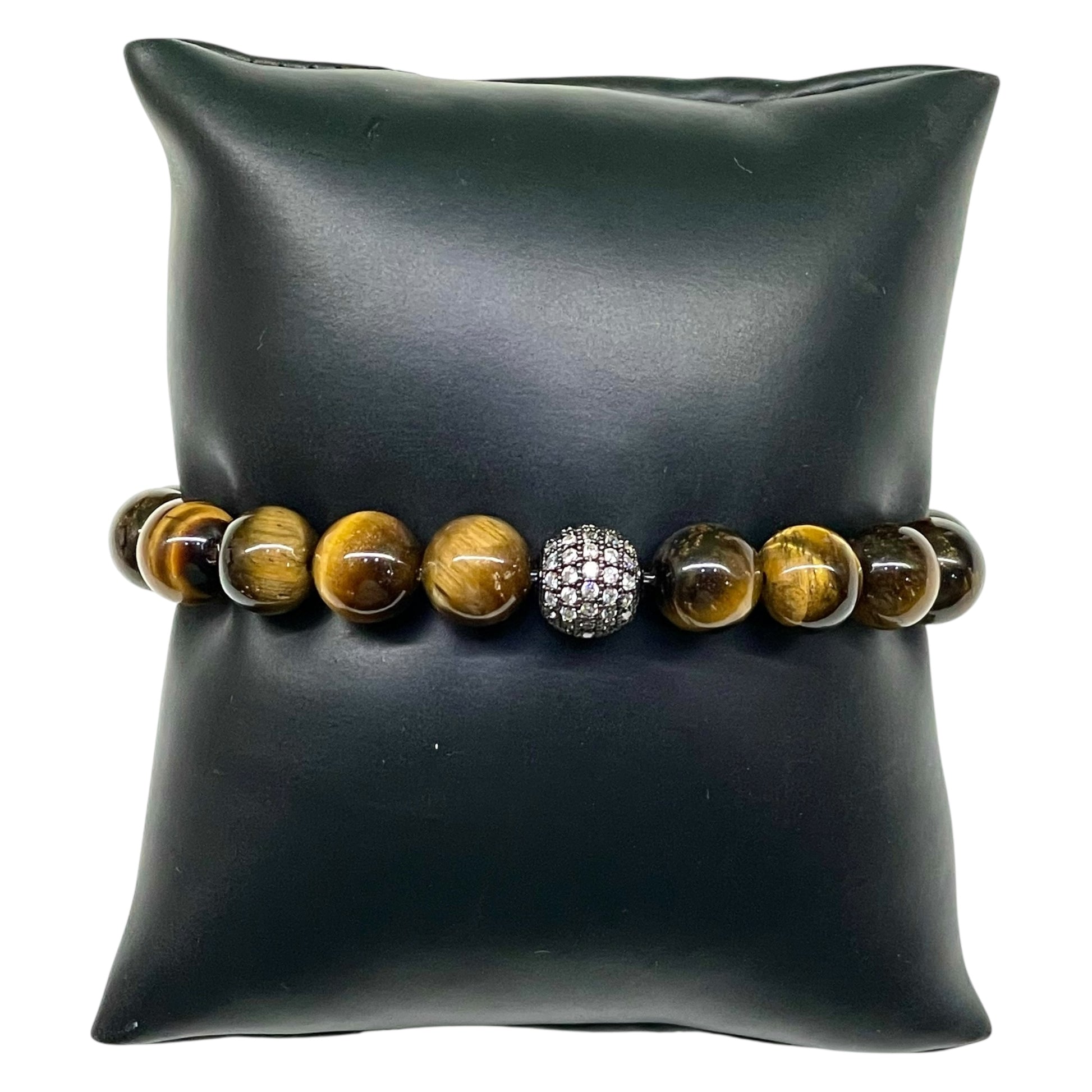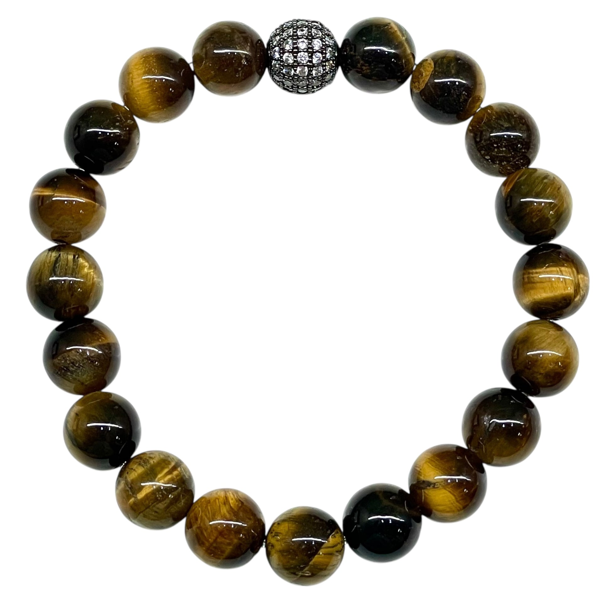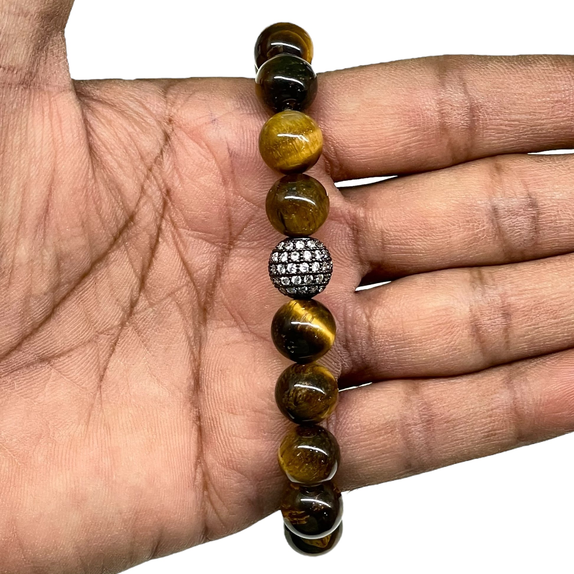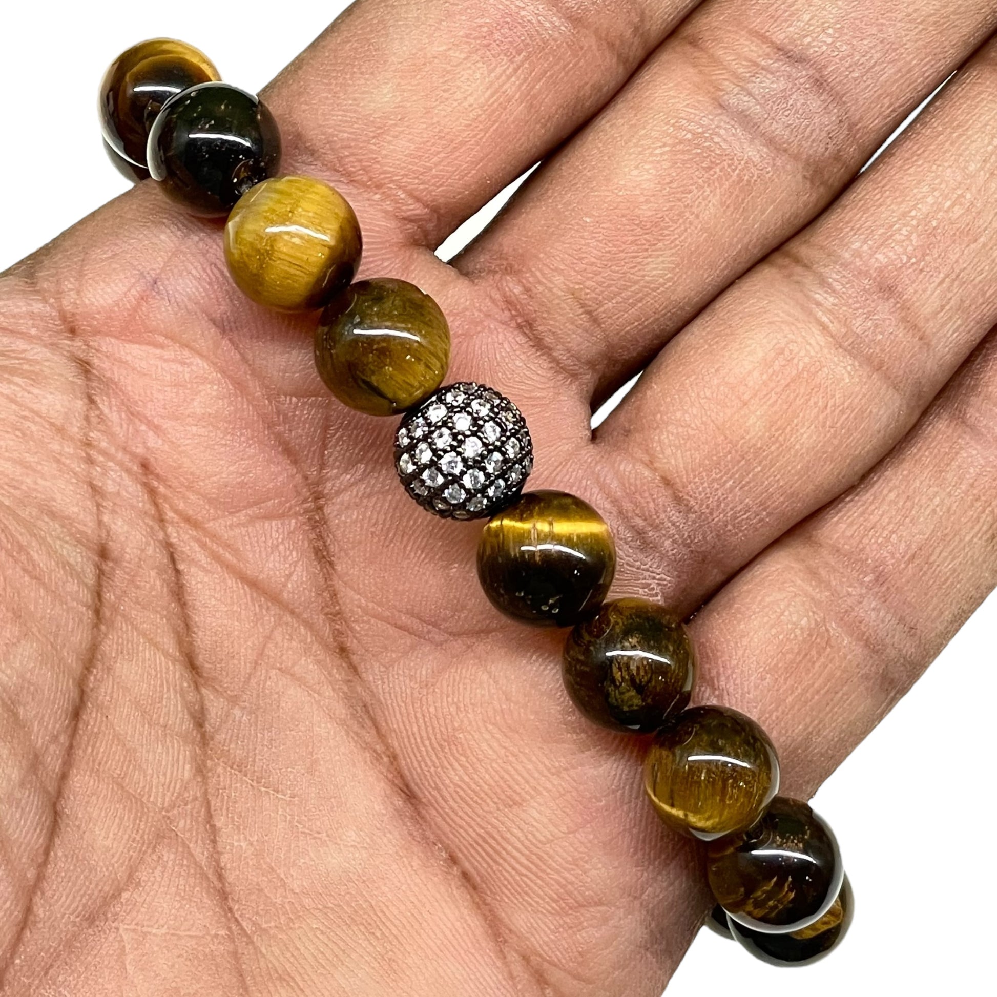 • Material: Natural 10mm Tiger Eye Beads + CZ Disco Ball Accent