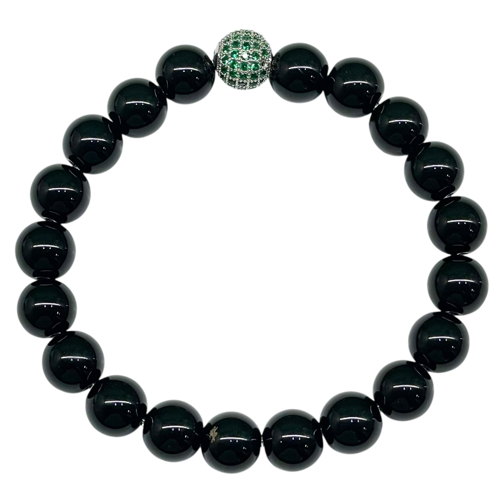 Elevate your style with this Handmade Stretch Bracelet, featuring bold 10mm natural Black Onyx beads paired with a sparkling CZ Disco Ball accent. Black Onyx is known as a powerful protective stone, believed to absorb negative energy, promote confidence, and encourage focus.