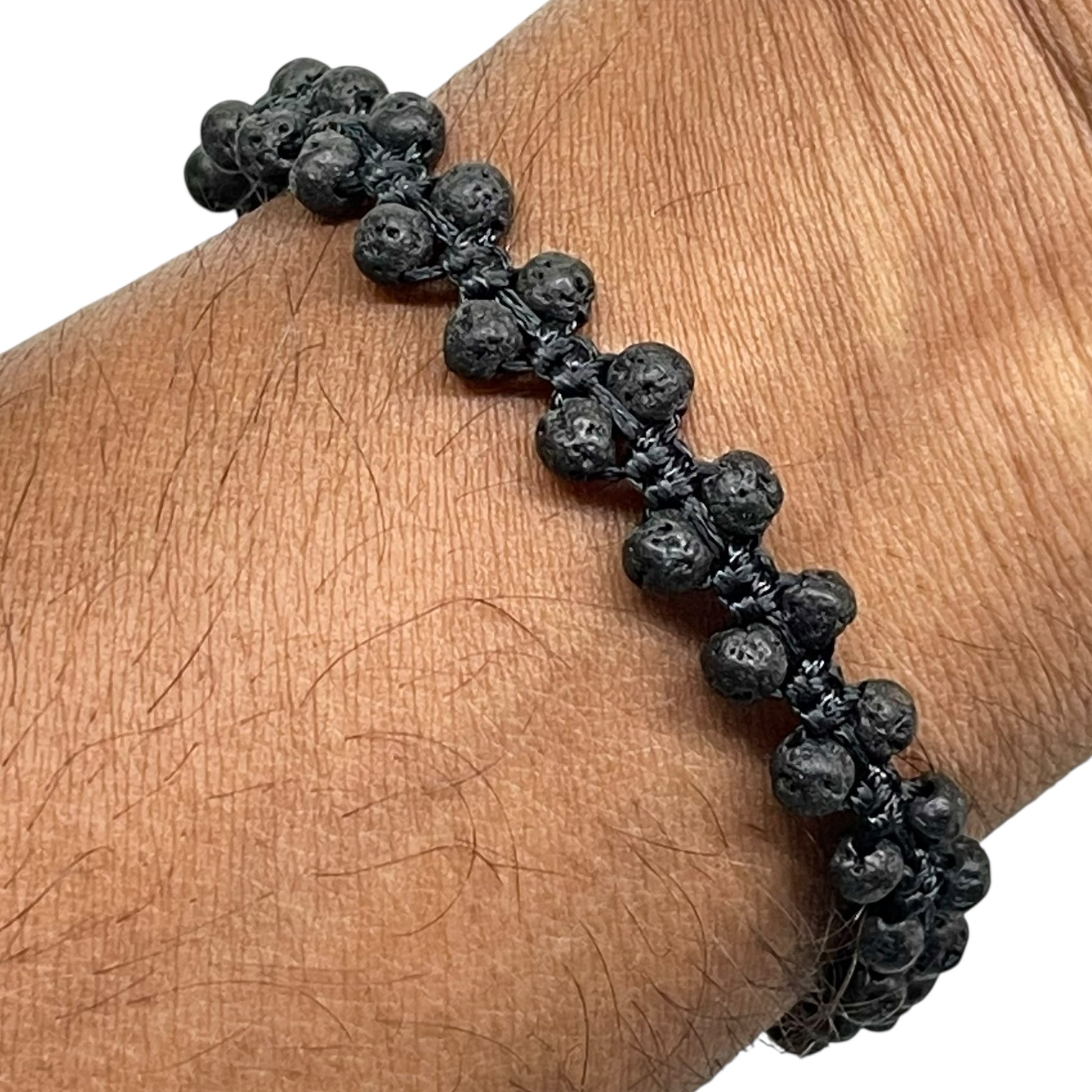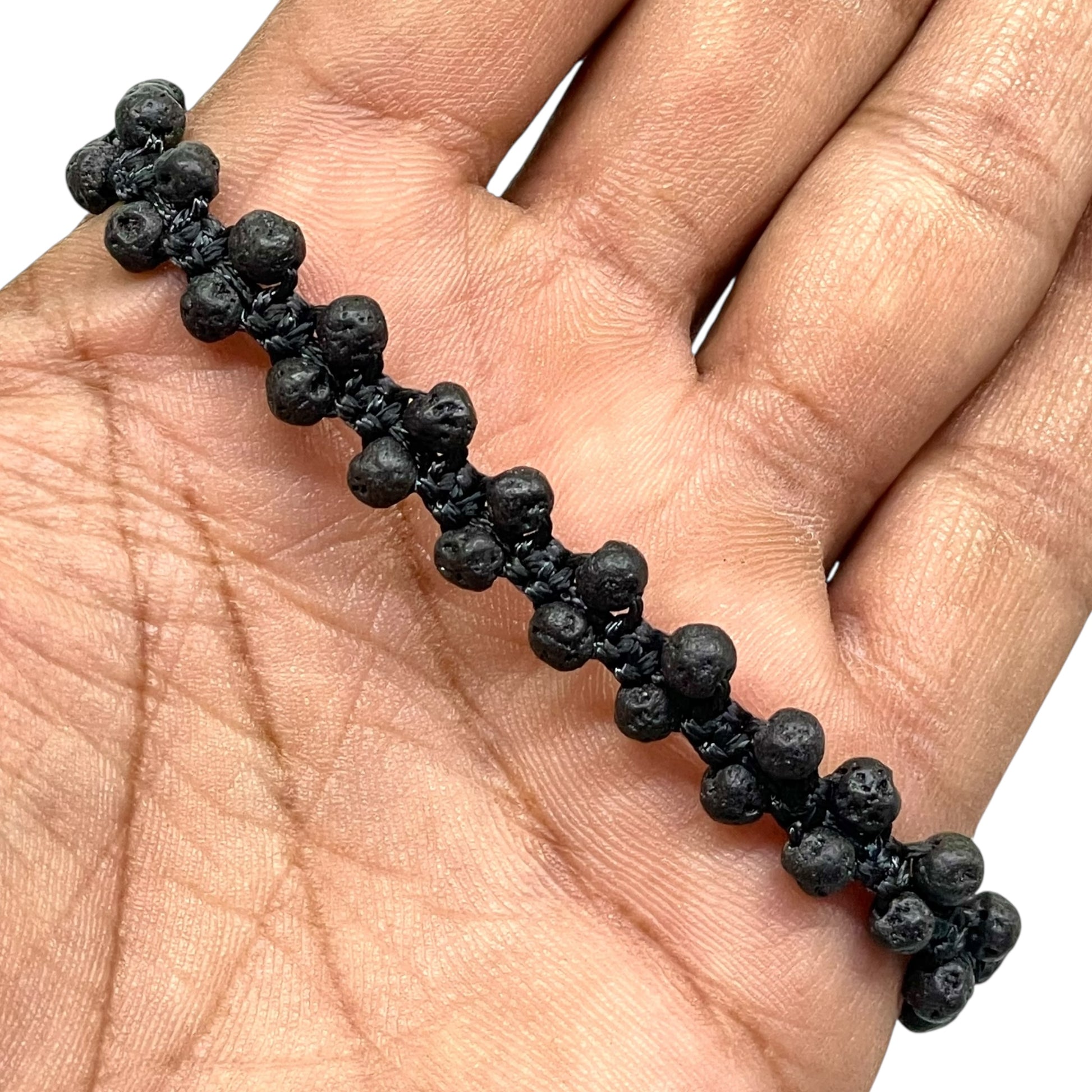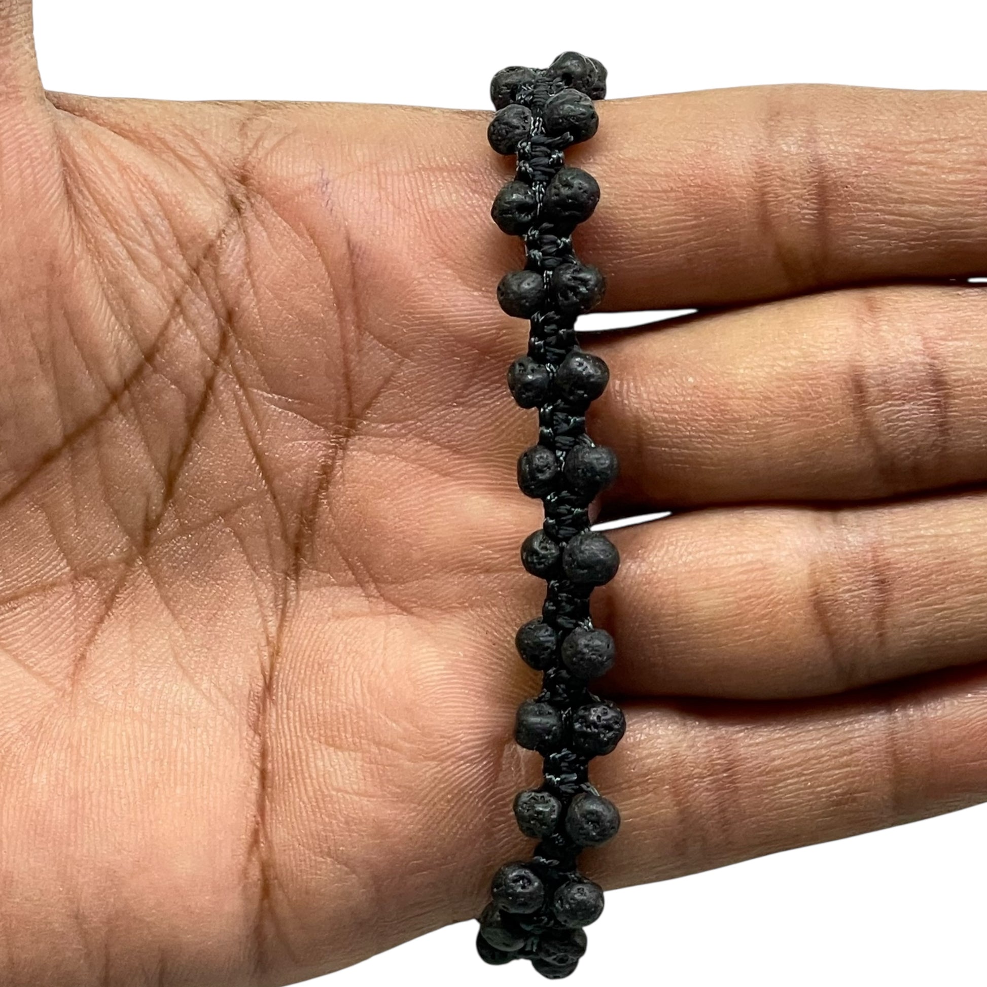 Embrace grounding energy and bold style with this Handmade Lava Stone Bracelet, crafted with natural 4mm beads. Lava stone, formed from volcanic rock, is known as a symbol of strength and courage, helping to bring stability, calm, and positive energy. Its porous surface also makes it a popular choice for use with essential oils as a natural diffuser. The bracelet features a durable adjustable macrame design with a sleek black cord, ensuring a perfect fit for all wrist sizes. Its versatile and minimalist look makes it a great accessory for both men and women—ideal for daily wear, meditation, yoga, or gifting. ✨ Key Features: Genuine Natural Lava Stone Beads (4mm round) Handmade with black macrame cord Adjustable size – fits most wrist sizes Unisex design – suitable for men and women Known for grounding, calming, and strength energies Can be used as an essential oil diffuser bracelet Perfect for casual wear, spiritual practices, or gifts