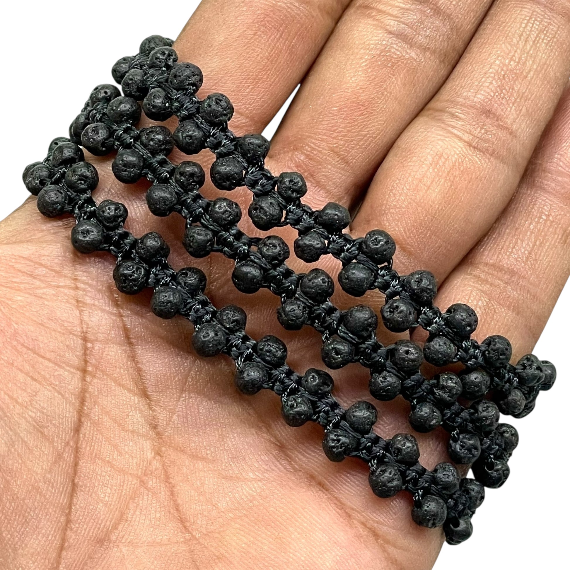 Handmade Lava Stone Bracelet – 4mm Beads | Adjustable Macrame Black Cord Unisex Jewelry
