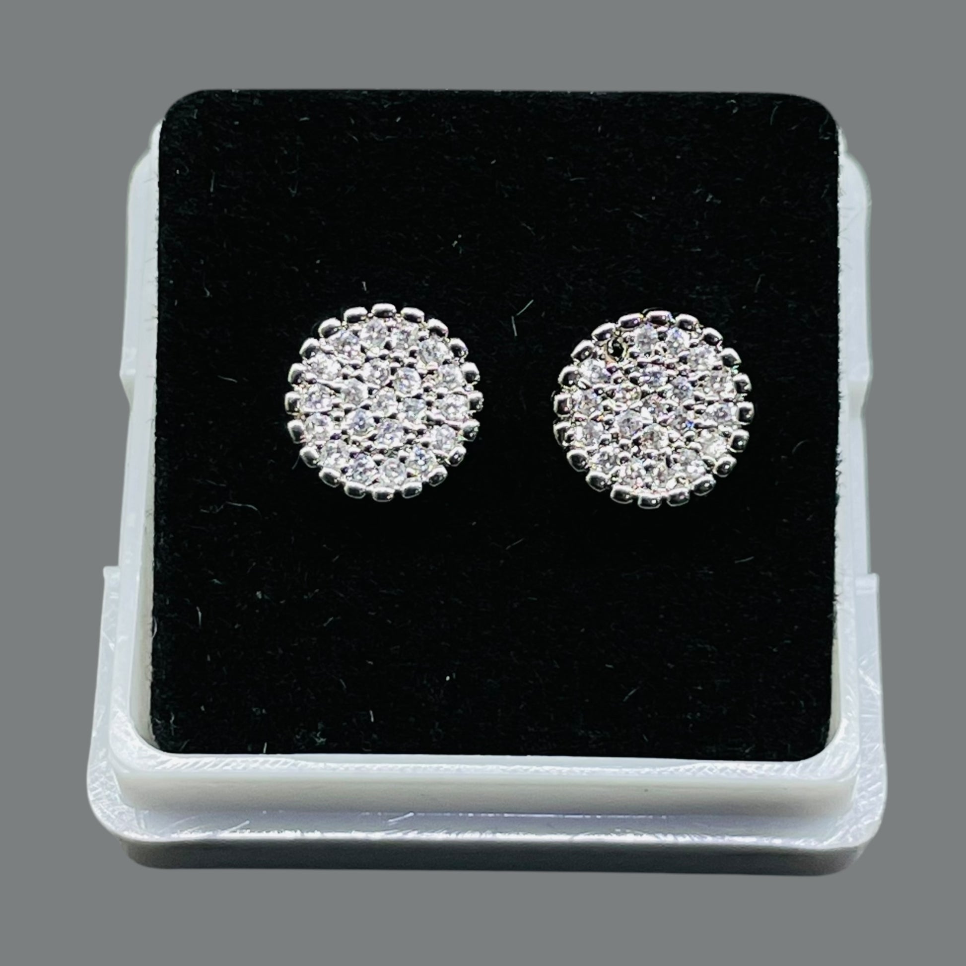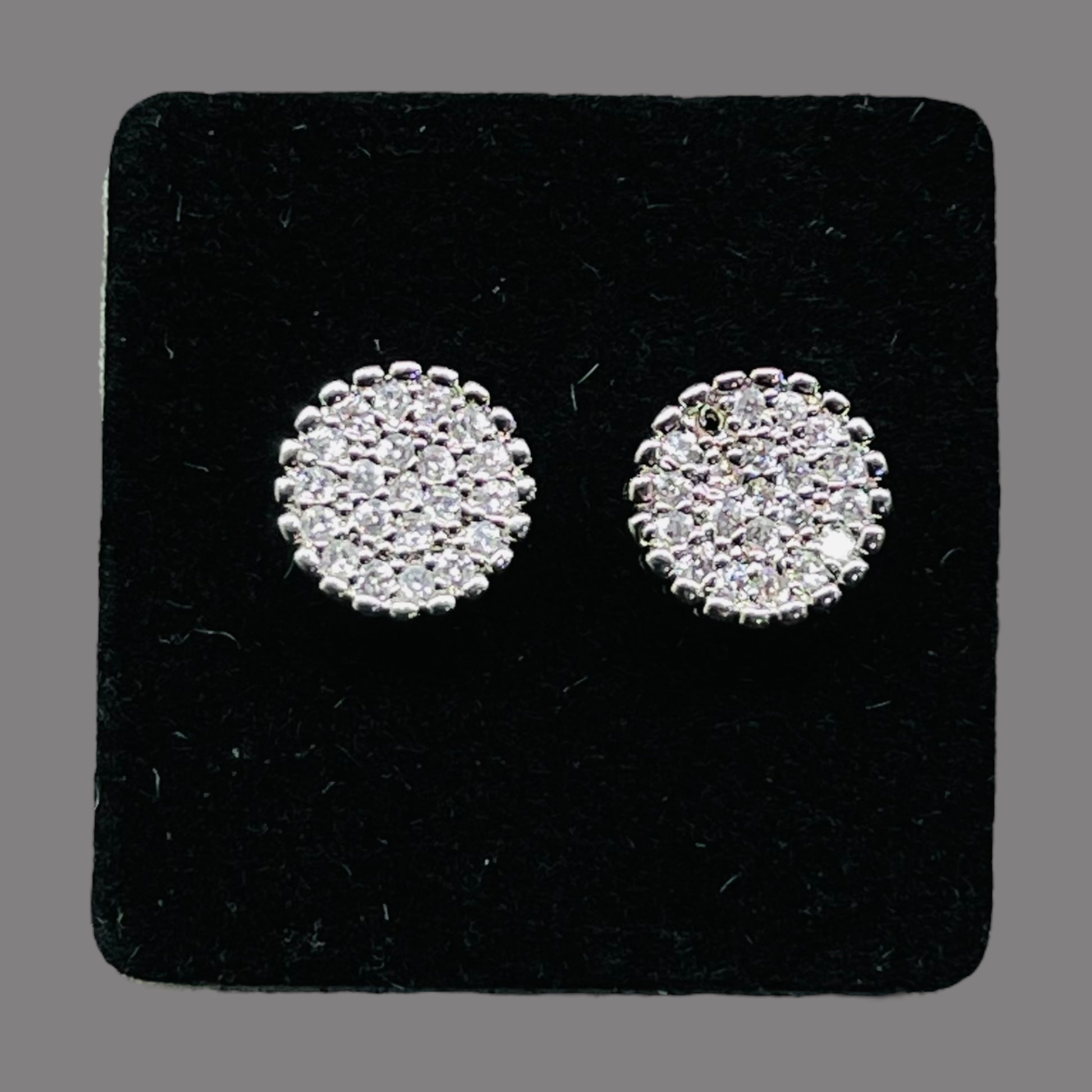 Add a touch of brilliance to your accessory collection with these Elegant Silver Round Pave CZ Stud Earrings. Featuring a polished silver-tone base adorned with a cluster of dazzling cubic zirconia stones, these earrings offer timeless charm and radiant sparkle. Perfect for both casual and formal settings, they’re a must-have for any jewelry lover.