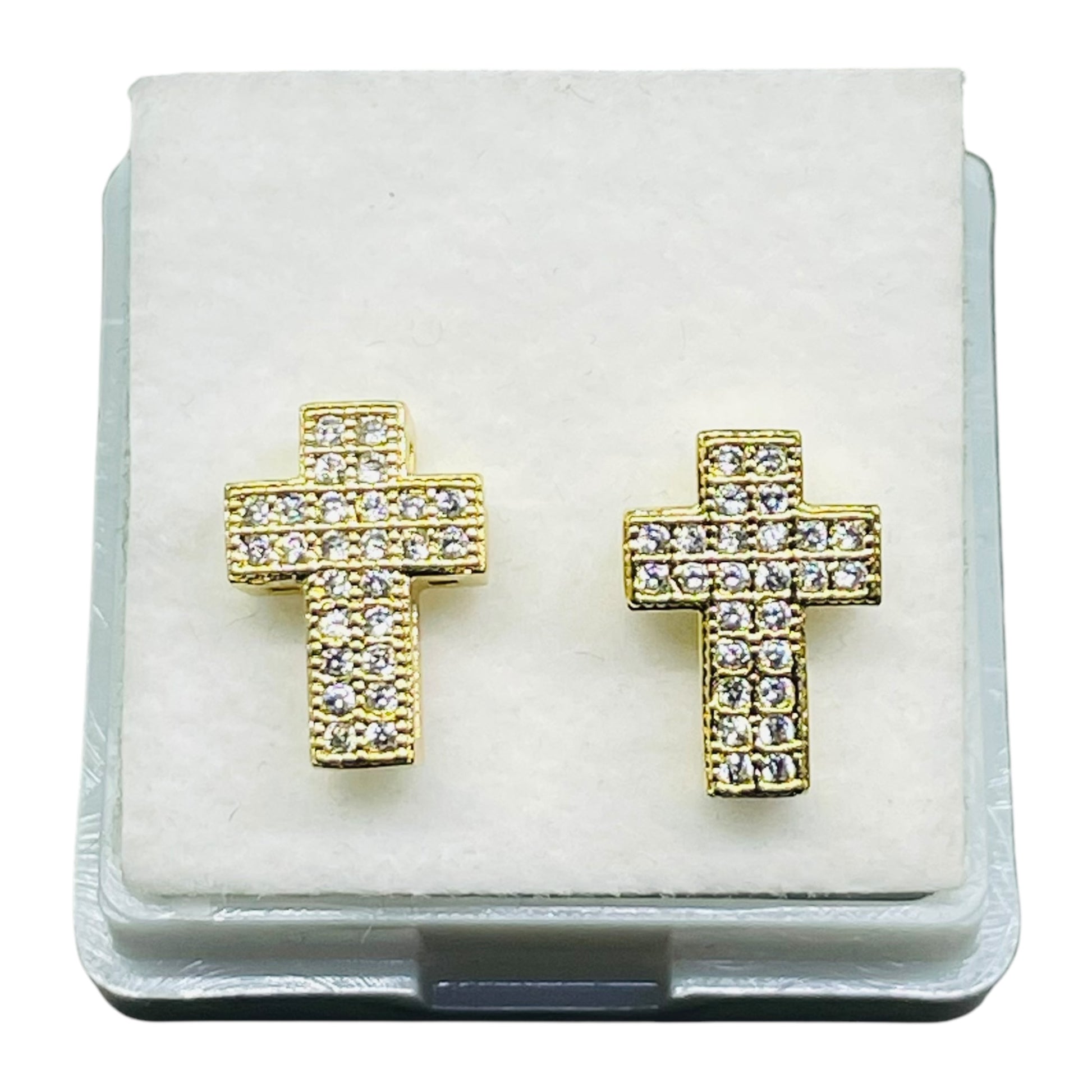 Showcase your faith in style with these stunning Gold-Tone Cross Stud Earrings. Beautifully crafted with a cross-shaped design, each earring is encrusted with dazzling crystals that catch the light with every movement. The rich gold-tone finish adds a touch of luxury, making them perfect for both everyday wear and special occasions. A meaningful gift for loved ones or a timeless piece for your own jewelry collection.