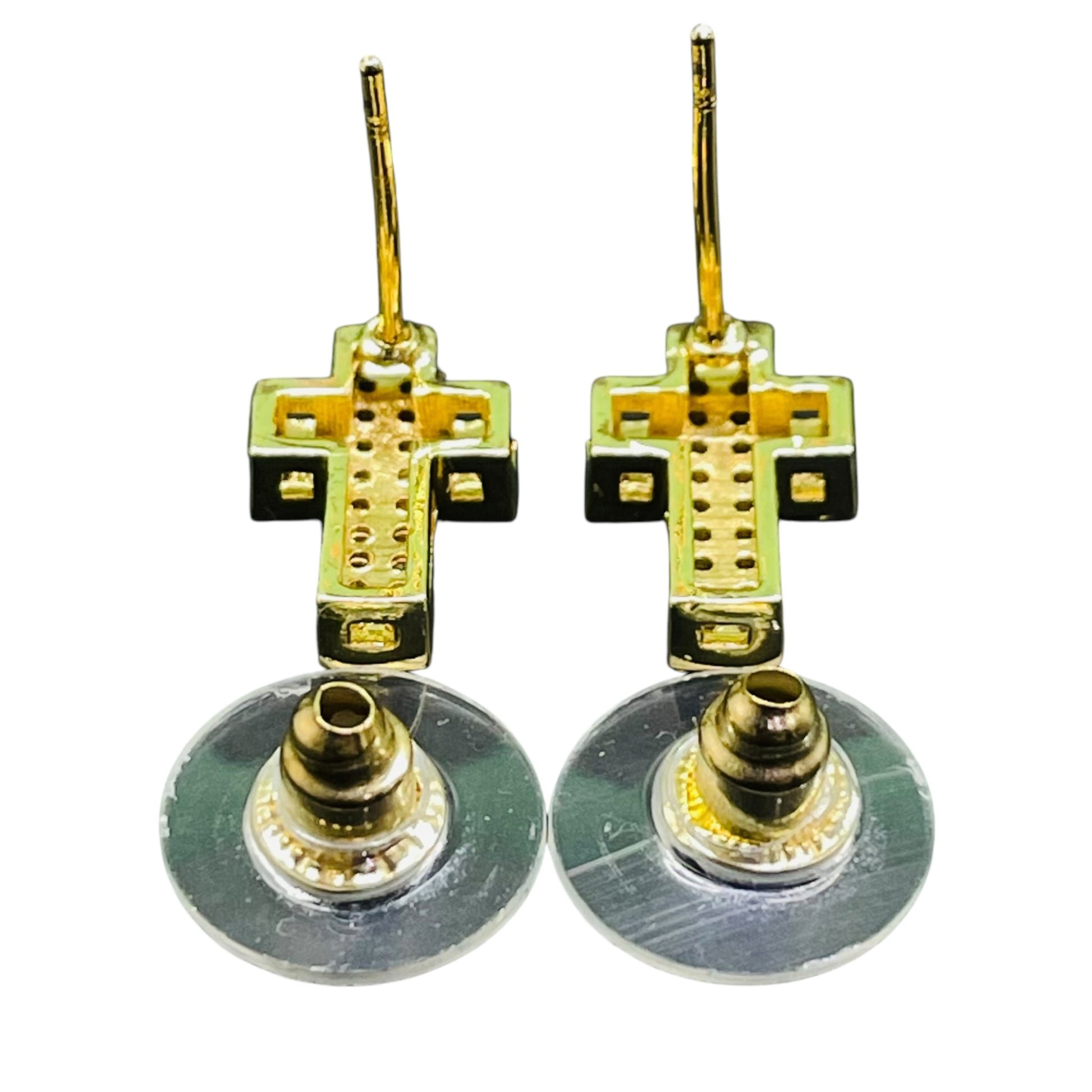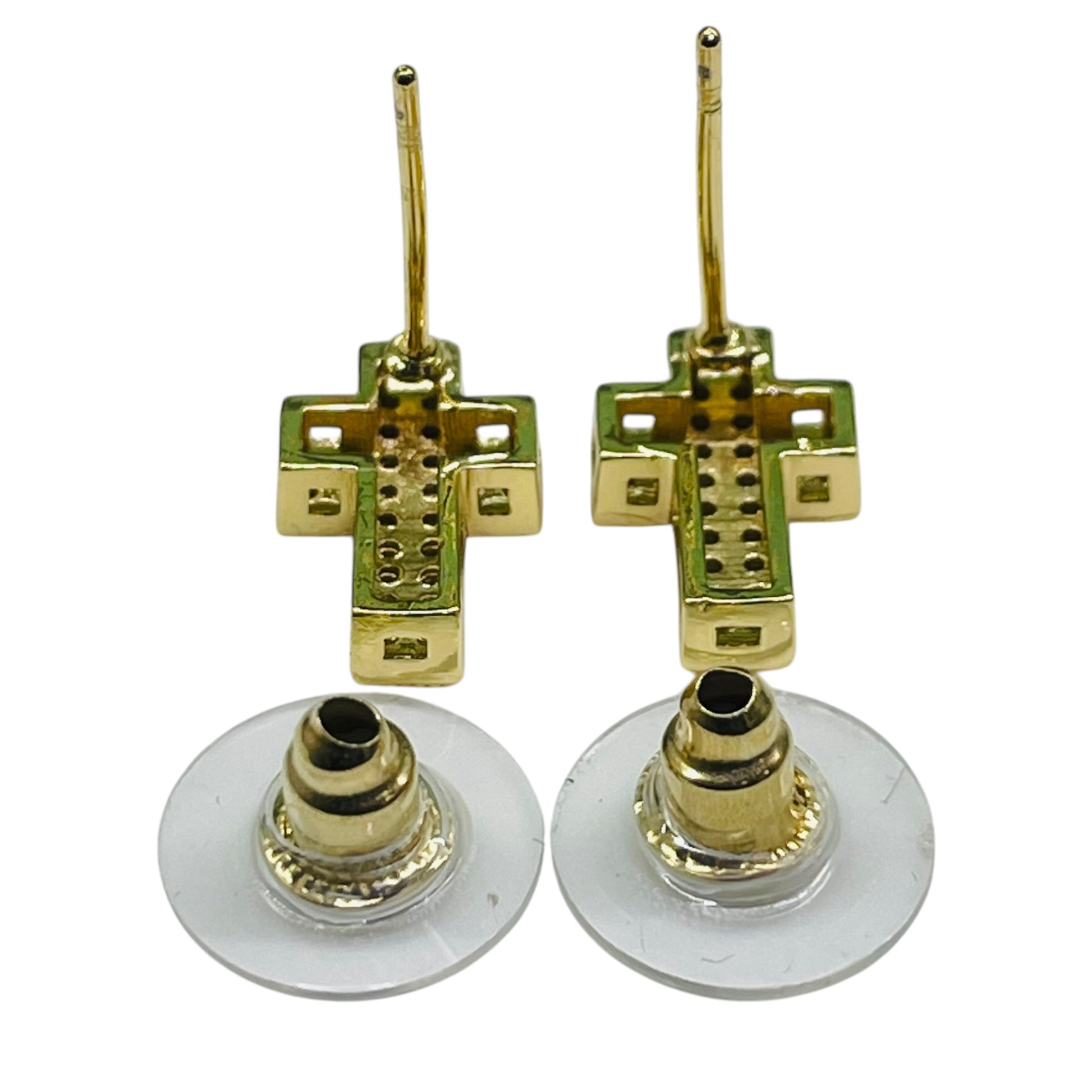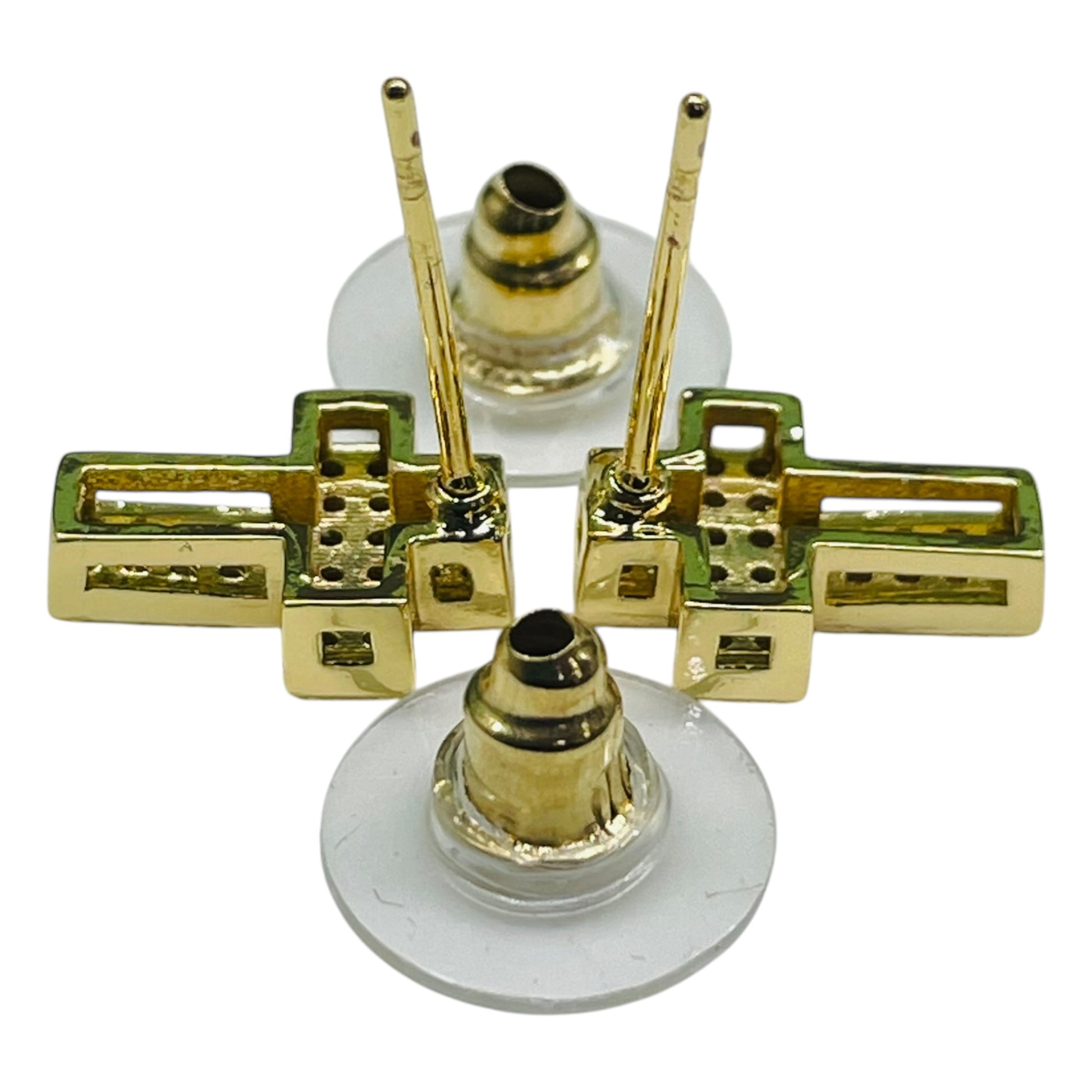 Gold-Tone Cross Stud Earrings with Sparkling Crystals