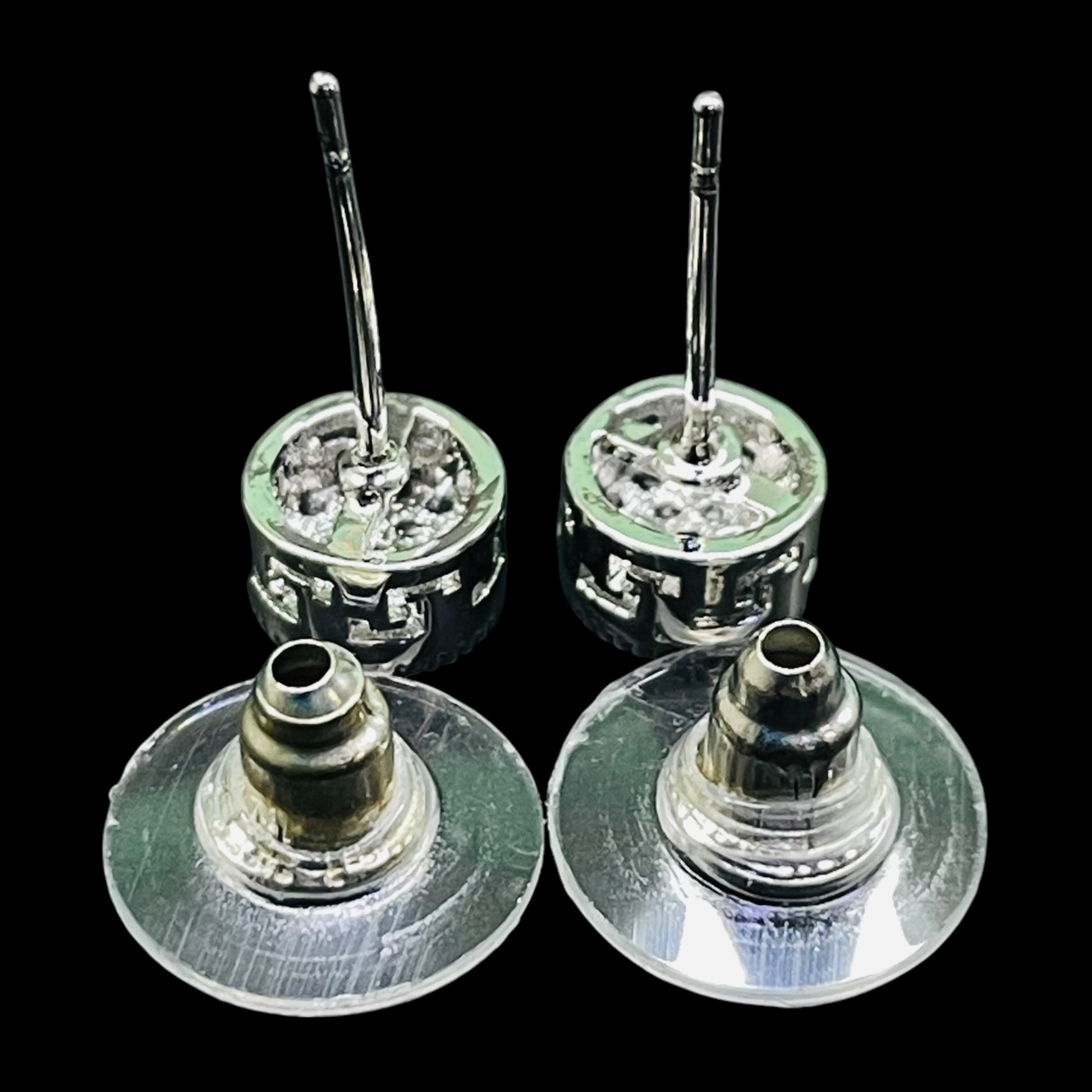 Classic Round Crystal Stud Earrings – Silver Tone