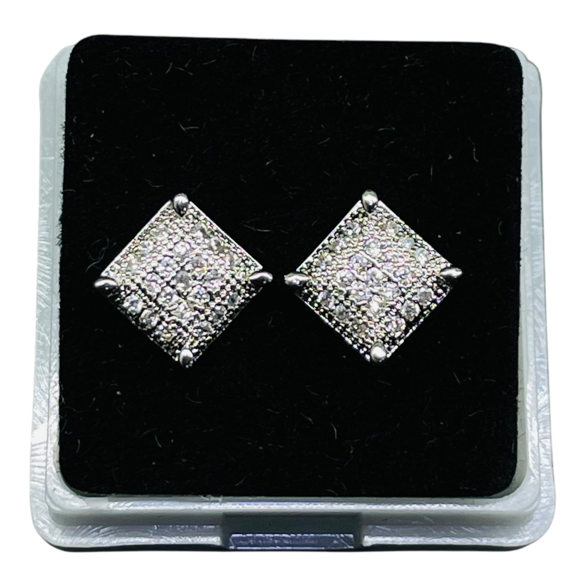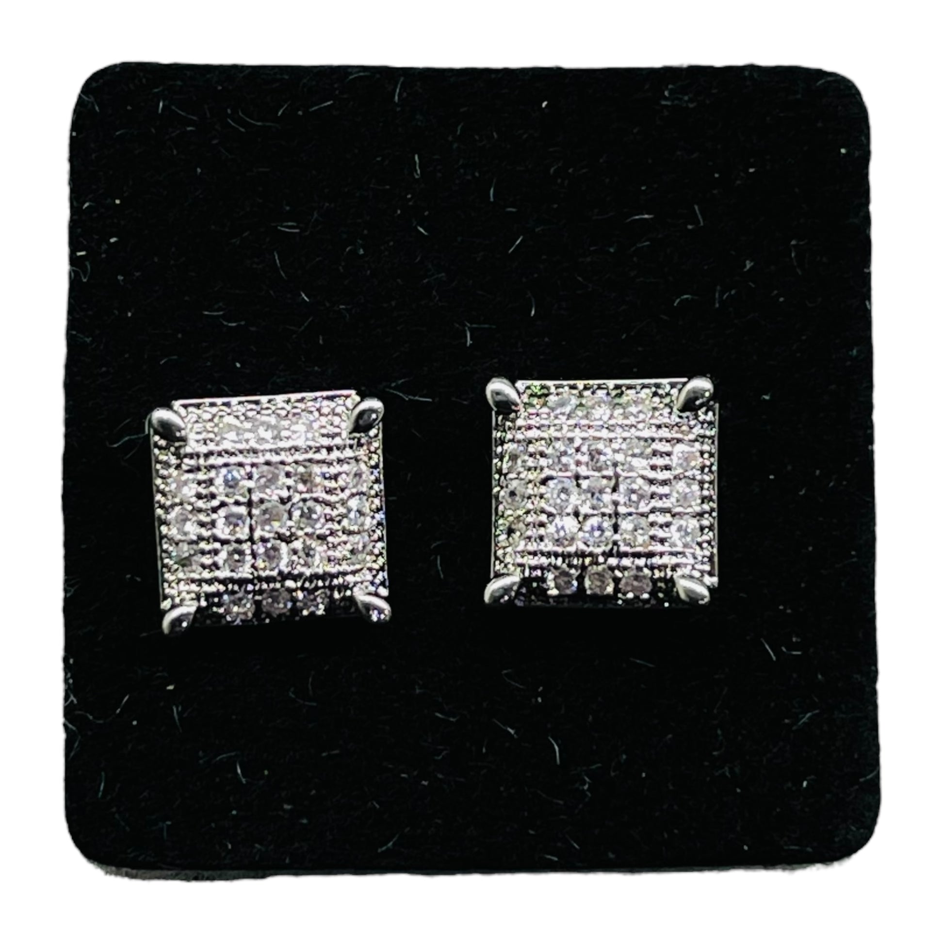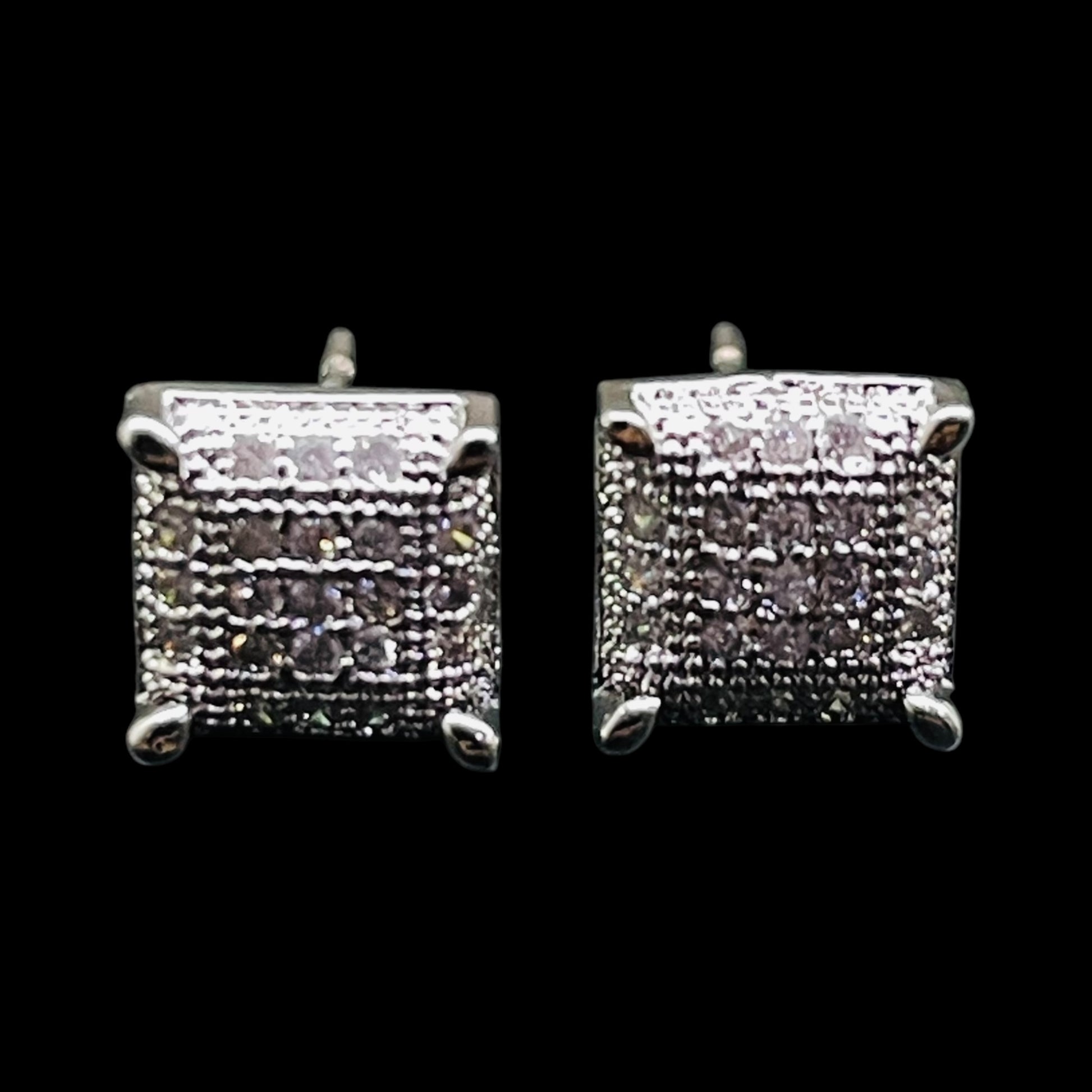 Make a bold statement with these Silver-Tone Square Pavé Stud Earrings. Crafted with precision, each earring features a square design filled with shimmering crystal accents, securely held by four claw-style prongs for added elegance. The high-polish silver-tone finish adds a contemporary touch, making these earrings ideal for both casual and formal outfits. A perfect gift for anyone who loves timeless sparkle with a modern edge.