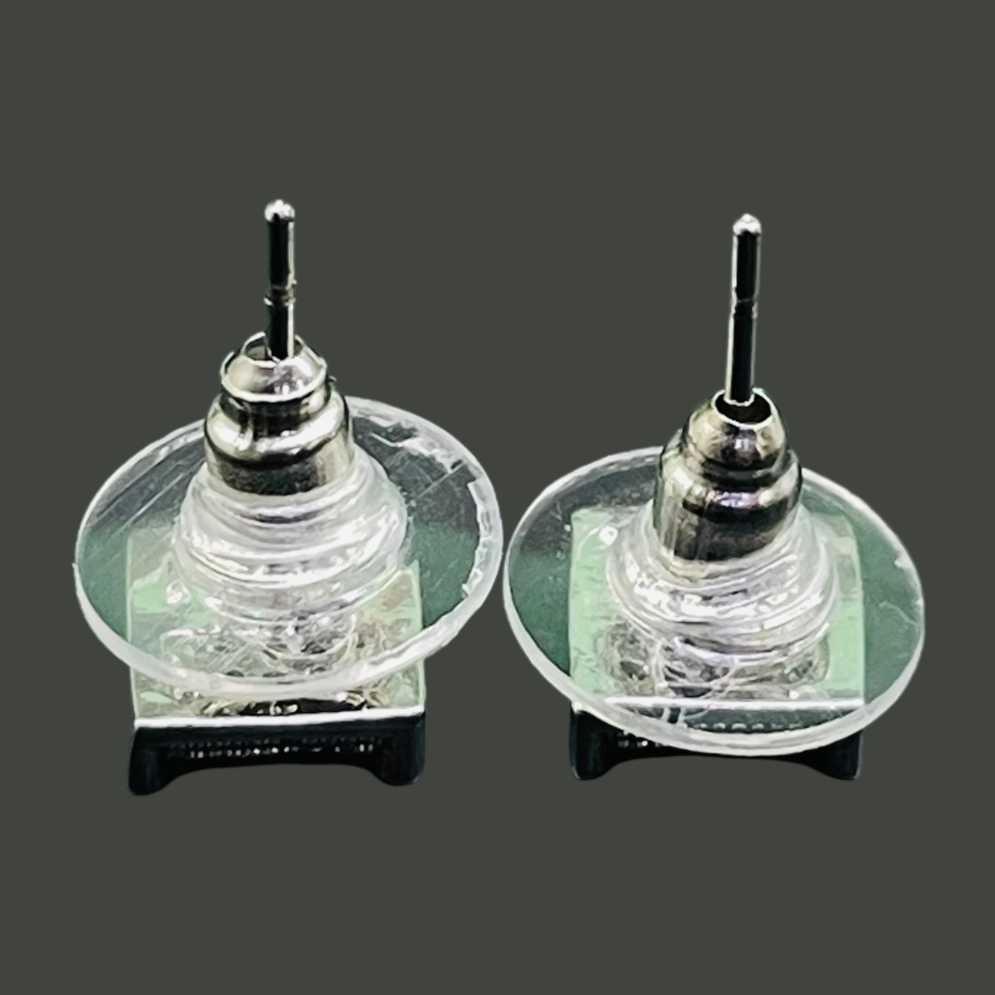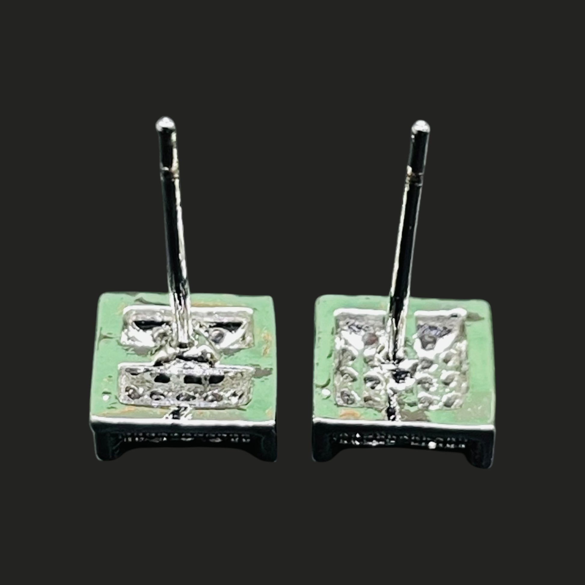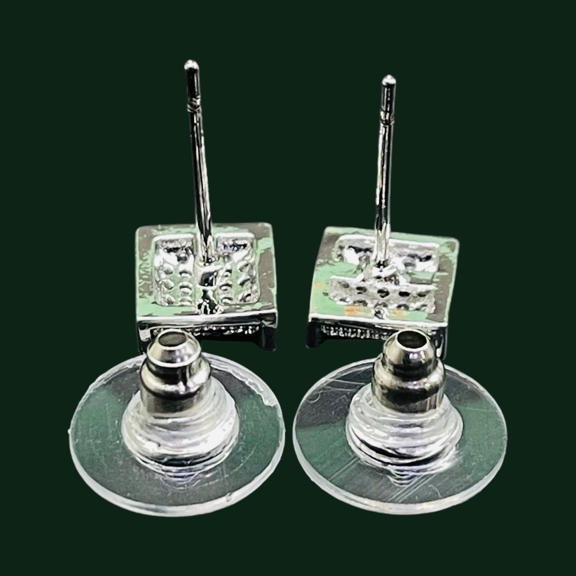 Silver-Tone Square Pavé Stud Earrings with Crystal Accents