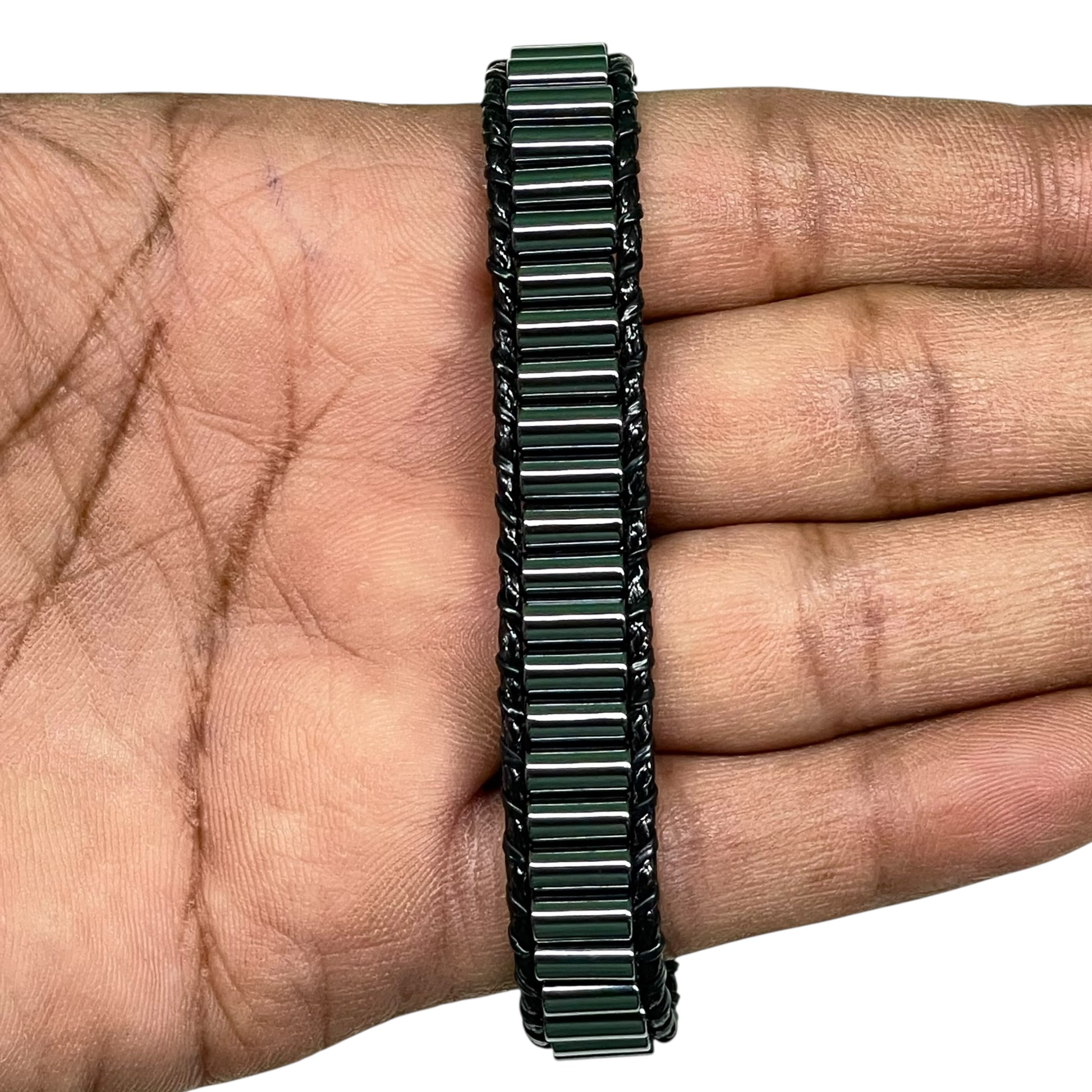 Enhance your look with this handmade Hematite bracelet, featuring sleek 8mm tube beads carefully woven into a durable black cord. The secure clasp closure adds both style and comfort, making it ideal for everyday wear or special occasions. Hematite is often associated with grounding, balance, and protection, making this bracelet not only a fashionable accessory but also a meaningful piece of jewelry. Designed to suit both men and women, it’s a versatile gift option for anyone who appreciates natural stone craftsmanship.