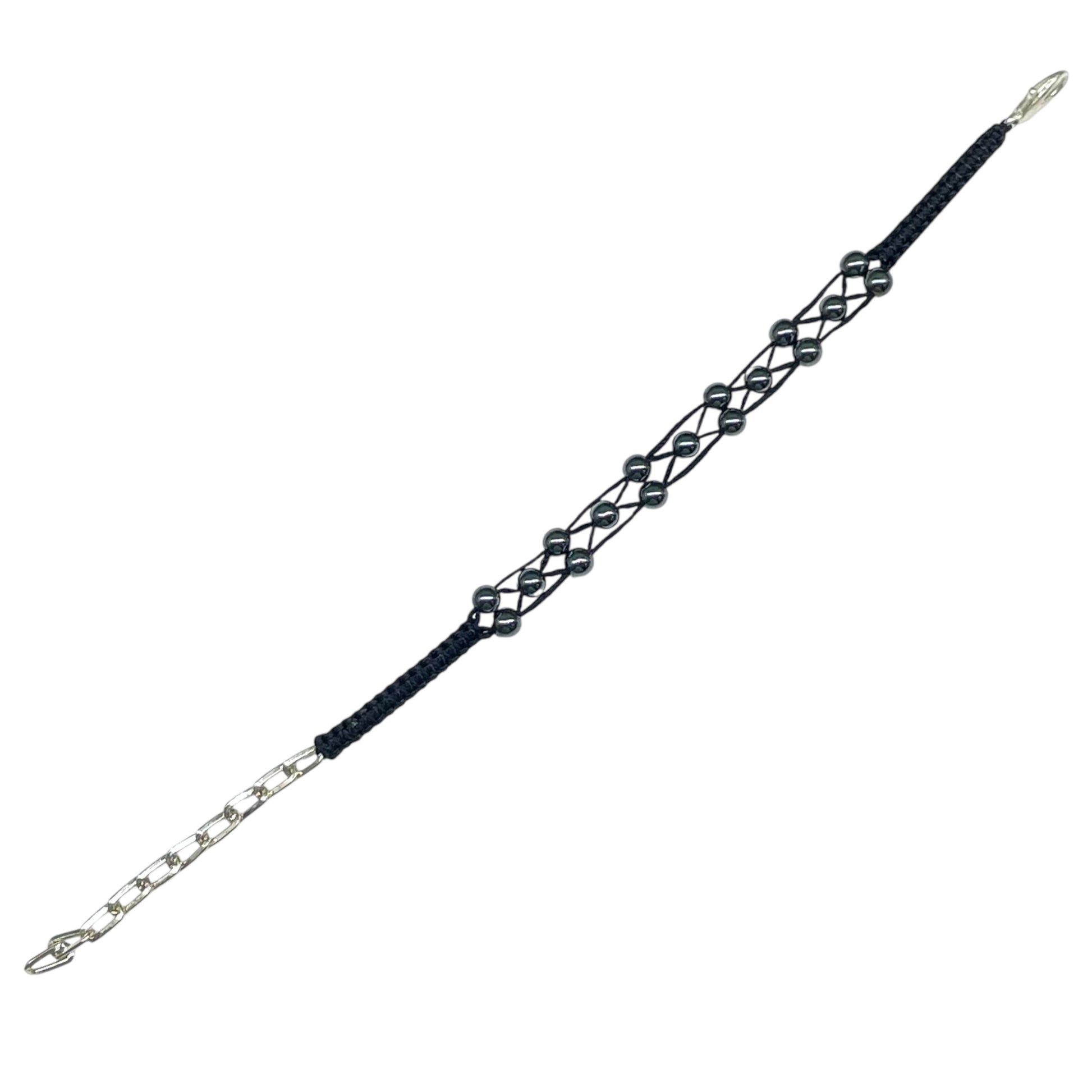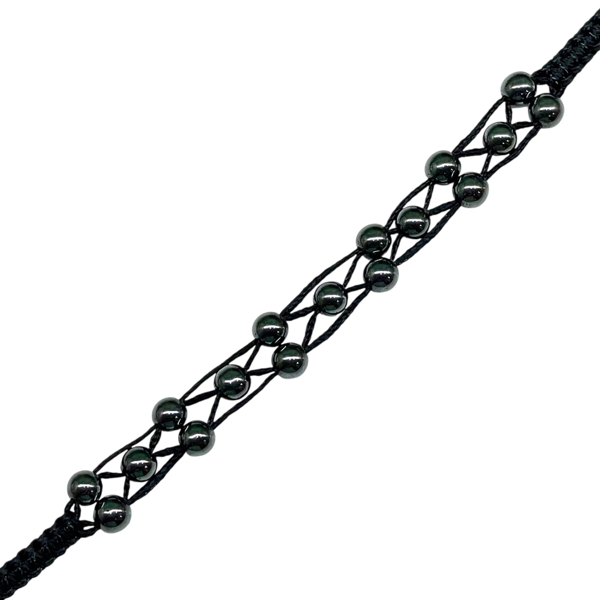 Handmade Hematite Bracelet – 7.5" | 4mm Natural Gemstone Beads in Boho Macrame Style