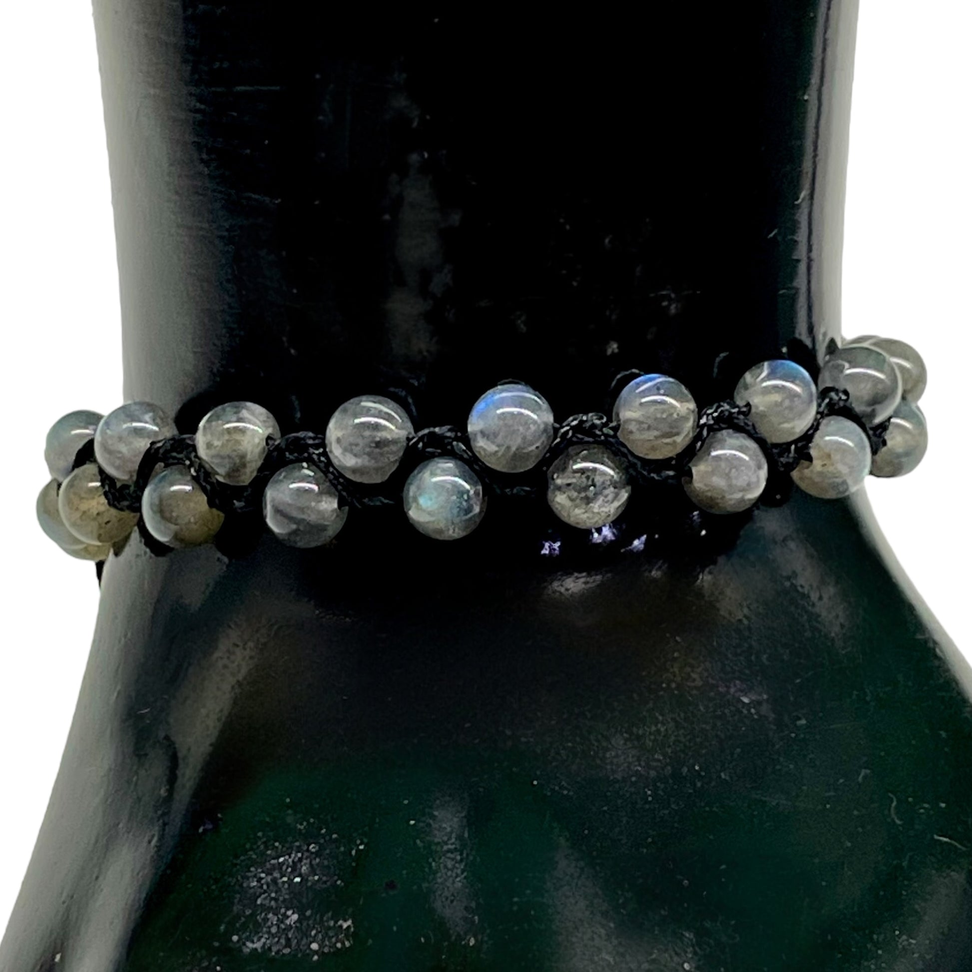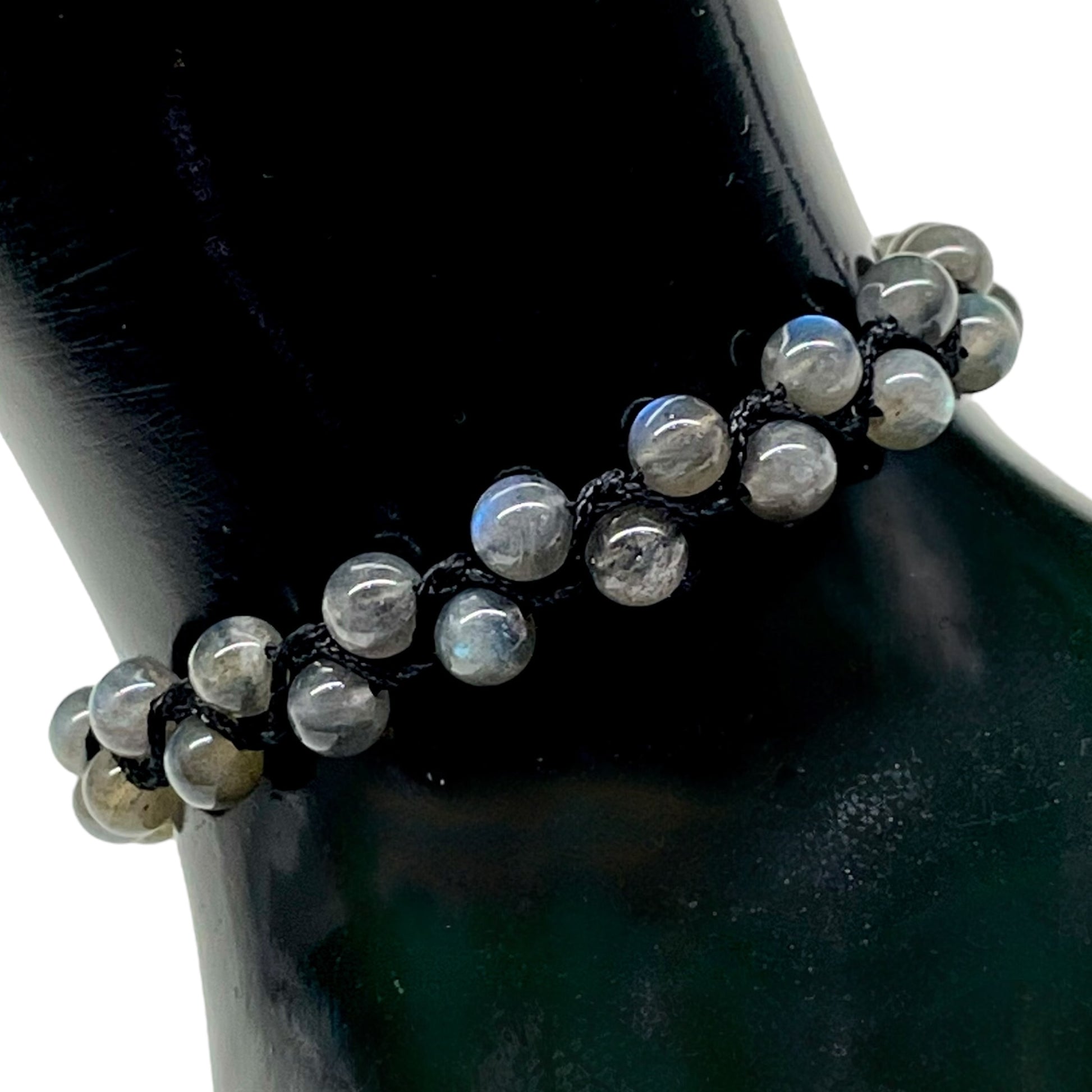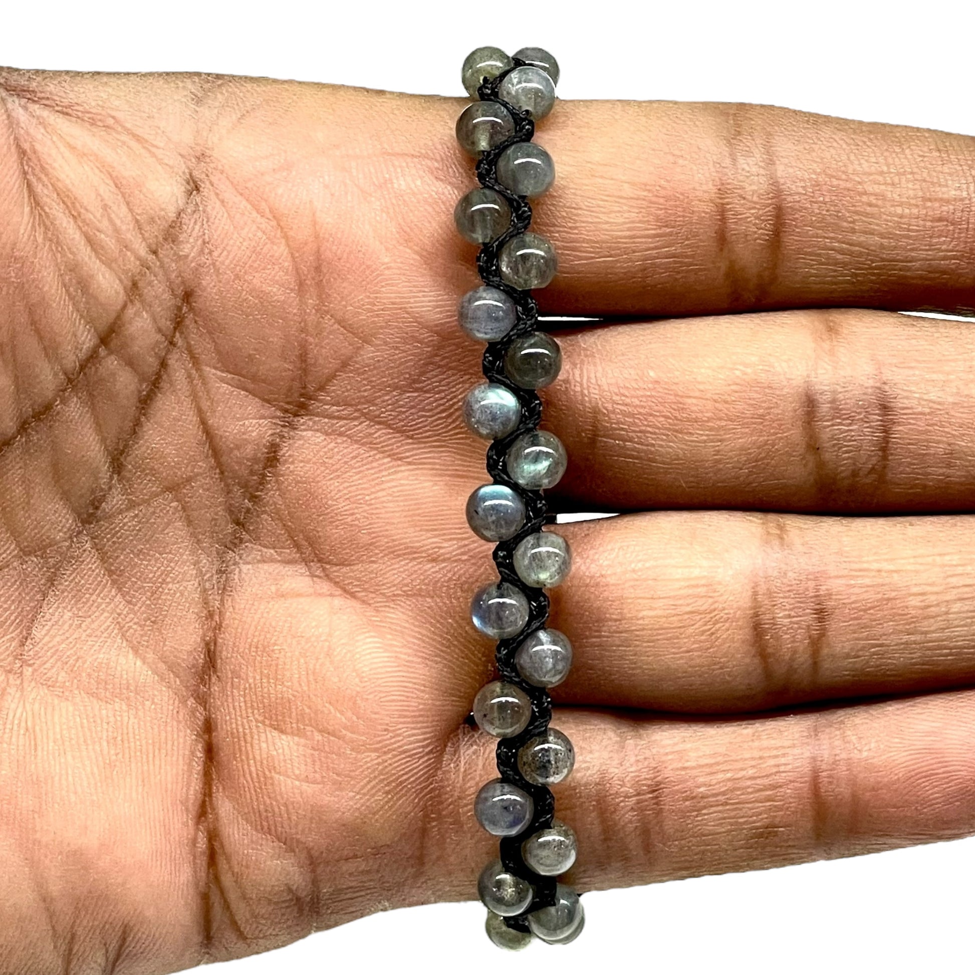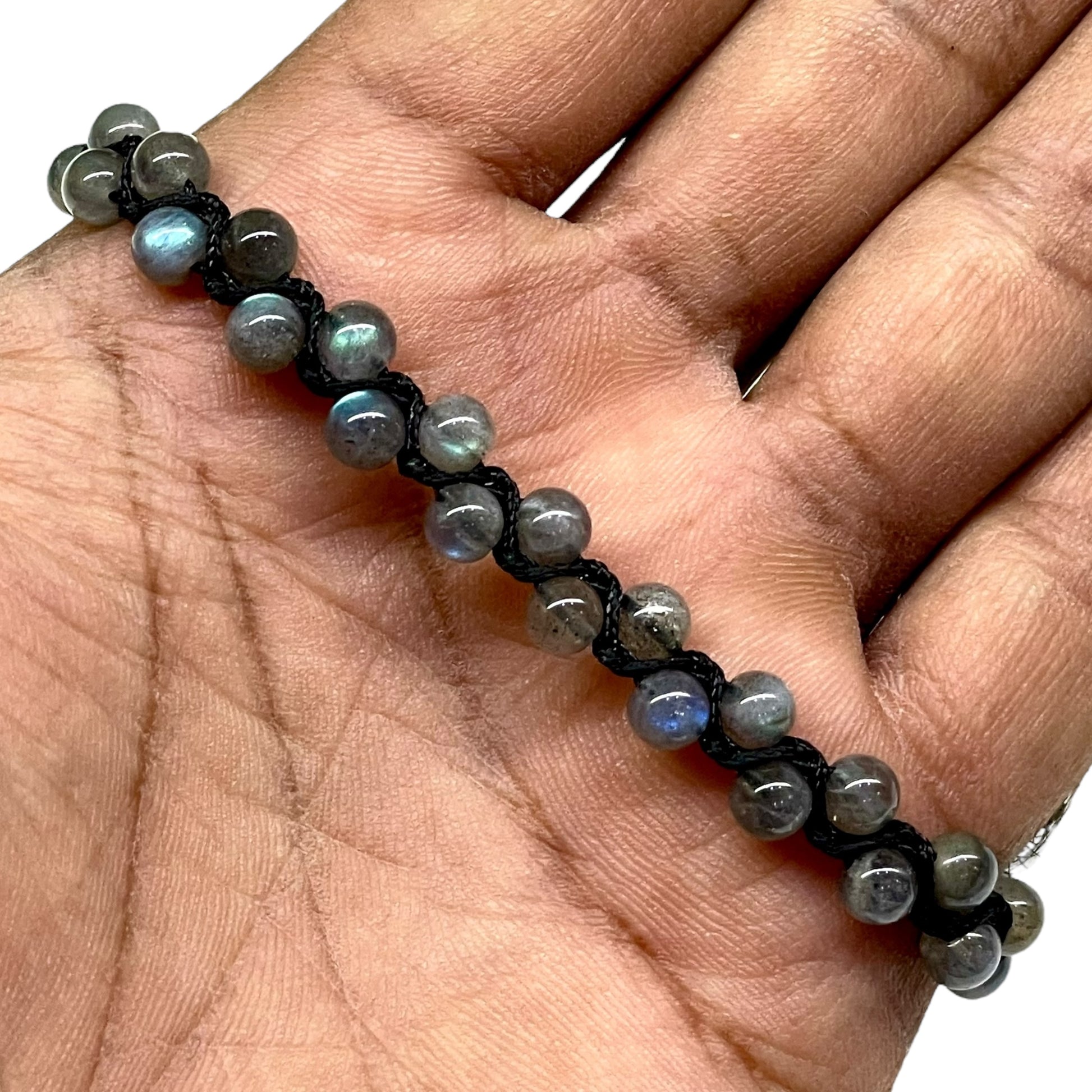 Handmade Labradorite Bracelet – 7.5" | 5mm Natural Gemstone Beads in Adjustable Macrame Design