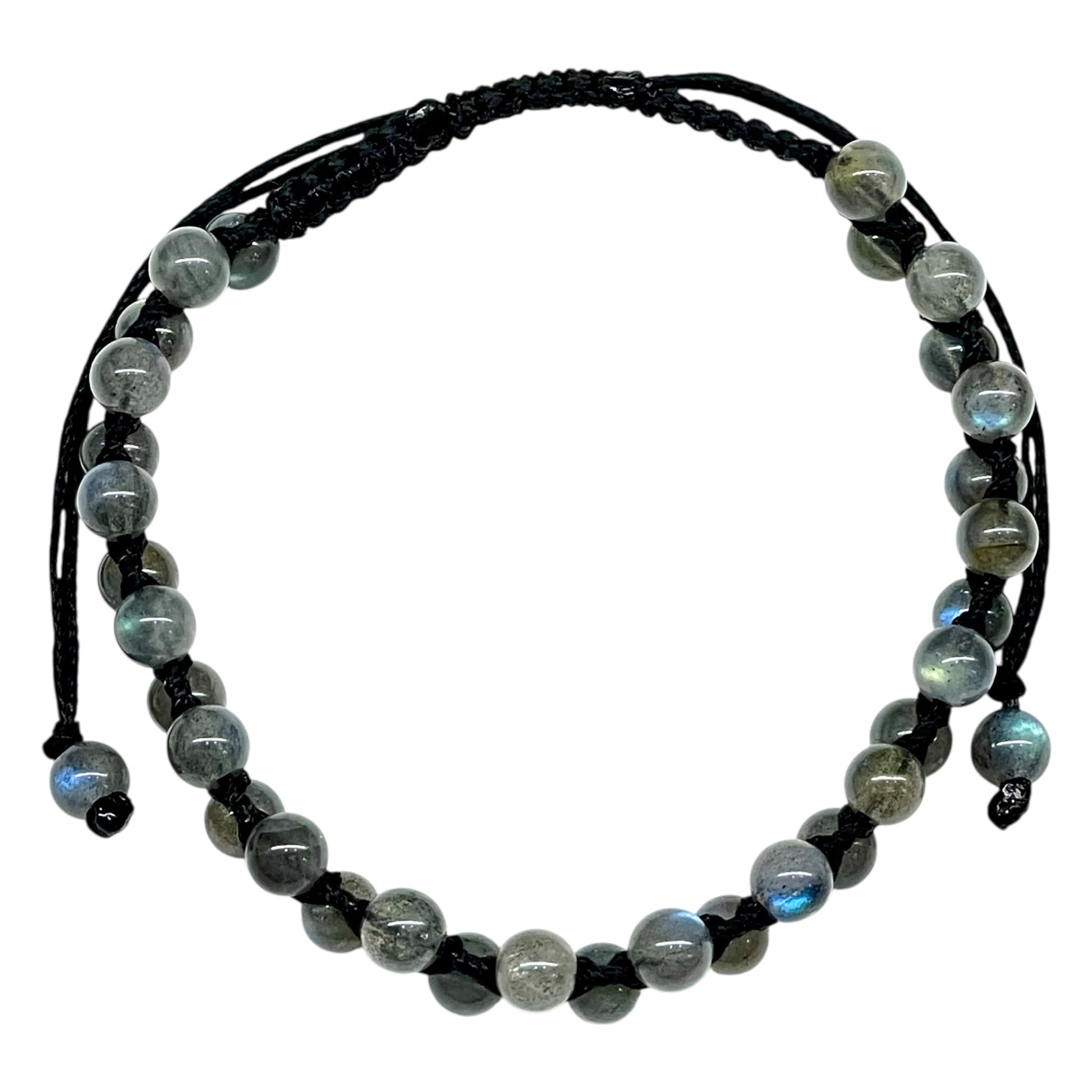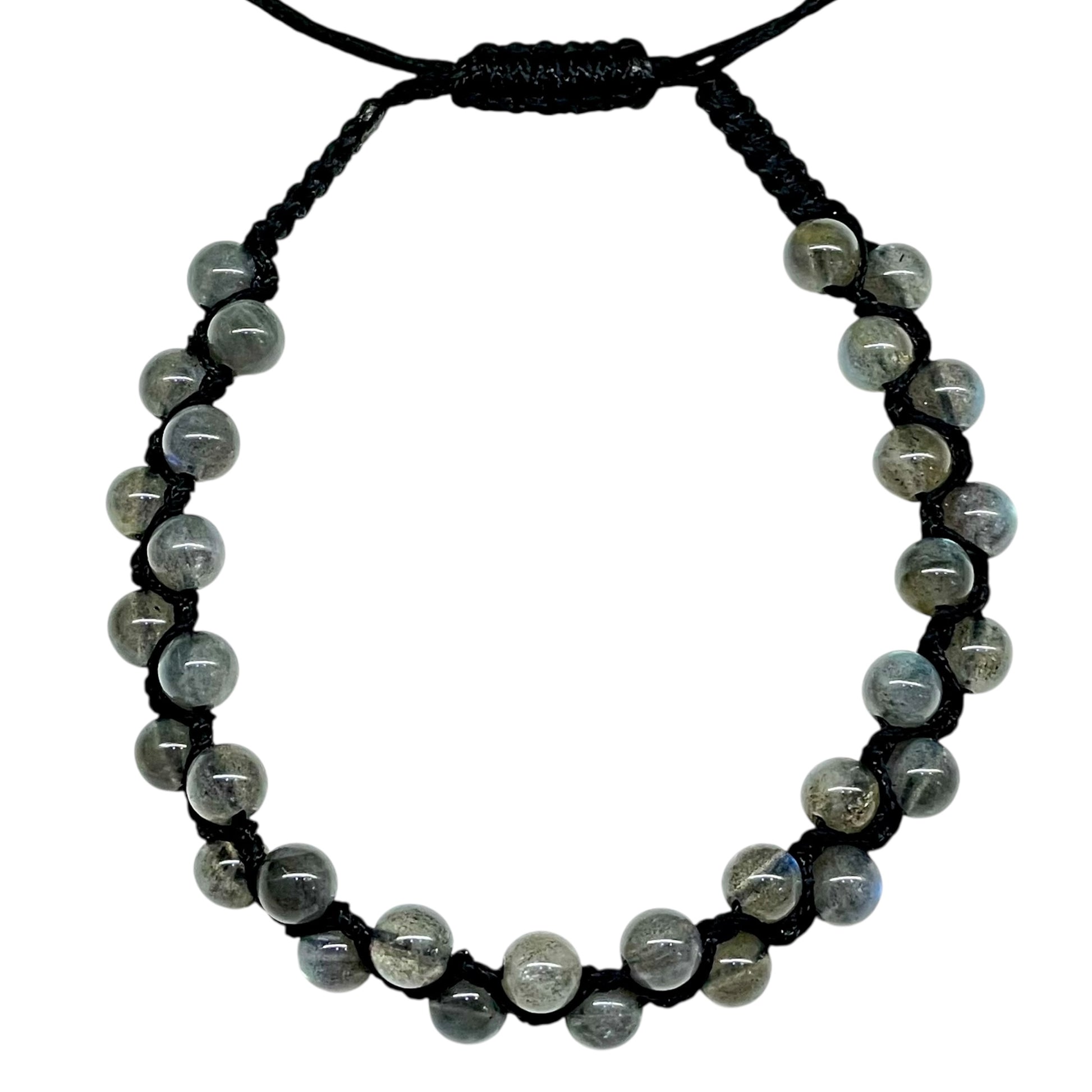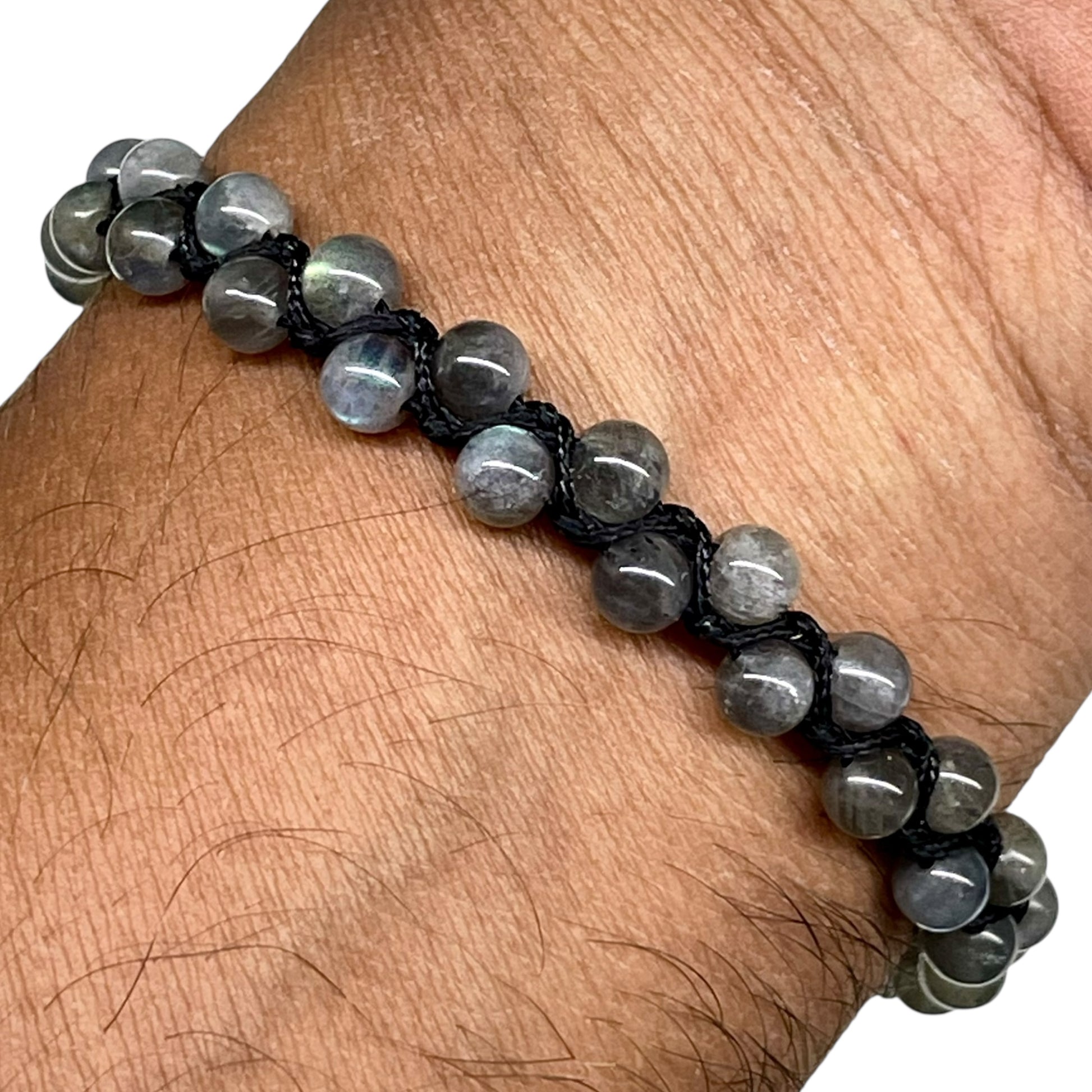 Add mystical charm to your style with this Handmade Labradorite Bracelet, featuring shimmering 5mm natural gemstone beads intricately woven into a macrame adjustable cord design. Labradorite is known as the Stone of Transformation, believed to enhance intuition, protect energy, and inspire spiritual growth.
