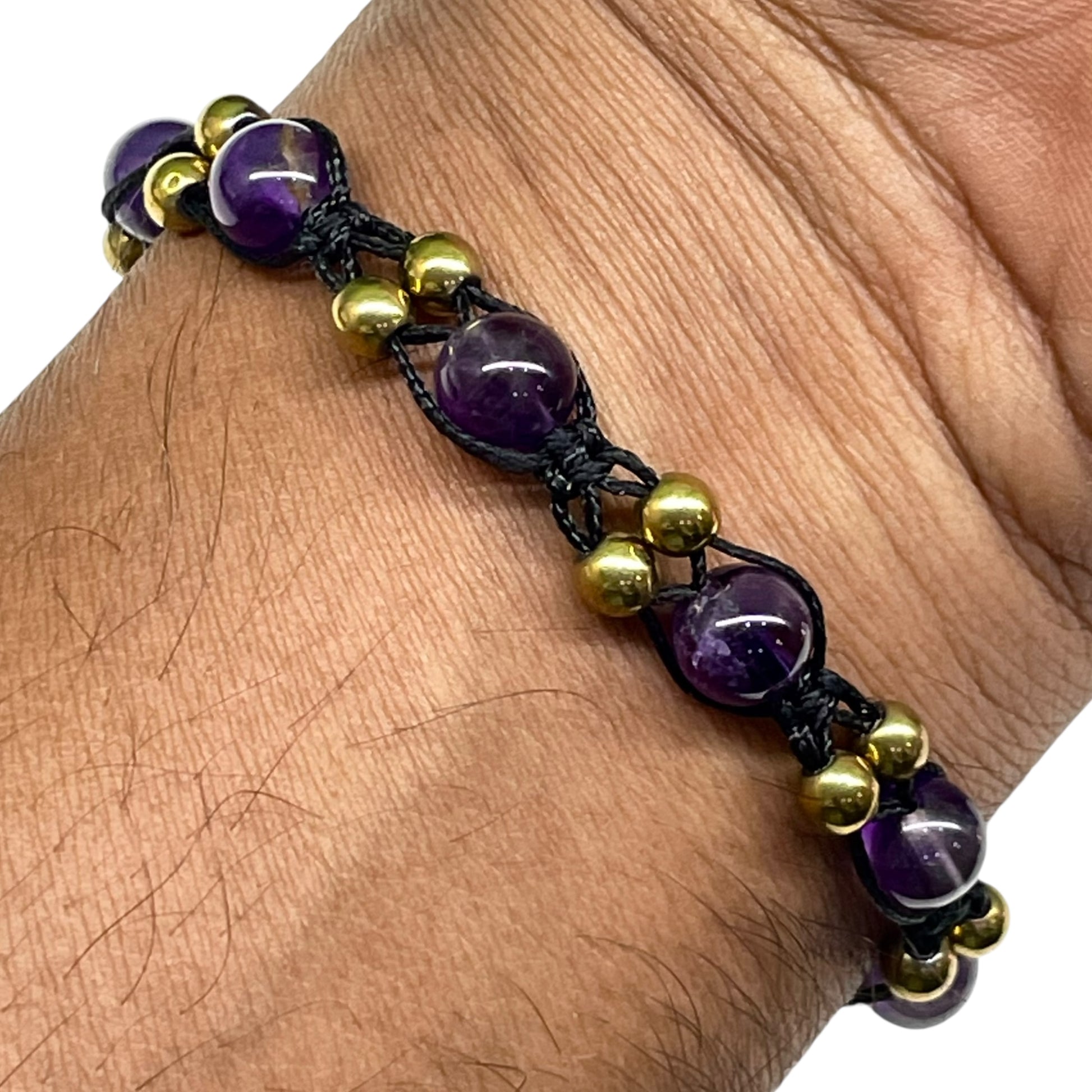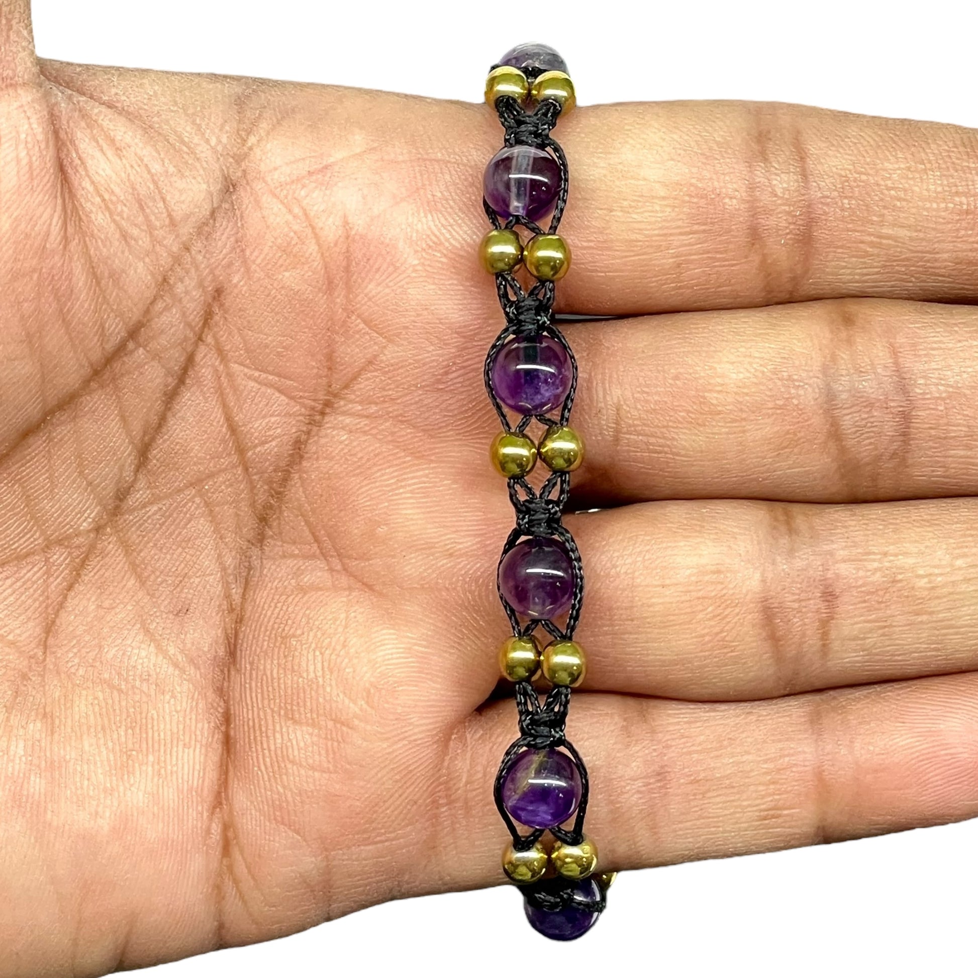 Handmade Amethyst Bracelet – 7.5" | 7mm Natural Gemstone Beads in Macrame Braided Design