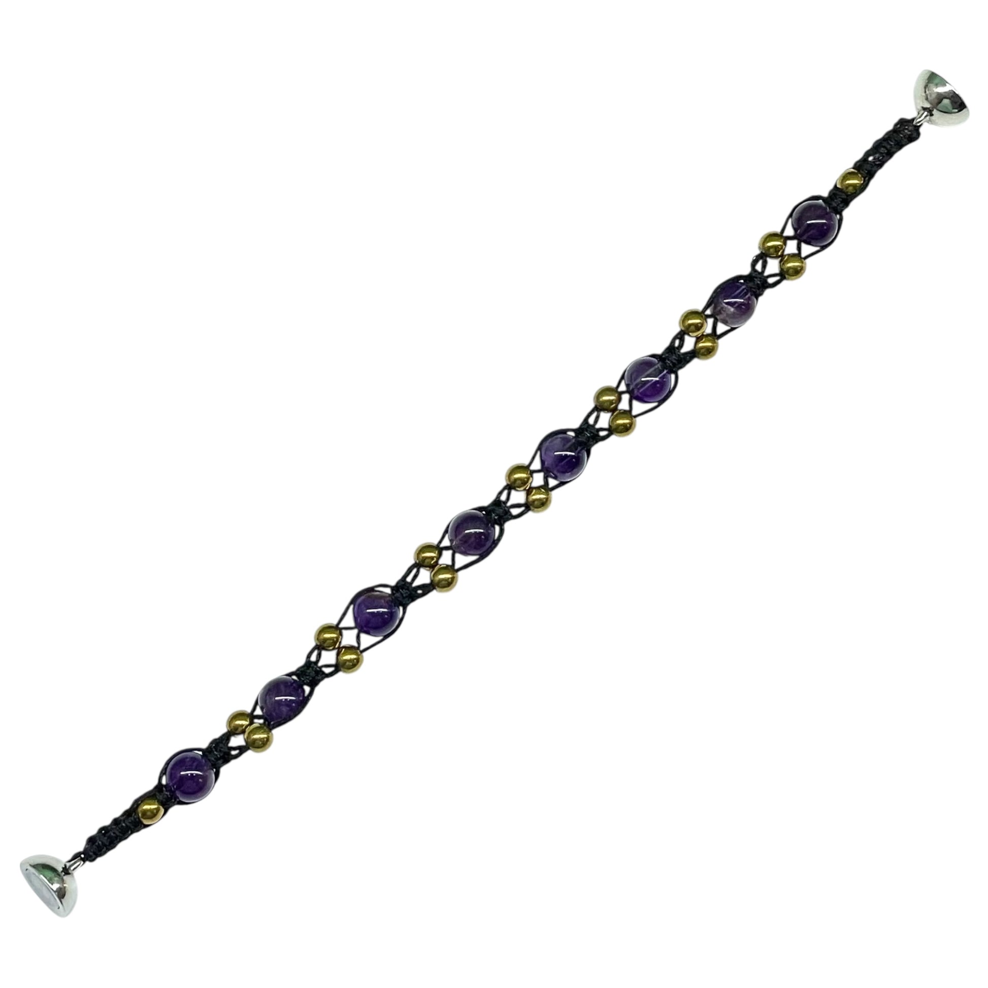 Measuring 7.5 inches, this bracelet combines artisanal craftsmanship with the timeless beauty of deep purple amethyst beads, complemented by contrasting accent beads. Its durable design makes it perfect for everyday wear while adding a unique boho-chic touch to your outfit.