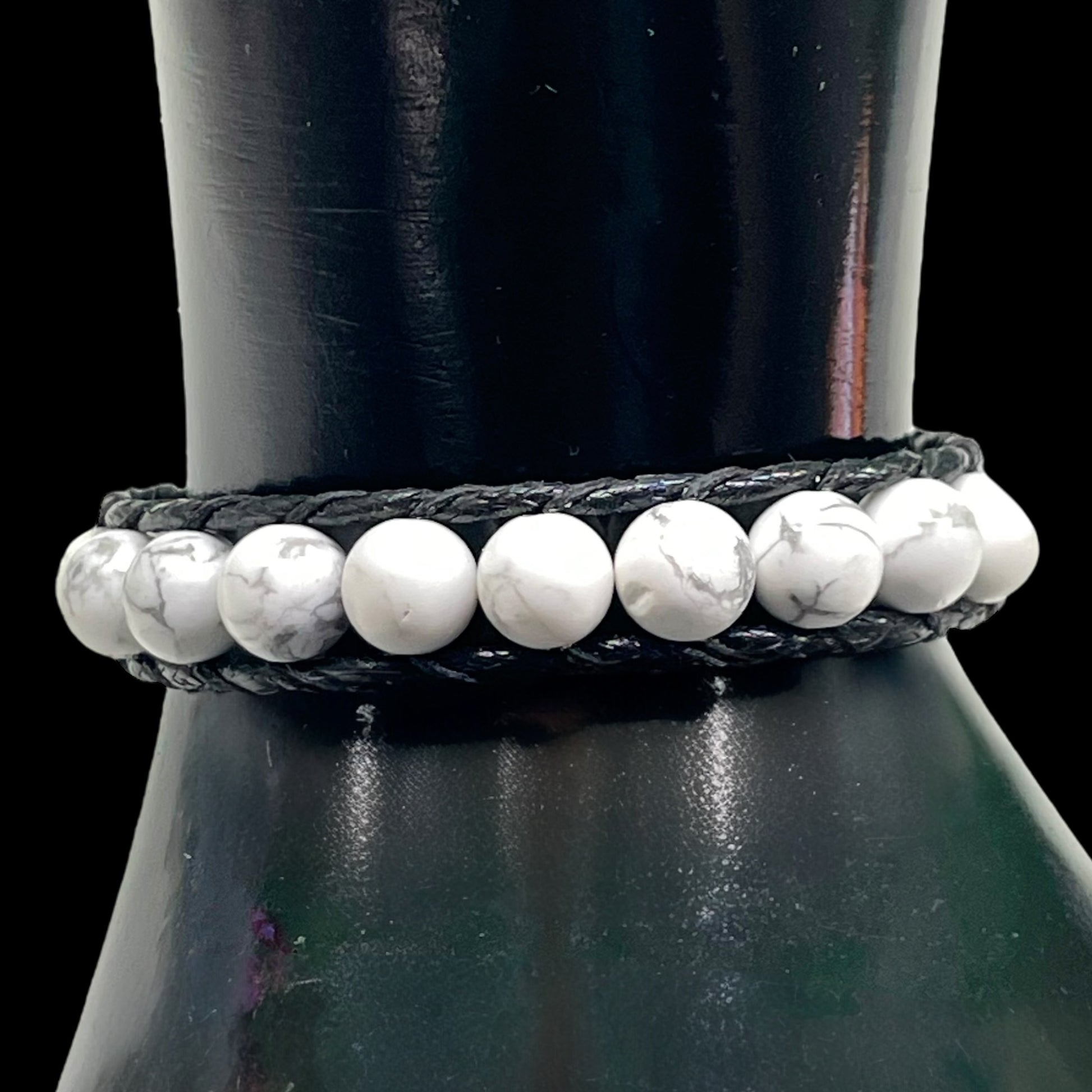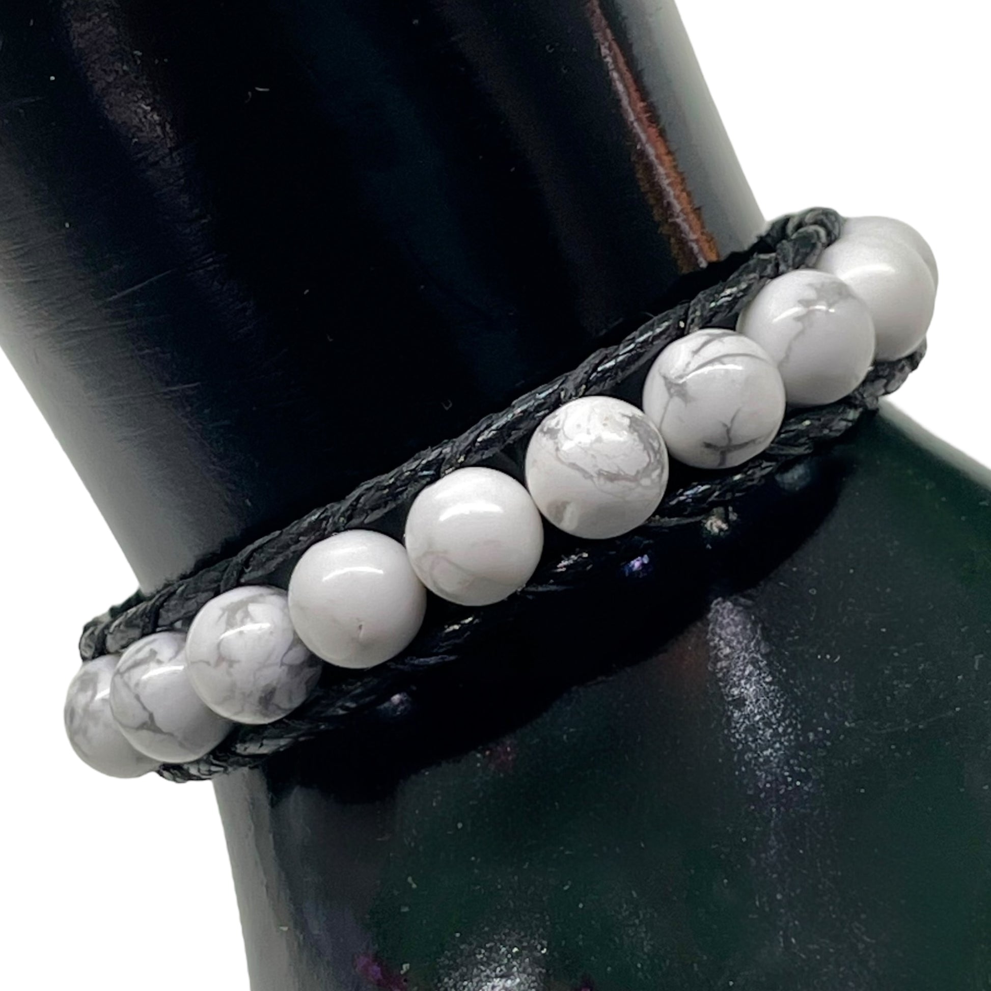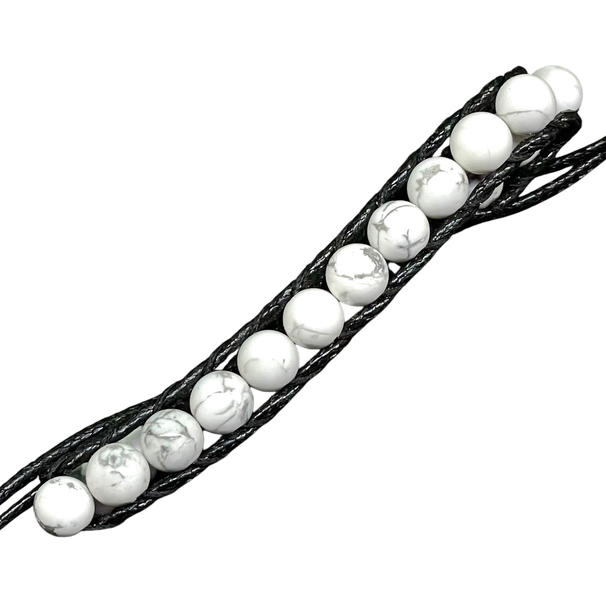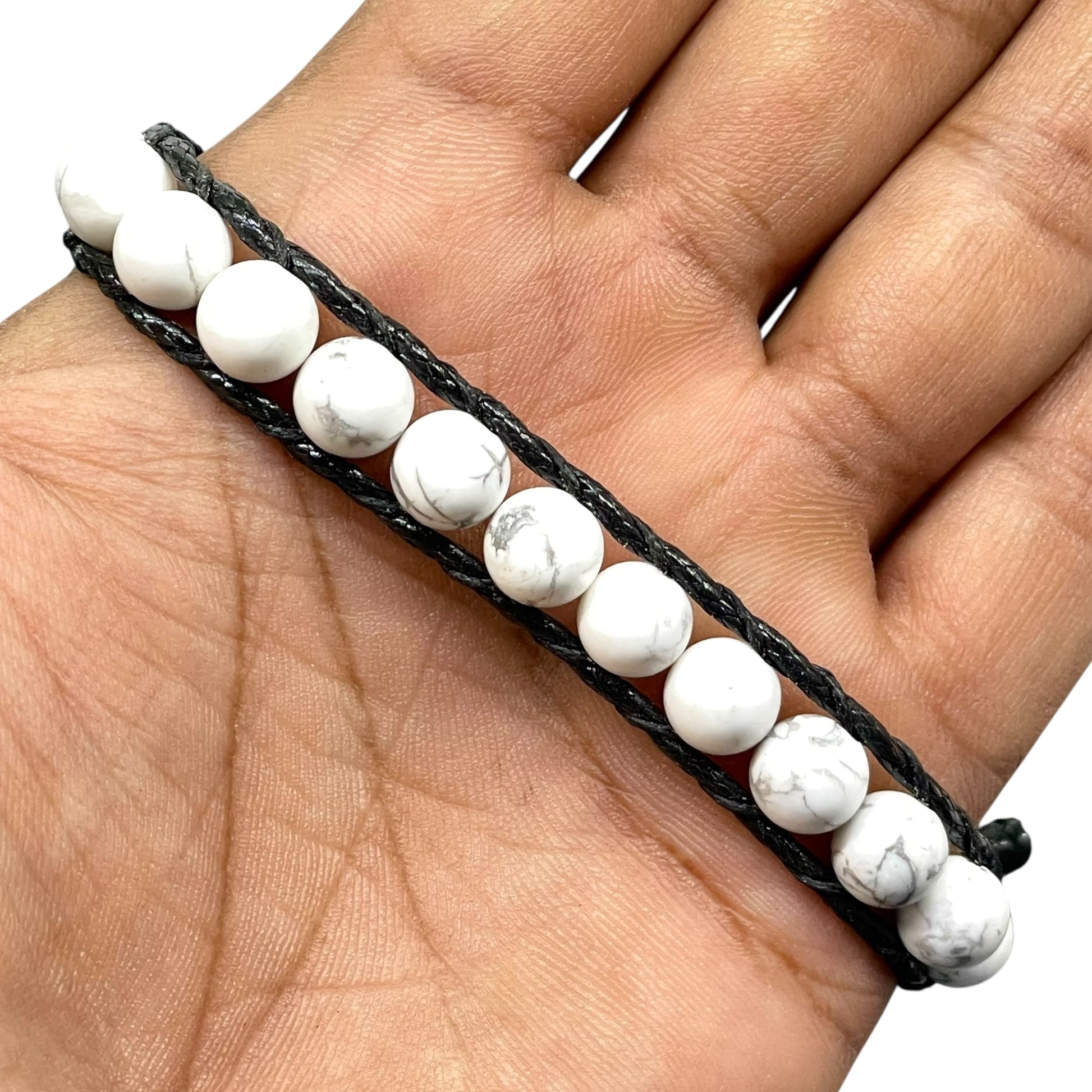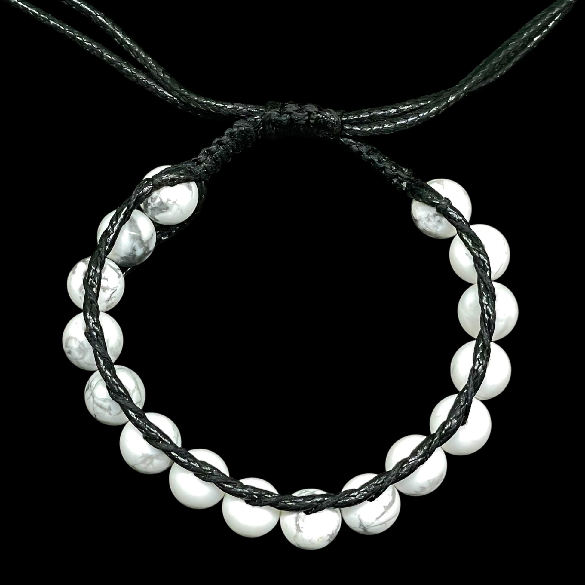 White Howlite is known as a calming stone, believed to reduce stress, encourage patience, and promote emotional balance. The adjustable cord design ensures a secure and comfortable fit, making it perfect for everyday wear by both men and women.
