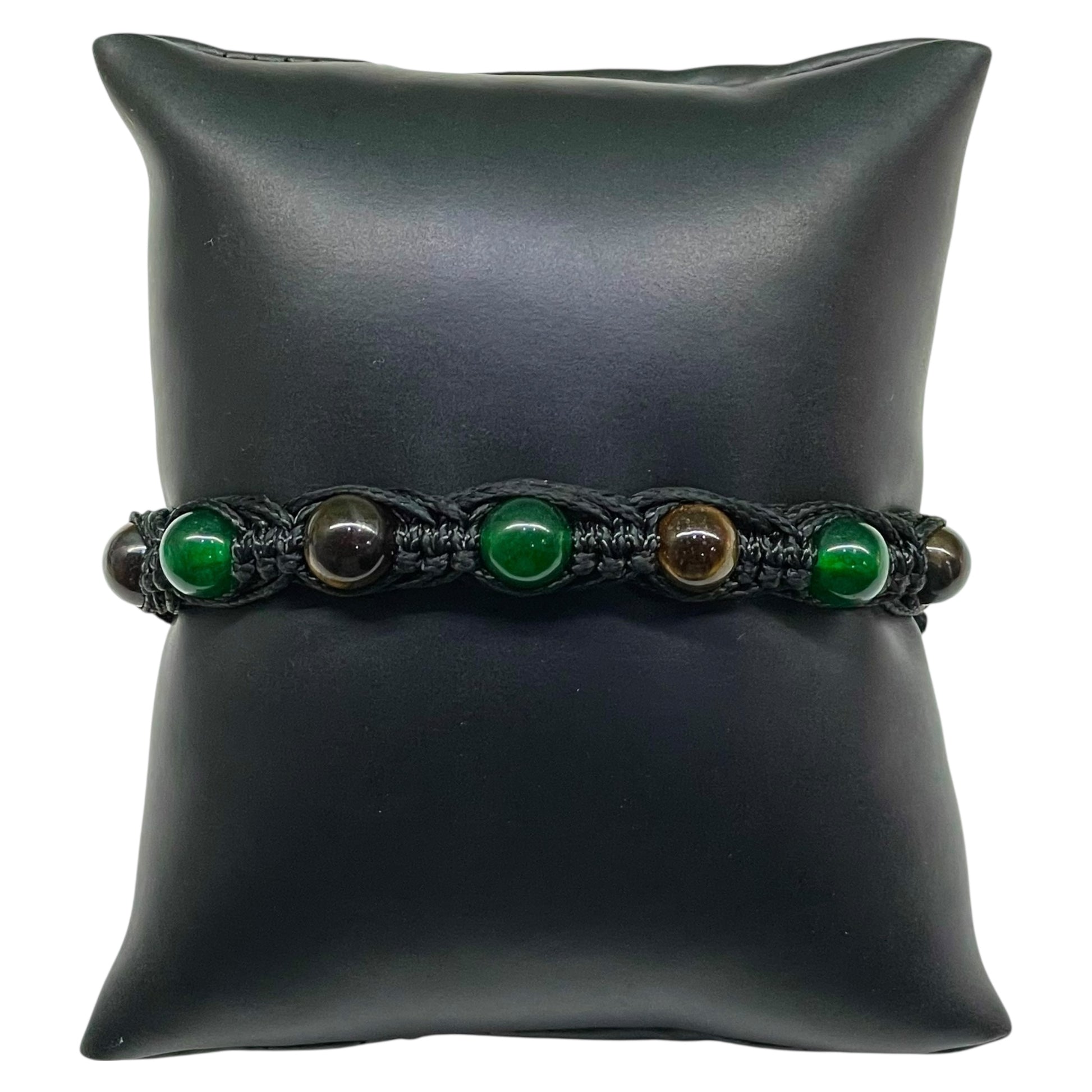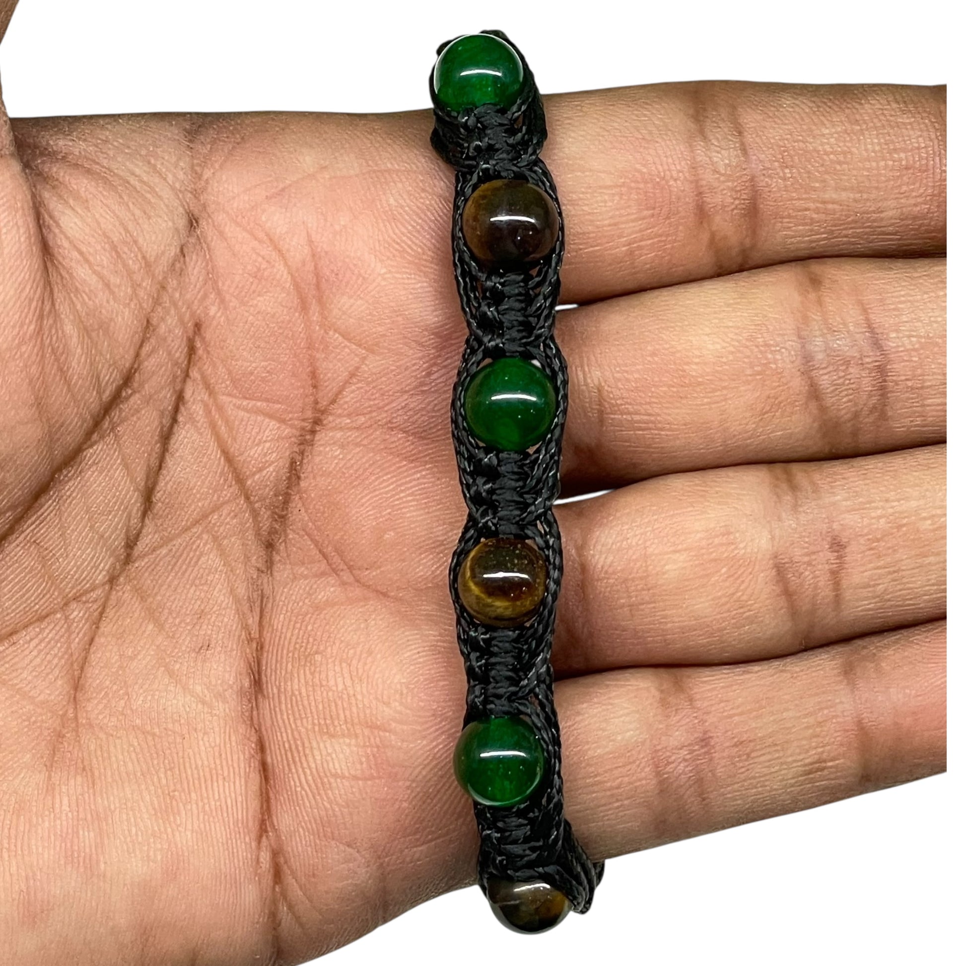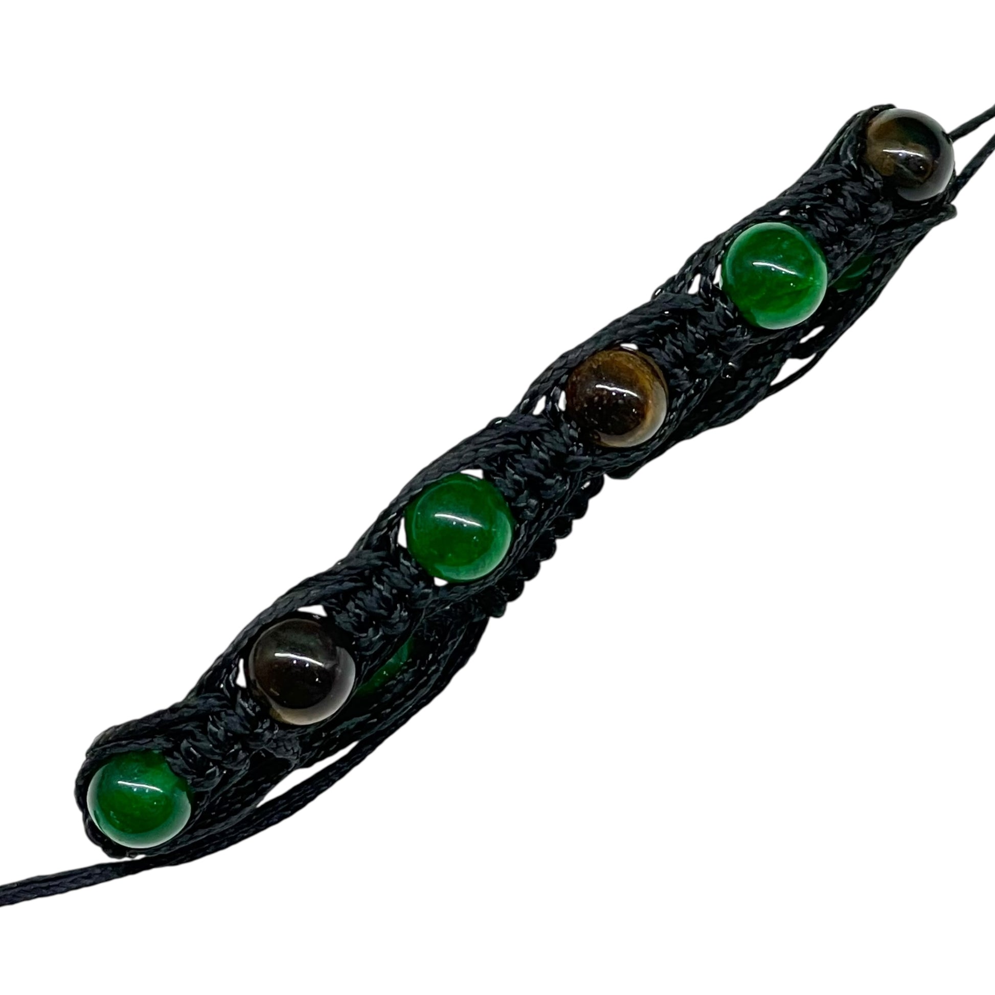 Handmade Onyx & Tiger Eye Bracelet – 8mm Beads | Adjustable Black Braided Cord Unisex Jewelry