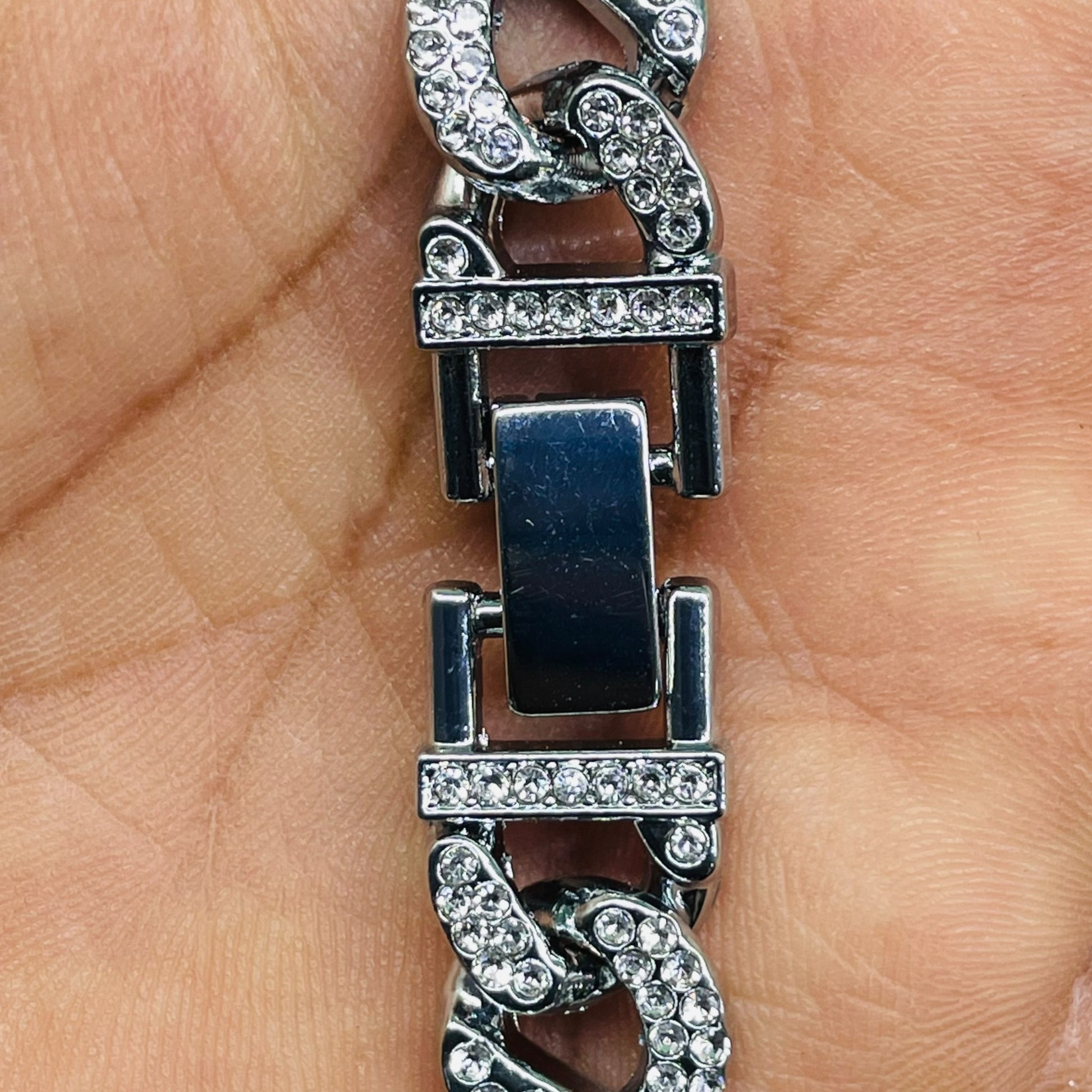 Iced Out Twisted Cuban Link Bracelet – Silver Bling Edition