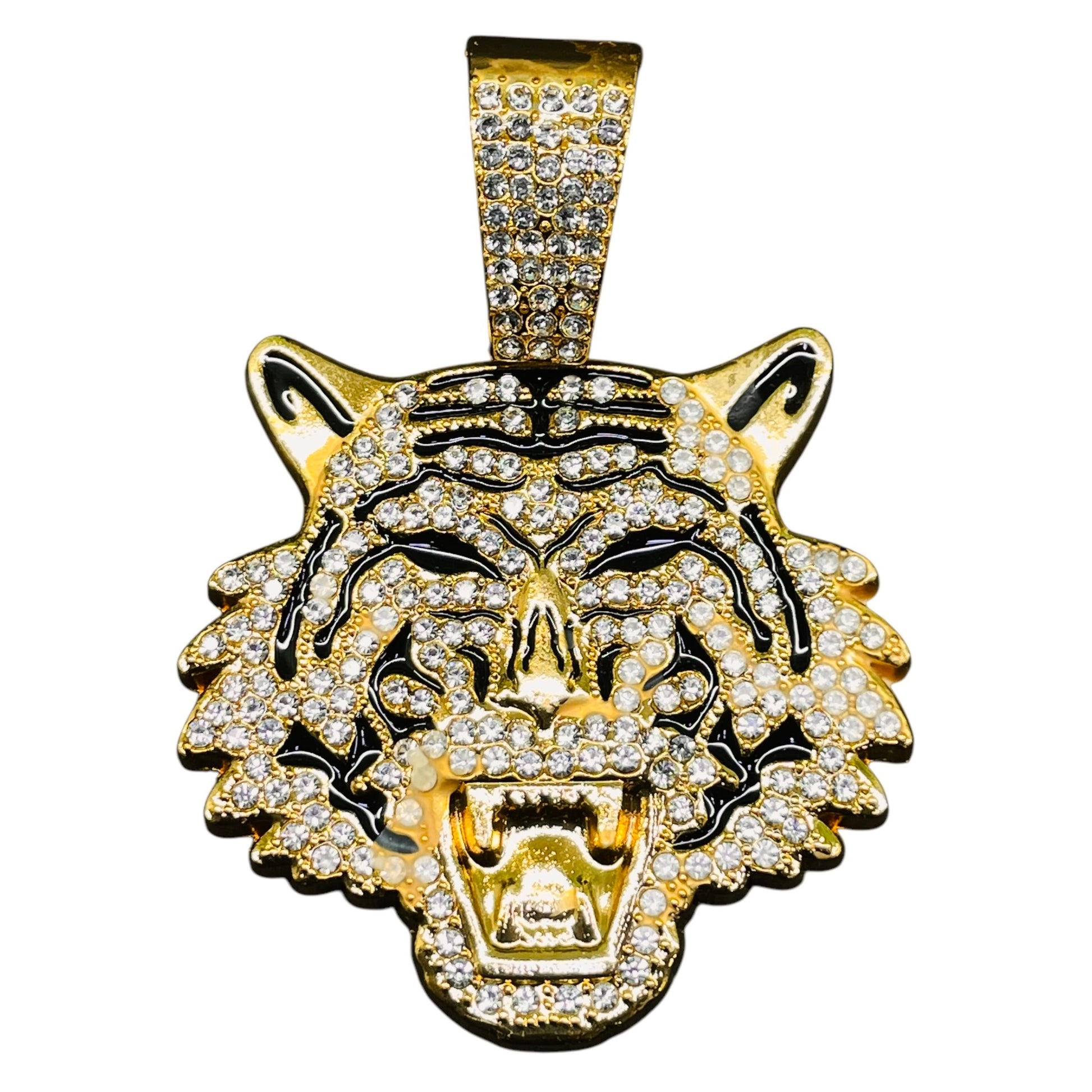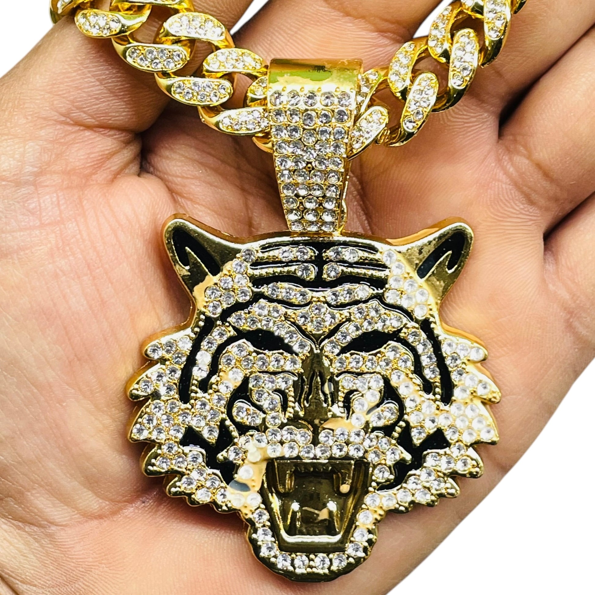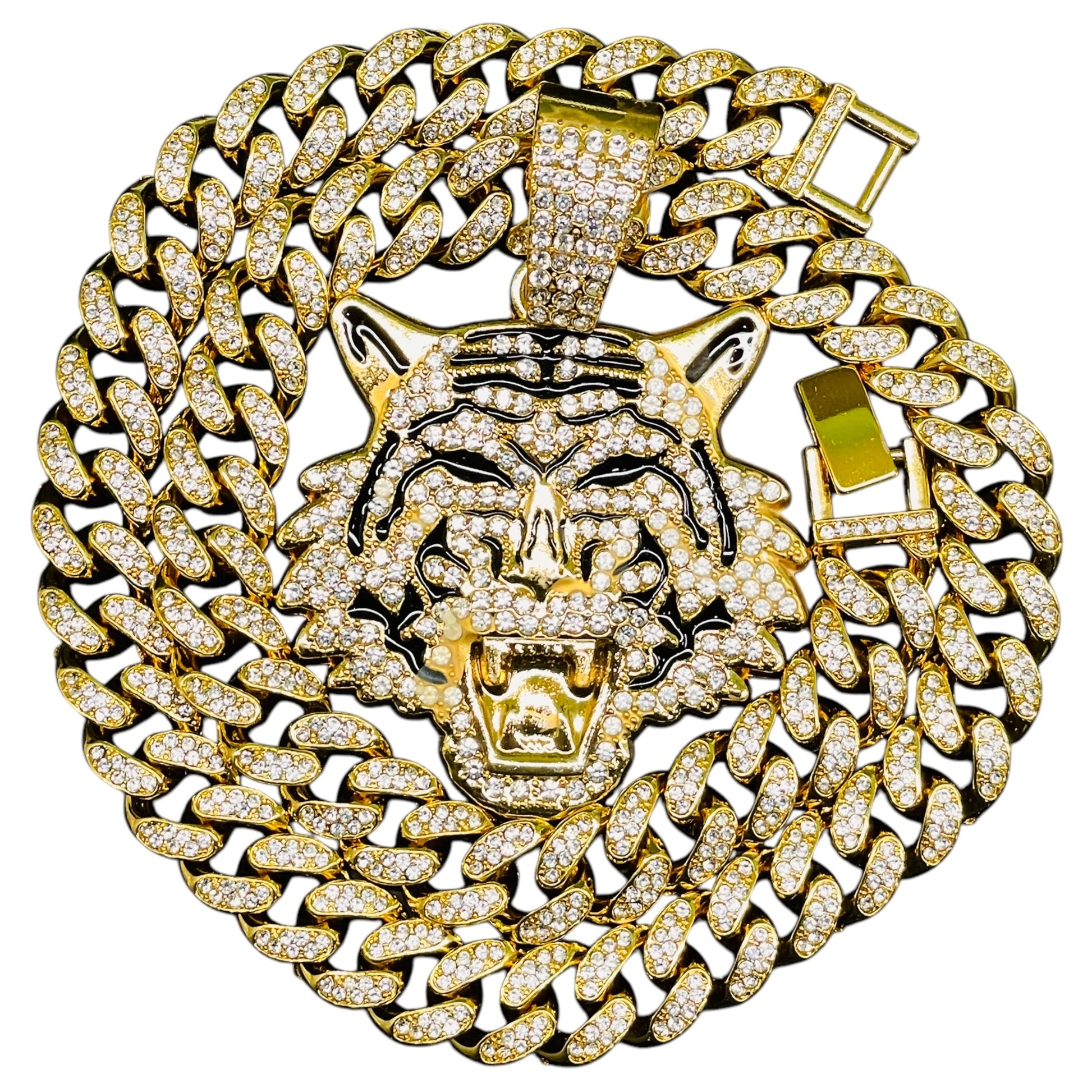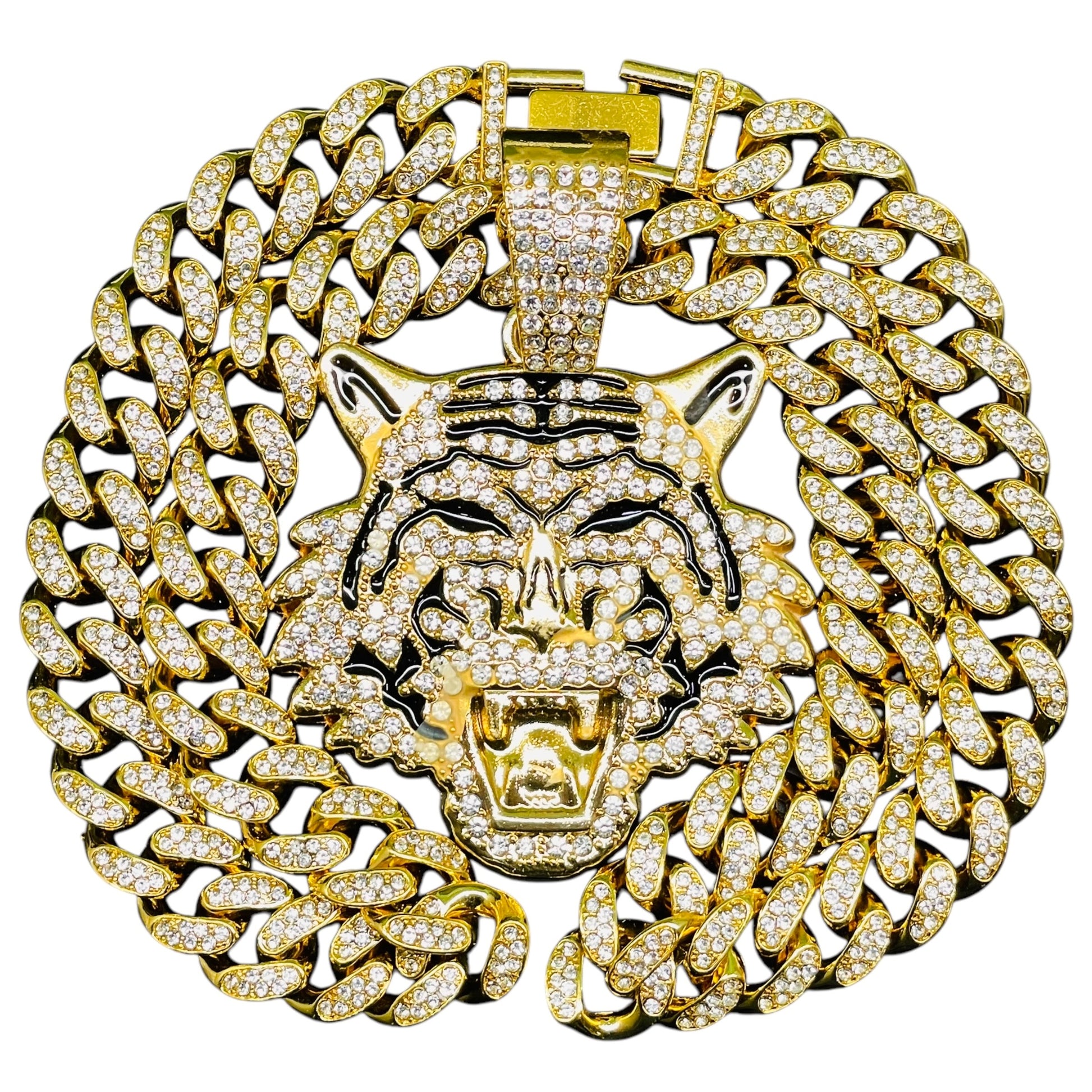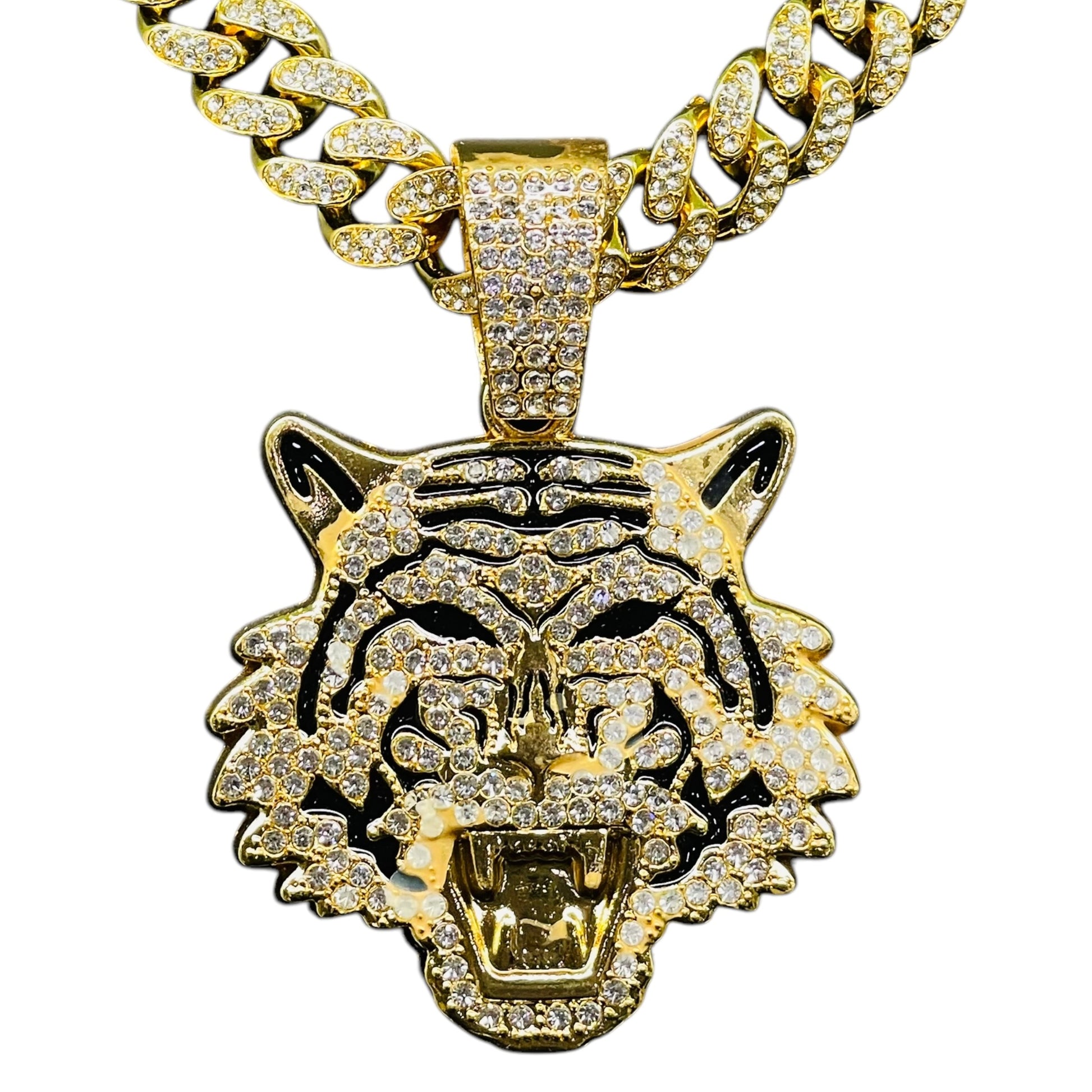 Iced Out Gold Tiger Pendant Necklace – Bold Cuban Link Chain