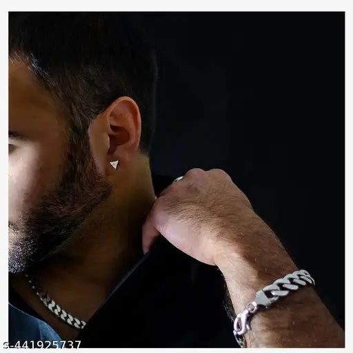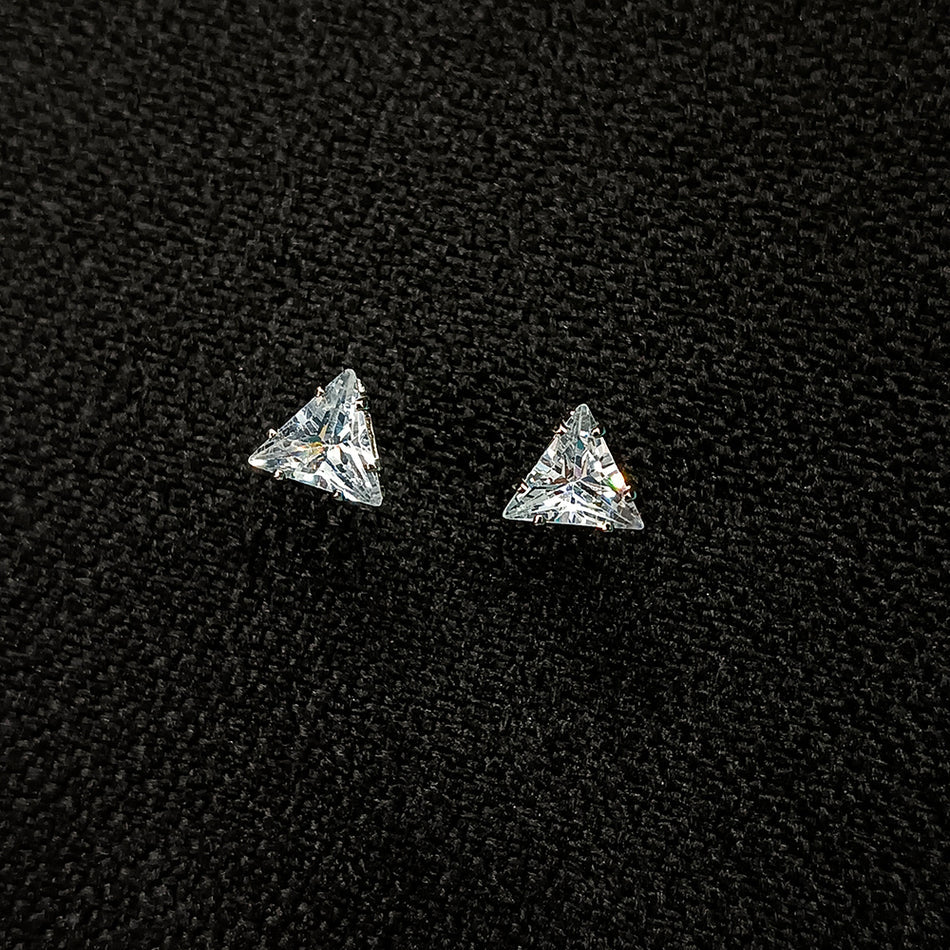 Add a bold touch of brilliance to your collection with this exquisite trillion-cut stud earring. Crafted with a dazzling high-grade cubic zirconia stone in a rare triangular cut, this piece is securely set in polished sterling silver. Its sharp lines and exceptional sparkle create a statement look, perfect for both everyday glam and special occasions. Hypoallergenic and durable, this earring is where modern geometry meets timeless elegance.