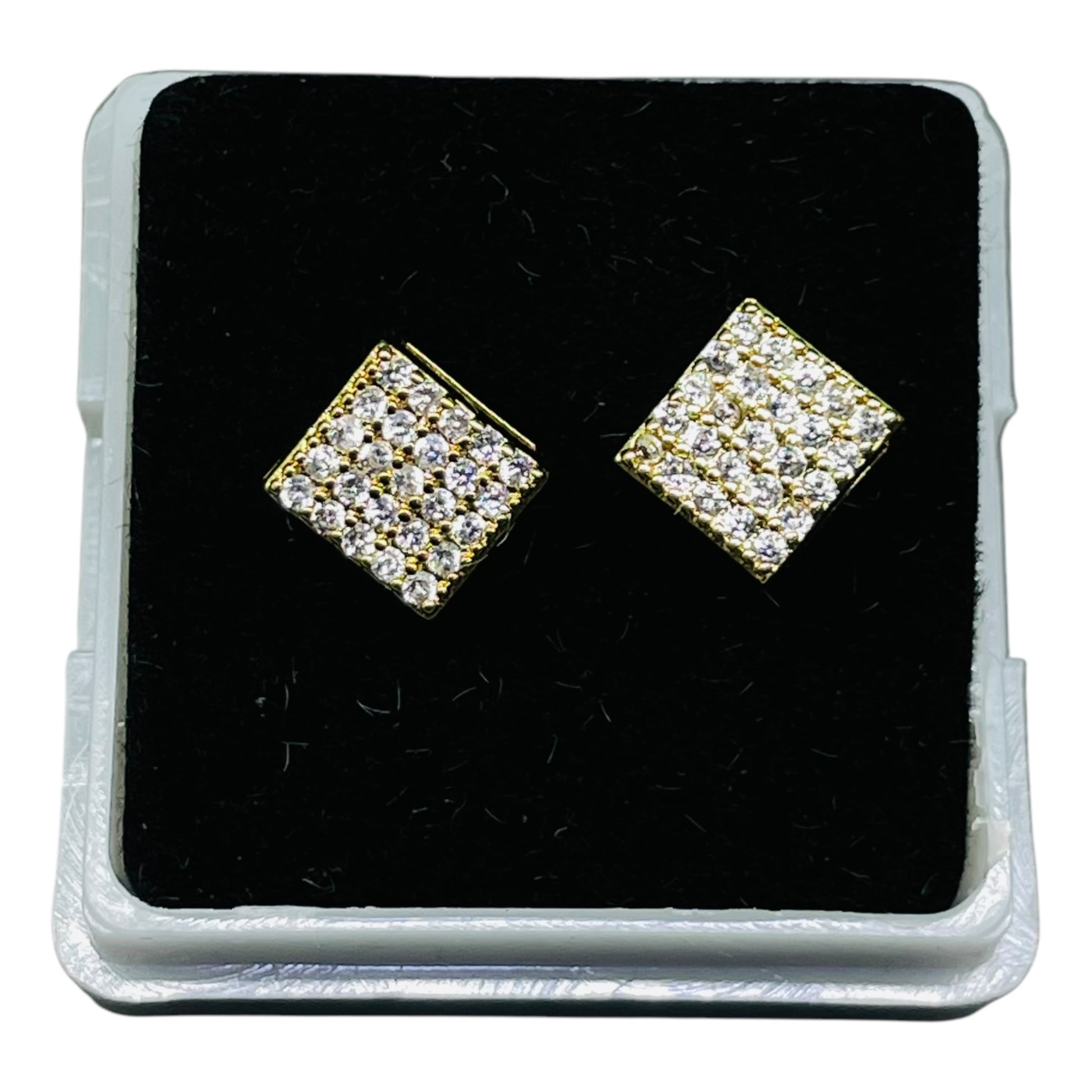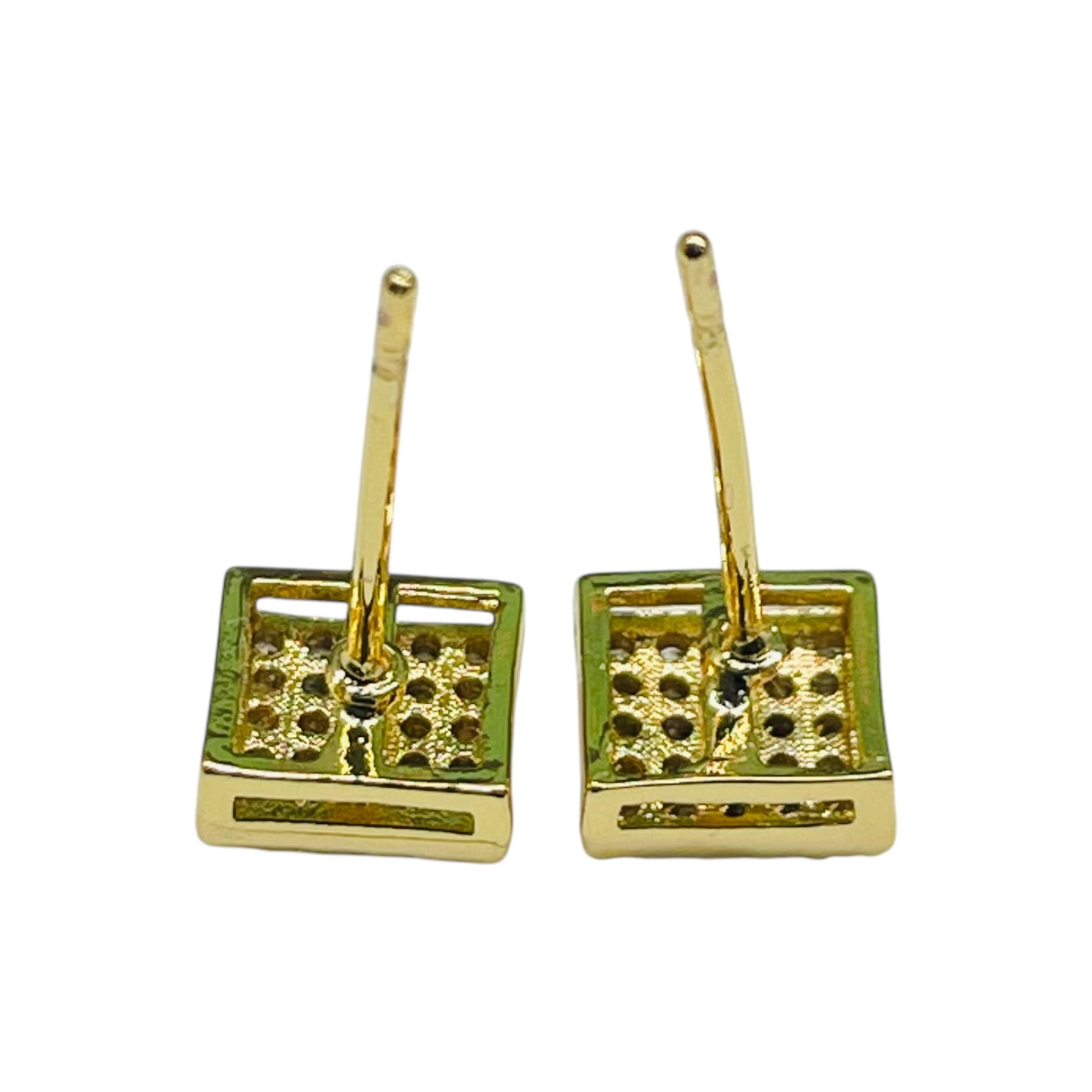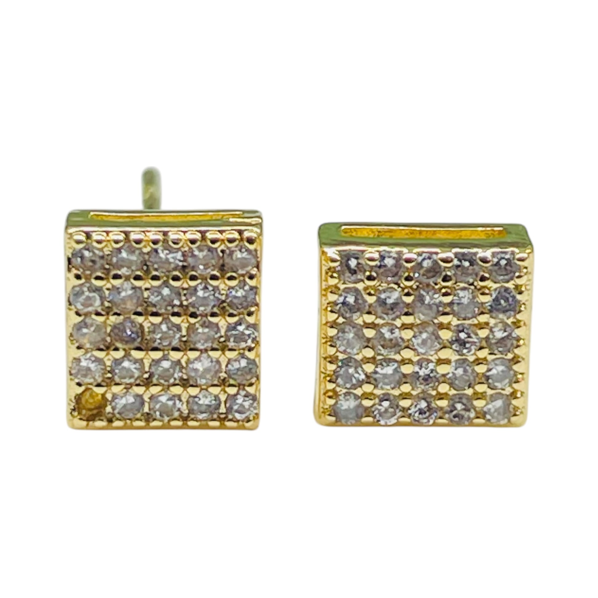 Elegant Gold-Tone Square Diamond Stud Earrings