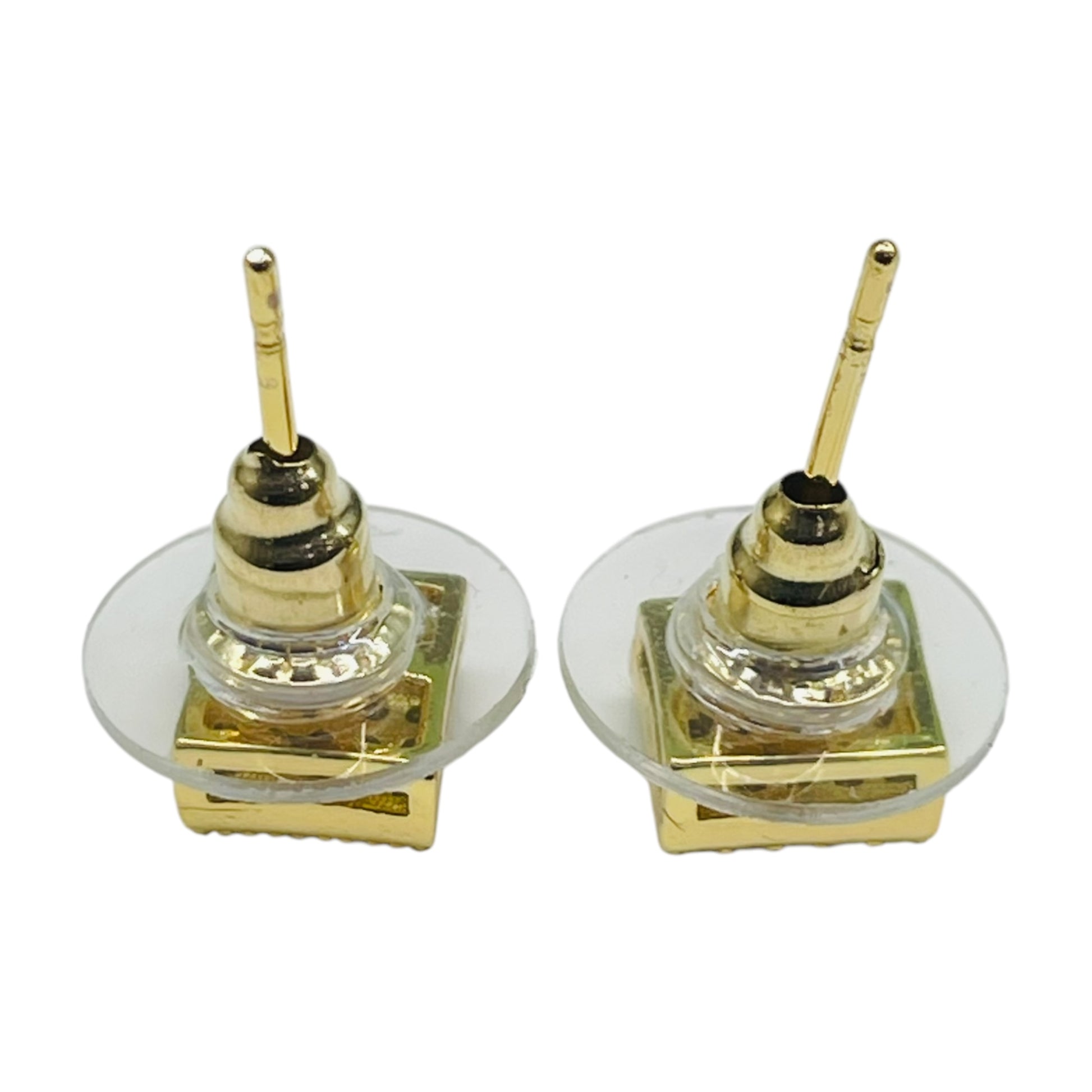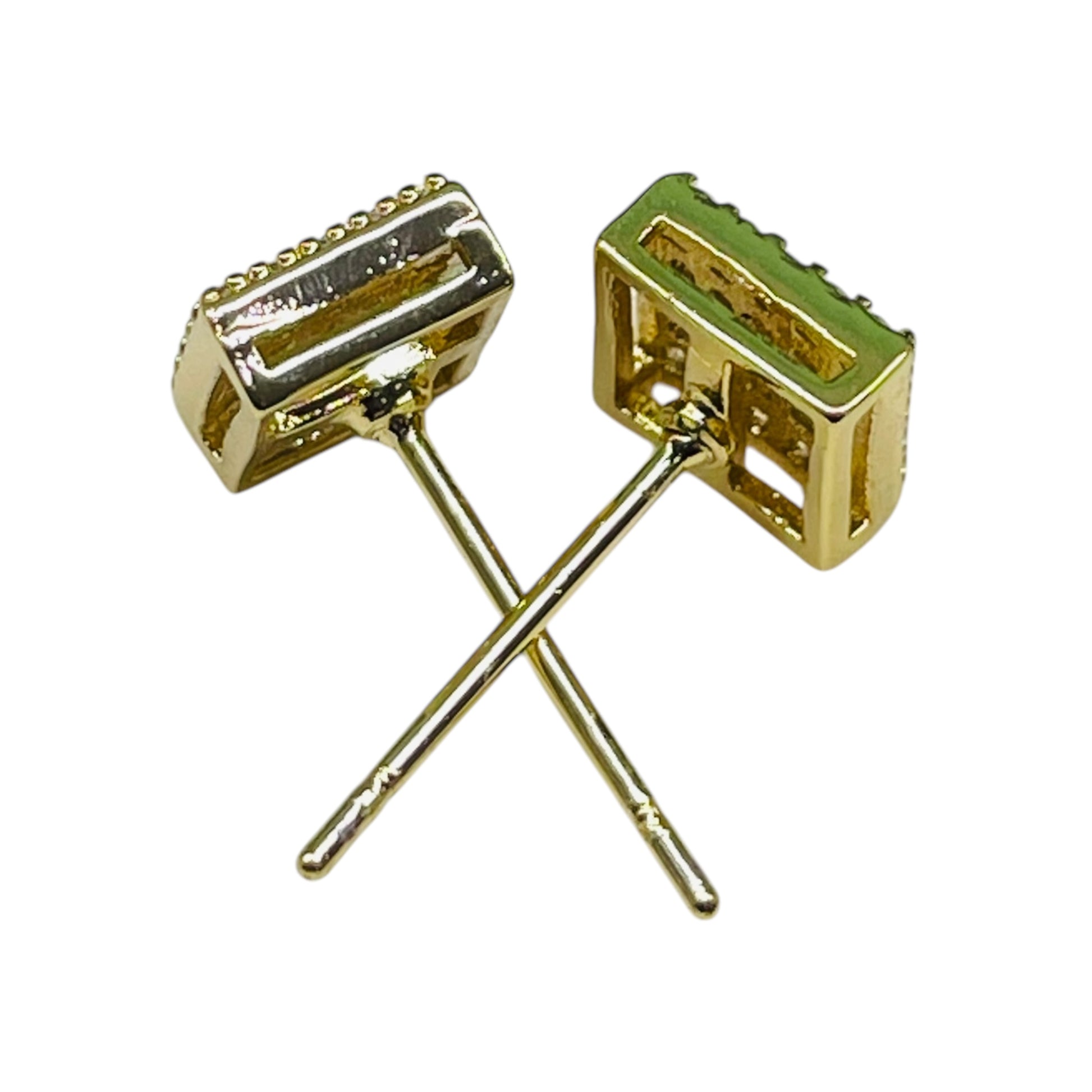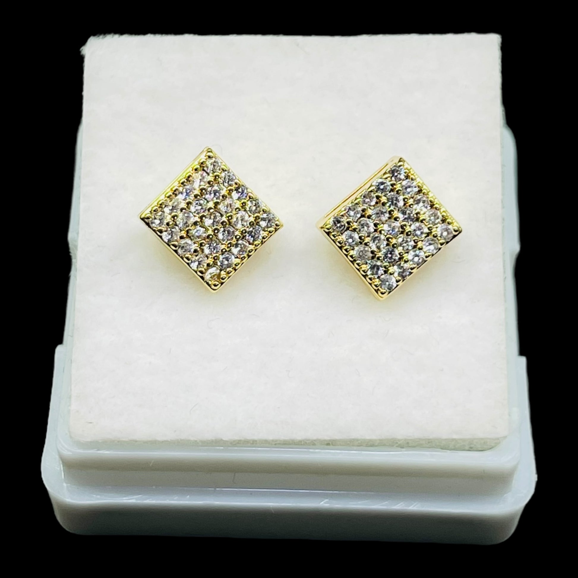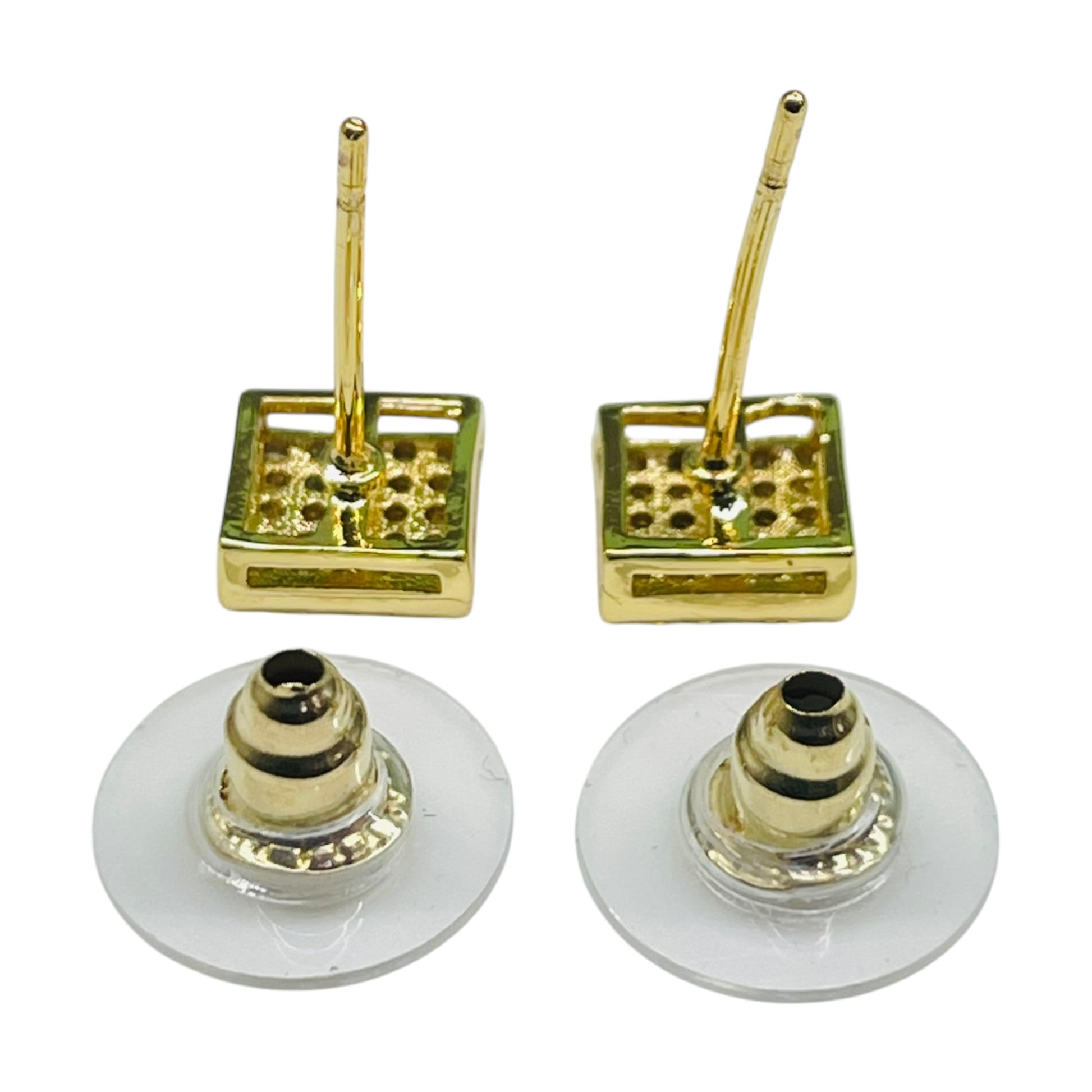 Elegant Gold-Tone Square Diamond Stud Earrings
