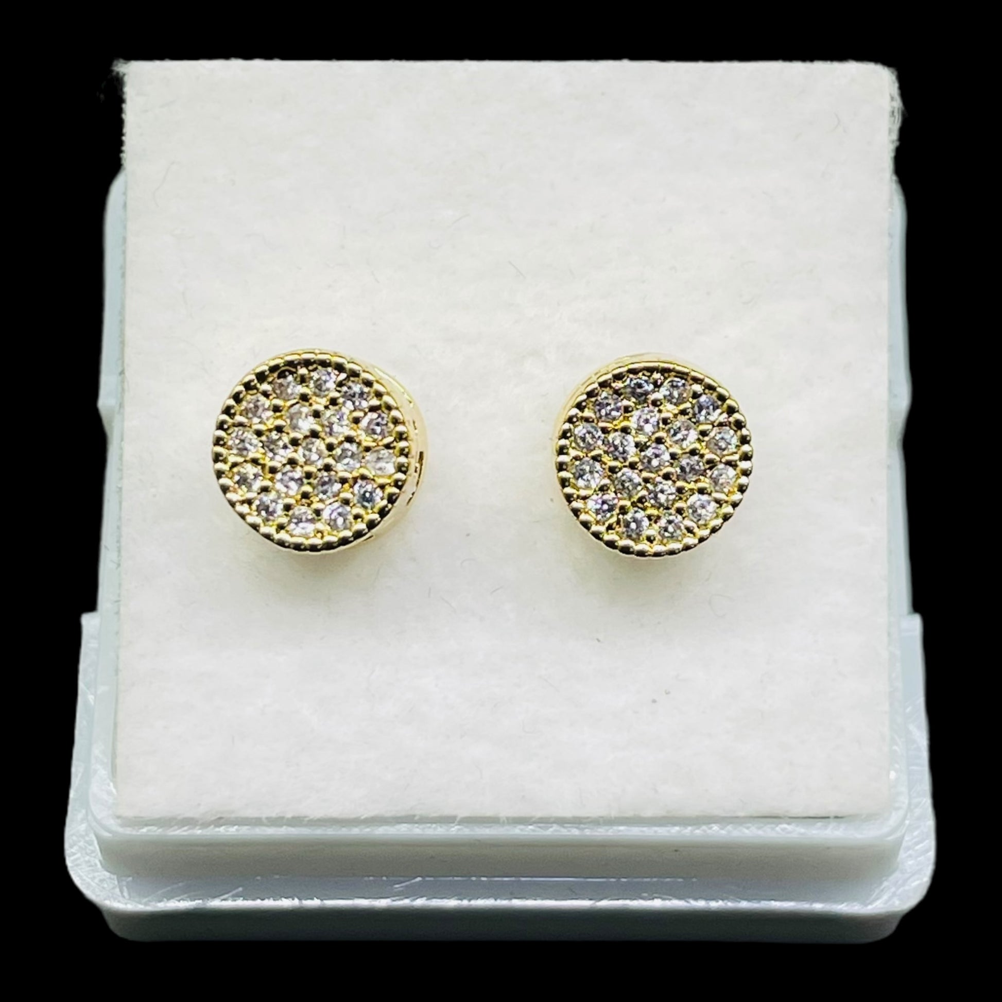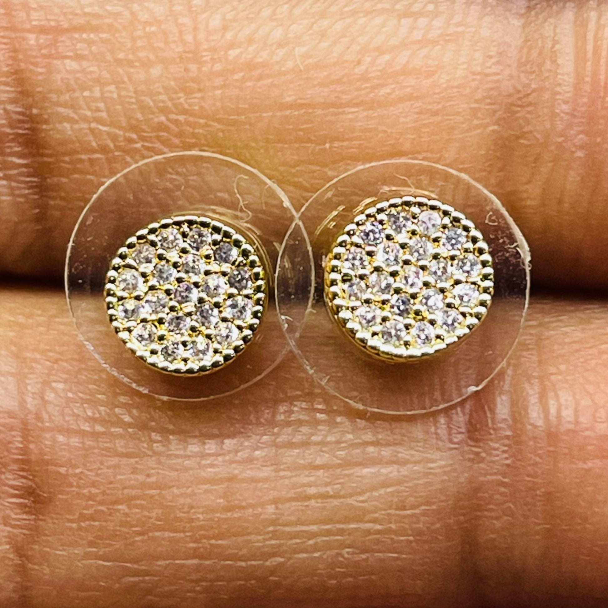Elevate your style with these Classic Gold Round Pave CZ Stud Earrings. Crafted with precision, each stud features a flawless circle encrusted with sparkling cubic zirconia stones, set in a rich gold-tone finish. These earrings offer a perfect blend of elegance and simplicity—ideal for both everyday wear and special occasions. Design: Timeless round shape with pave CZ setting Material: Gold-tone alloy with premium cubic zirconia Finish: High-polish gold for a luxurious look Size: Medium-sized studs, perfect for versatile styling Closure: Secure push-back for all-day comfort Great for: Formal outfits, office looks, or gifting